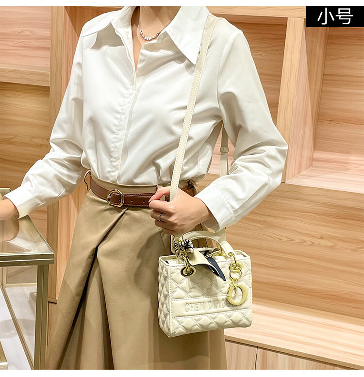 纪诗哲(GIEVSZHE)轻奢包包女包单肩包女士斜挎包七夕情人节送女友老婆妈妈节日礼物 米白配棕 精美礼盒