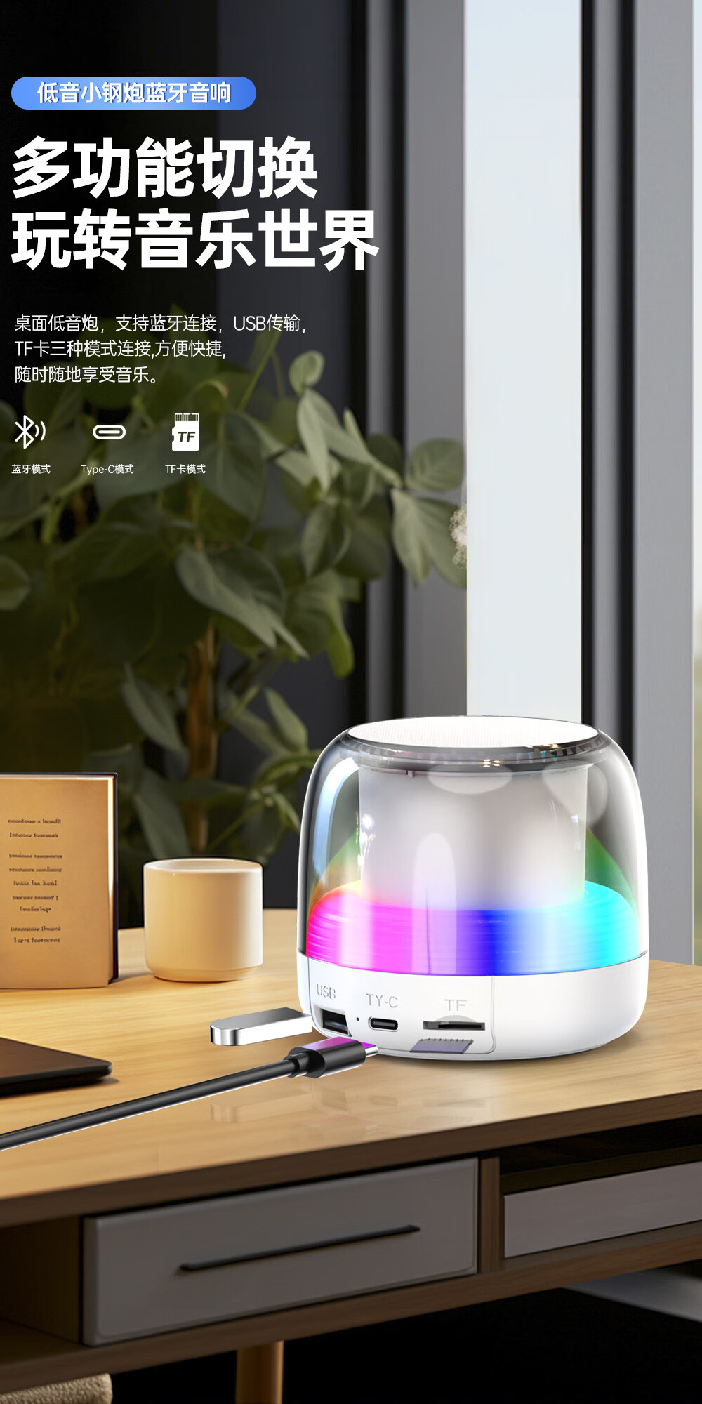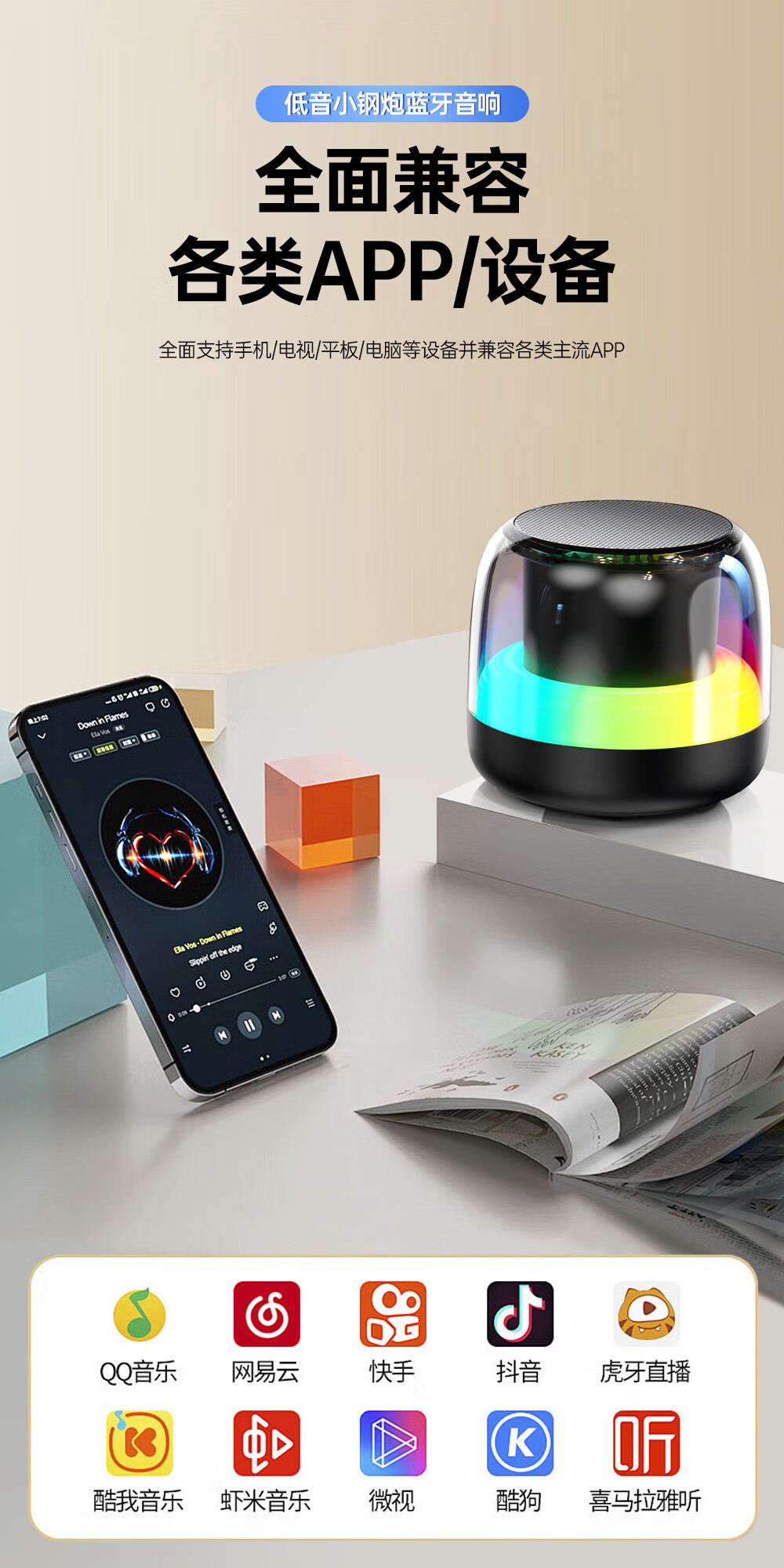 BOXLAMP蓝牙音箱智能投影表情灯便携式充电环绕HIFI音响大音量家用音乐节奏电脑竞房氛围投影灯 表情音箱标配+送【二次元A】