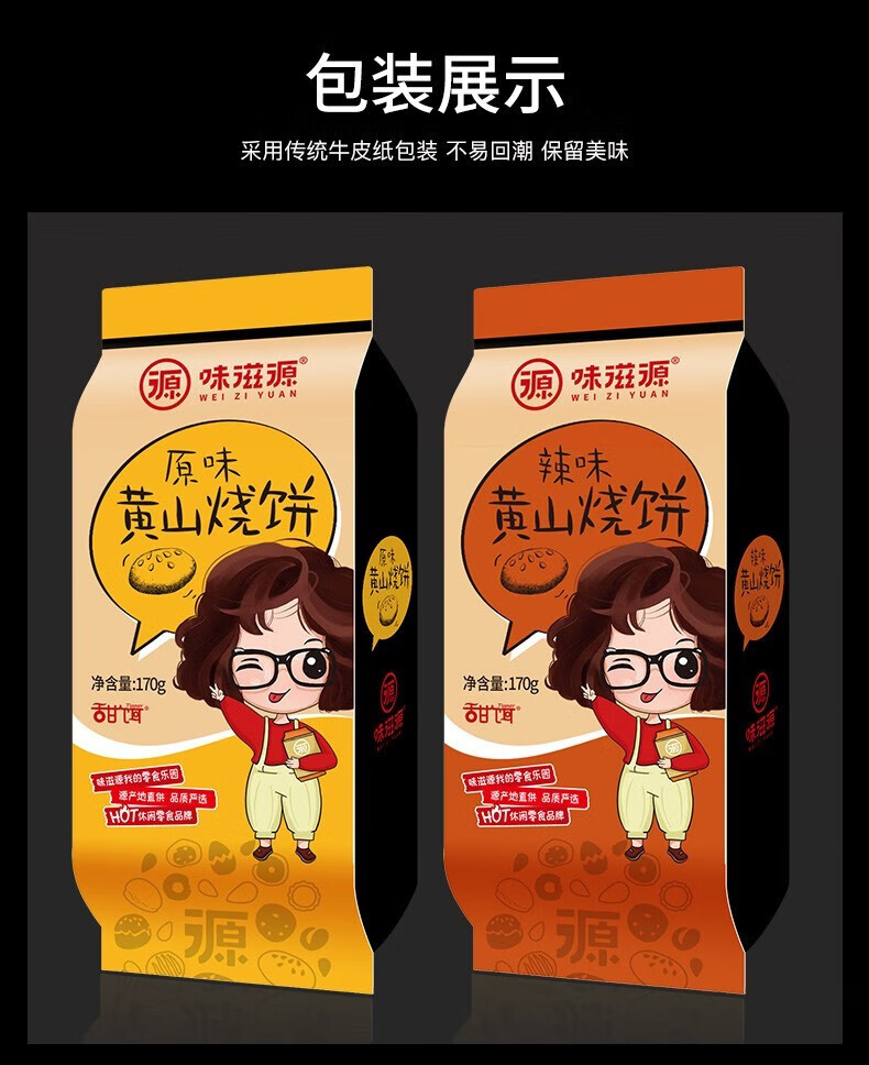 味滋源 黄山烧饼 安徽特产零食小吃正宗梅干菜扣肉早餐饼独立包装 原味170g/袋+香辣170g/袋 1件