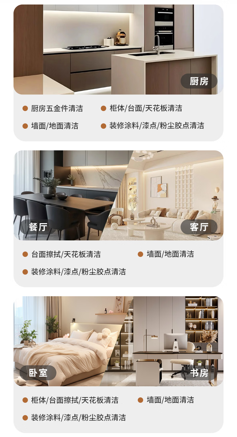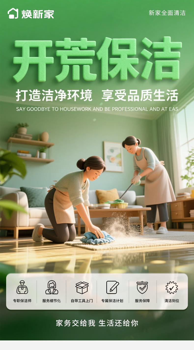 新房开荒 租房入住 办公开荒 全屋大扫除 退租保洁 开荒保洁上门服务 除胶除漆除尘 家政上门服务 精开荒建筑面积351-380㎡内包满意验收