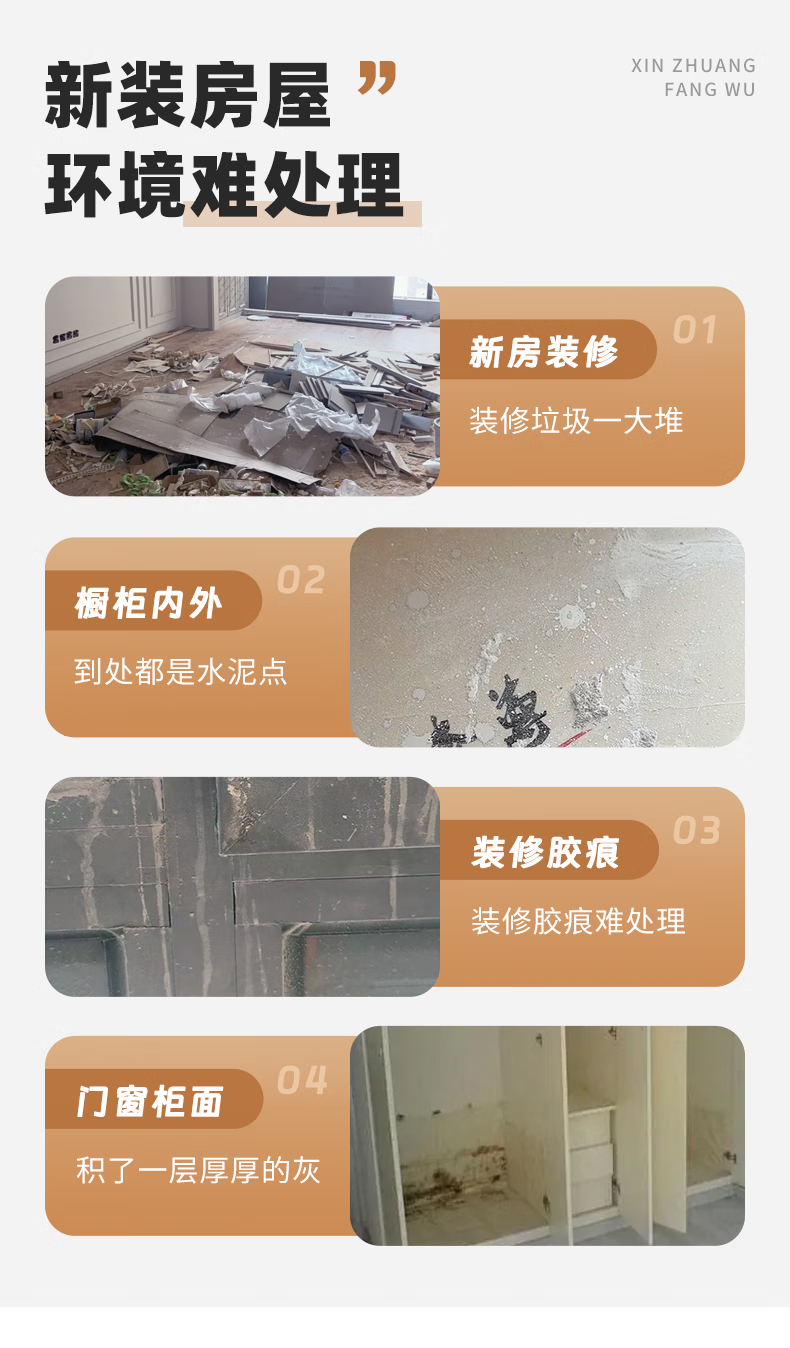 开荒保洁 精细开荒保洁 新房装修后保洁 办公室酒店 工程 大面积新房开荒保洁 新房旧房装修精细保洁 新房初开荒191-210平方(无定制柜)