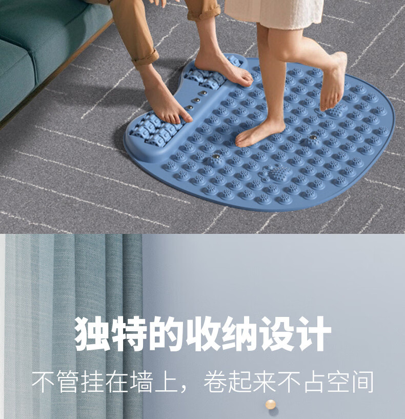 加厚指压板超慢跑足底按摩脚垫按摩脚踩通经络原地跑步 七代猫爪双用款【22个按摩滚轮-天空蓝】超大径65