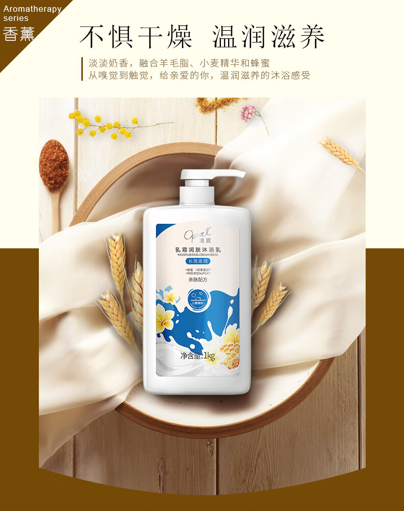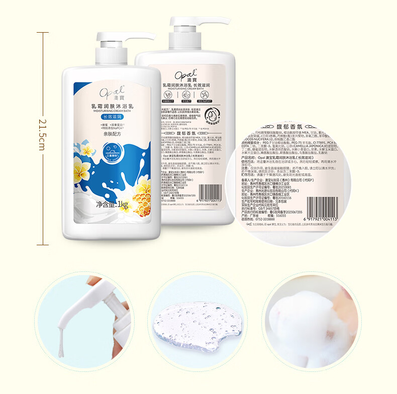 澳宝乳霜润肤沐浴露保湿补水嫩肤大容量男女家庭装沐浴液1kg*2 乳霜润肤沐浴露 1kg 2瓶