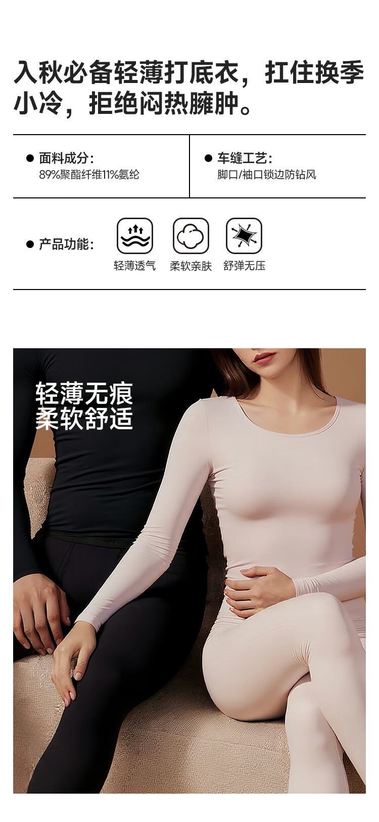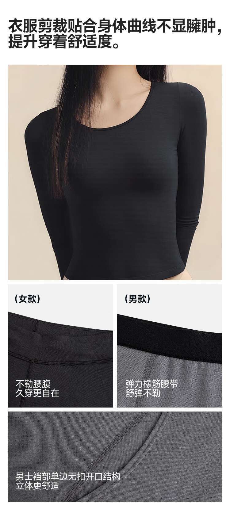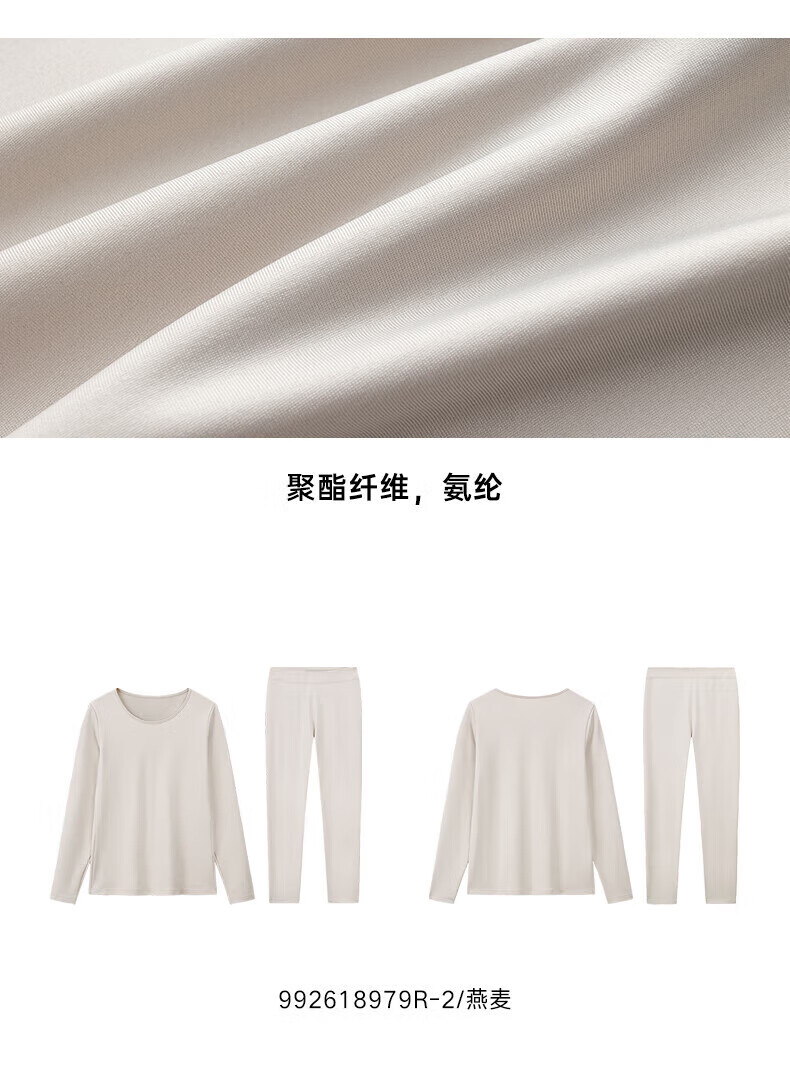 安踏(ANTA)暖芯系列磨毛保暖内衣套装炽热科技男女运动打底衣抗静电 【女款-加绒保暖】燕麦-2 S 男165/女160
