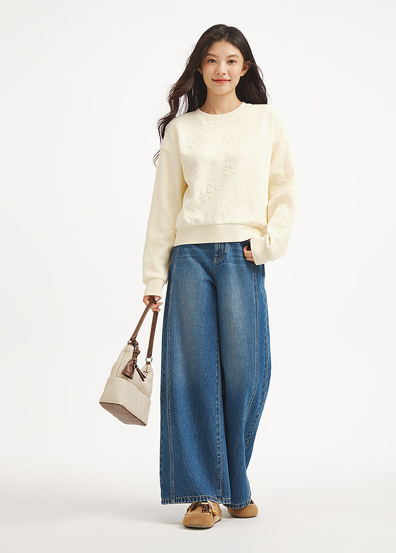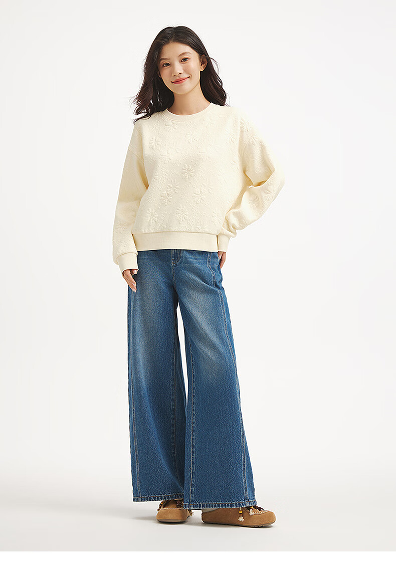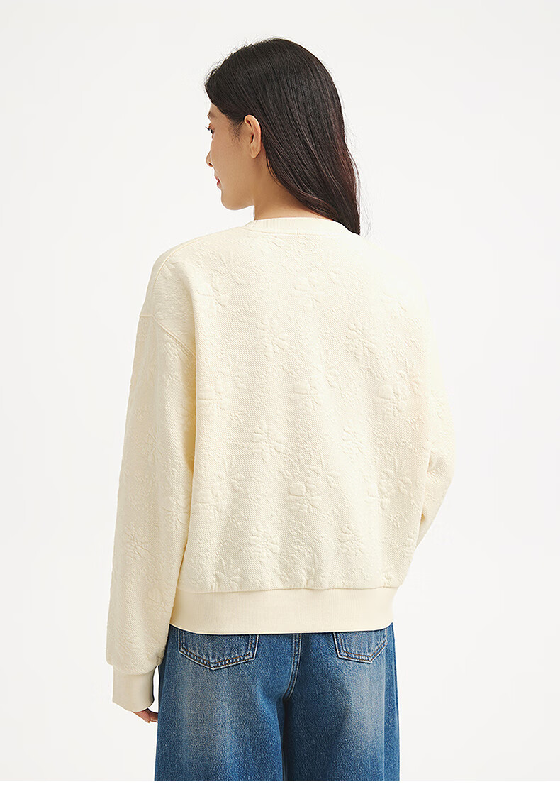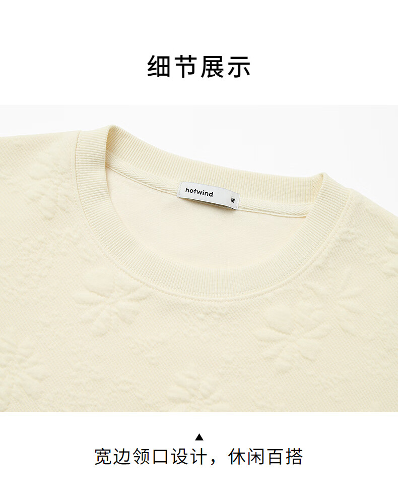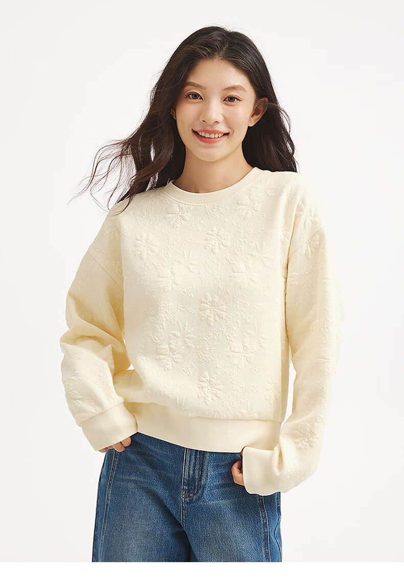 热风【商场同款】女士套头卫衣打底衫2025年秋新款肌理提花卫衣上衣 03米色 M
