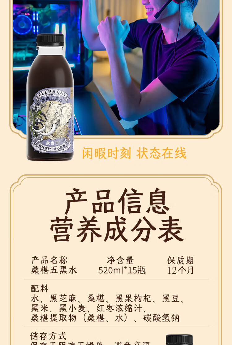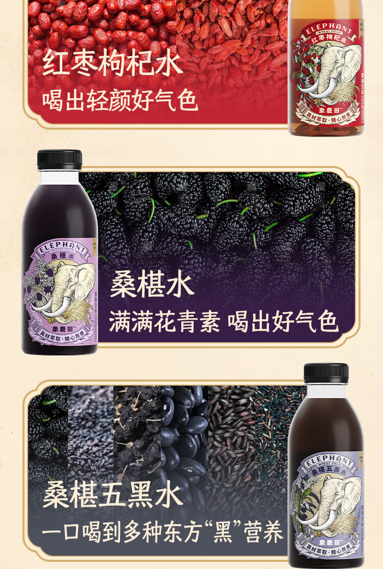 象麦田桑葚五黑水520ml*15瓶/整箱装植物茶饮料