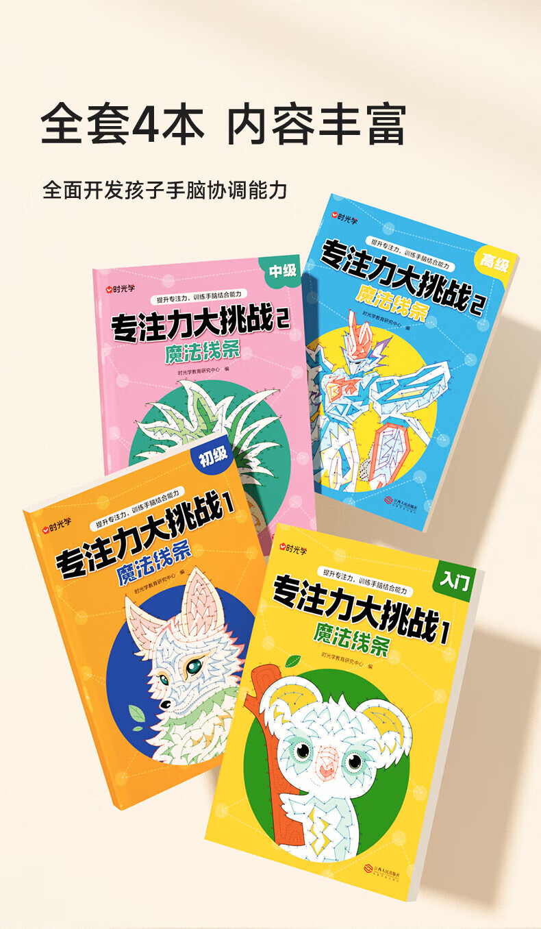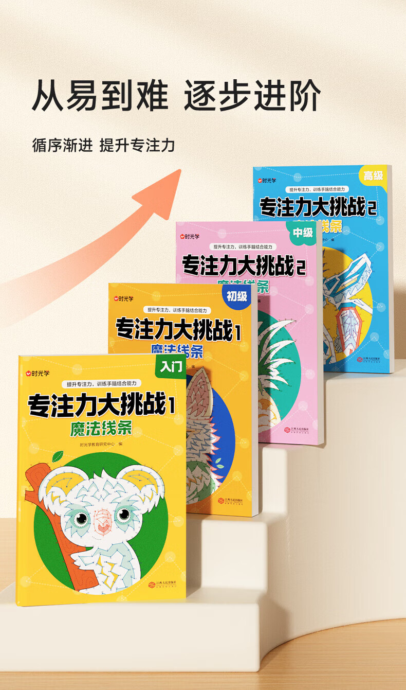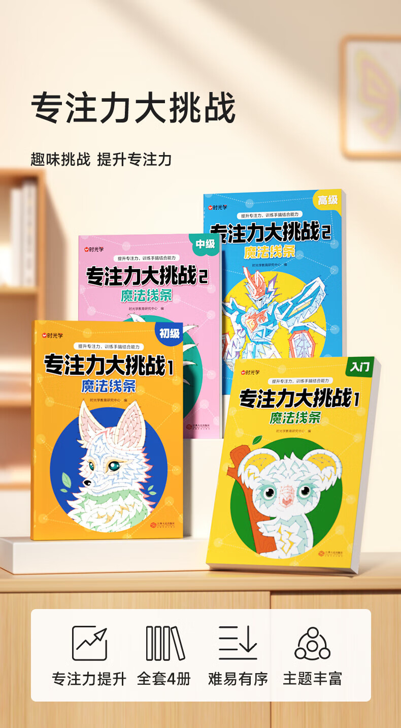 【时光学】专注力大挑战魔法线条训练手脑结合能力逐步进阶训练开发提升思维专注力书儿童迷宫魔线线条连线画本绘本绘画书 【2本入门+初级】专注力大挑战