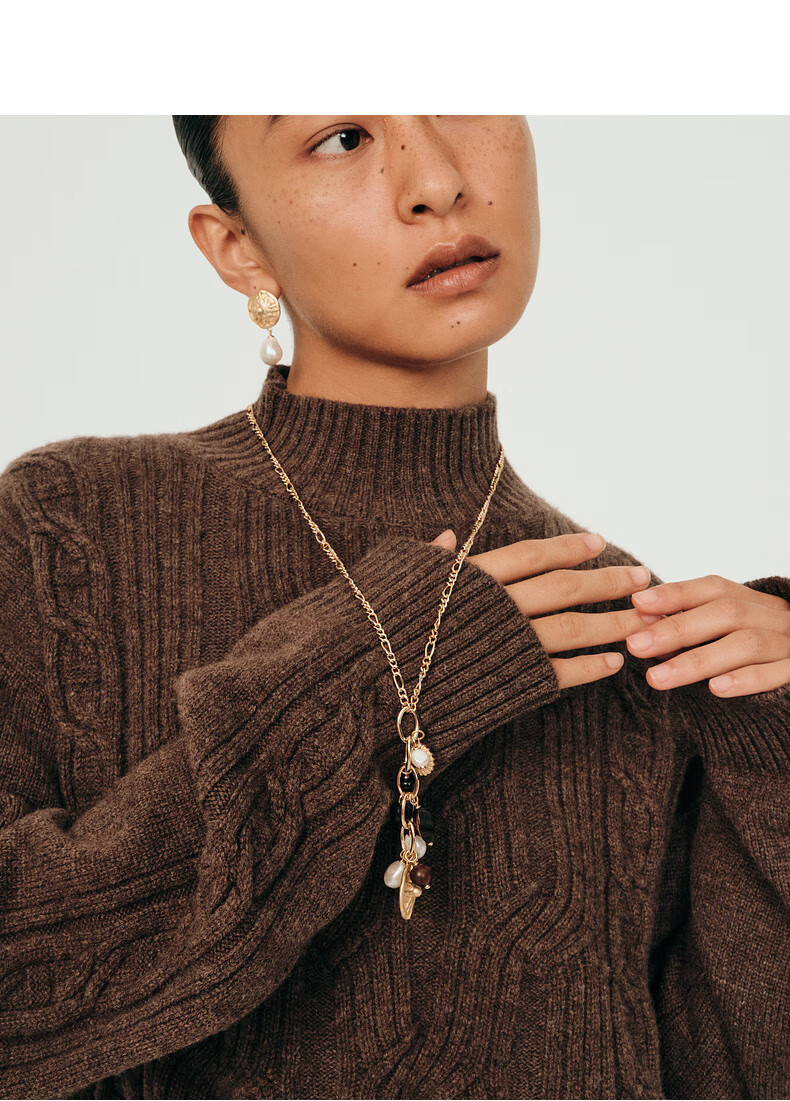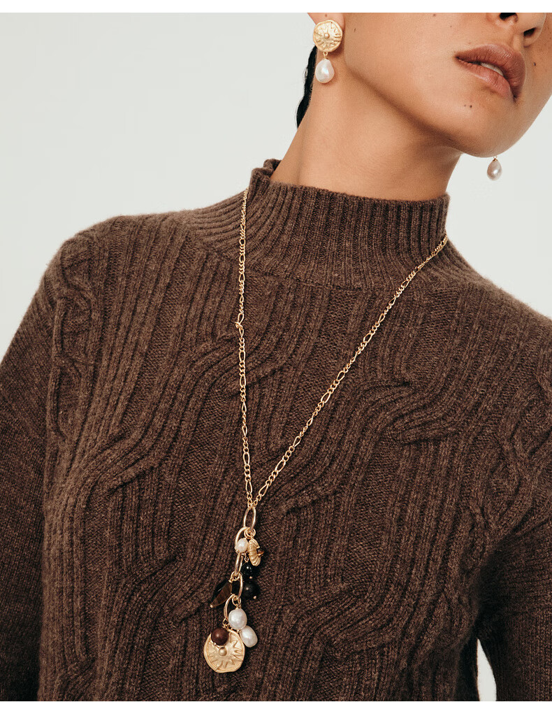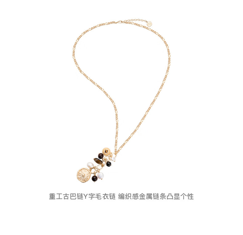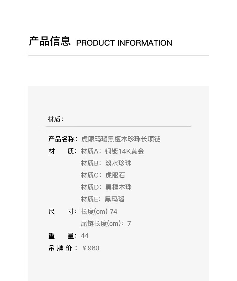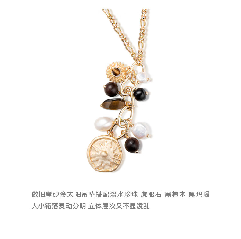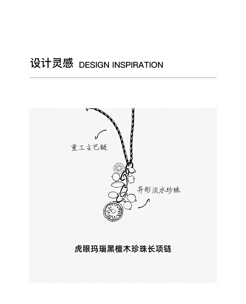 lost in echo徐若晗同款2025早秋新款异域玛瑙黑檀木珍珠长项链毛衣链 虎眼石 74cm