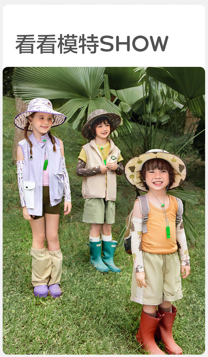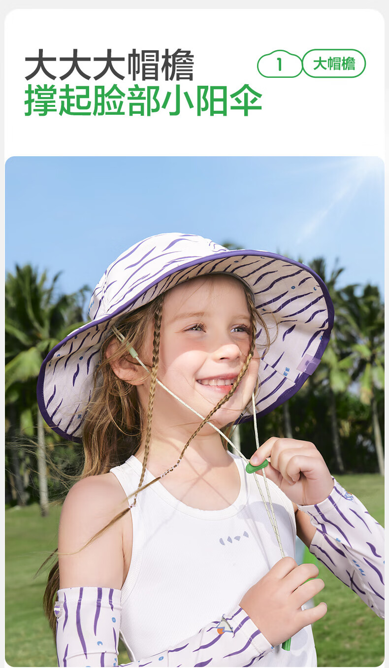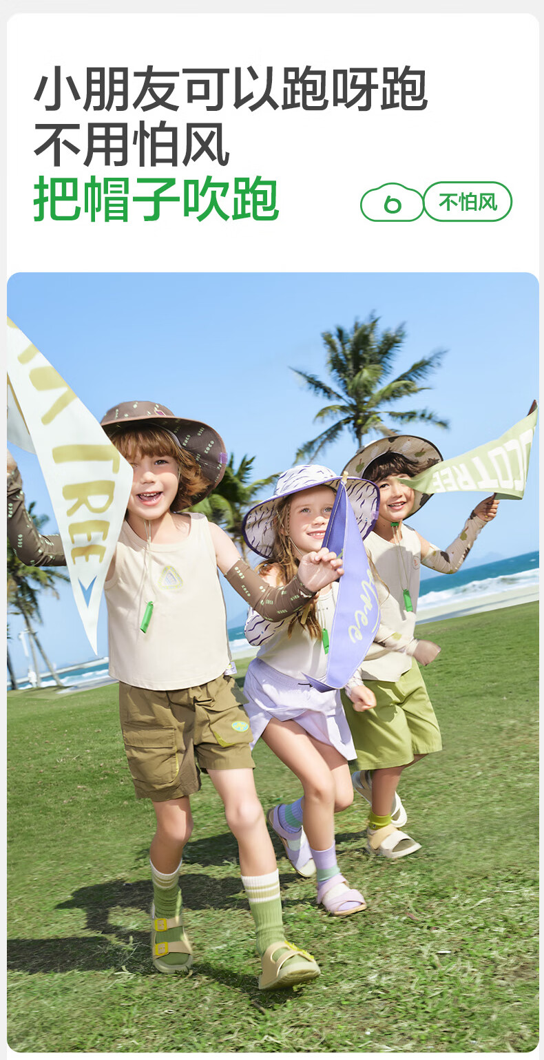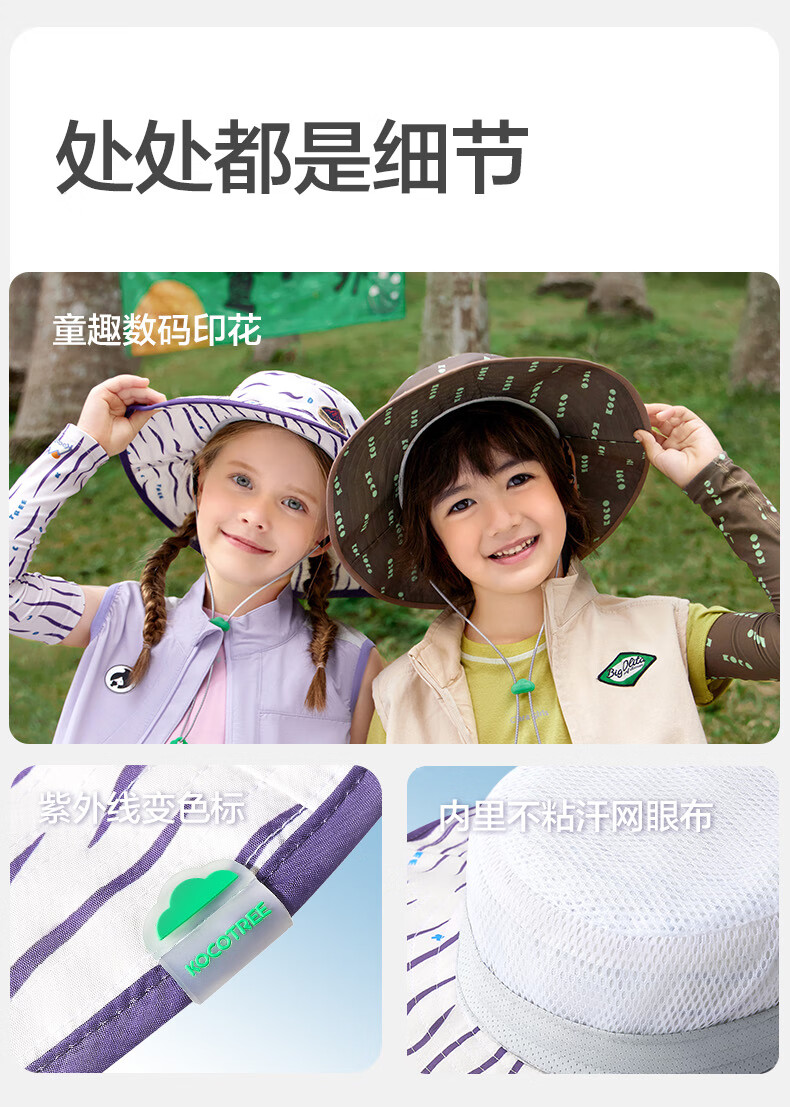 Kocotreekk树儿童防晒帽遮阳防紫外线男女童大帽檐夏季渔夫帽 霜林黄 L