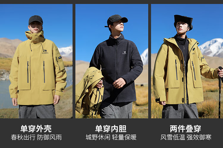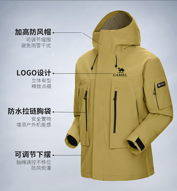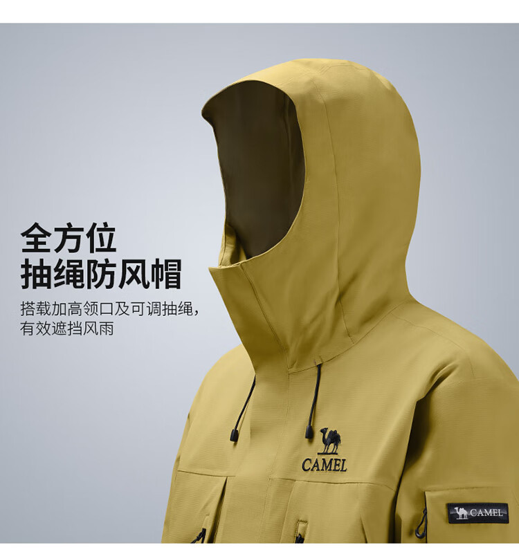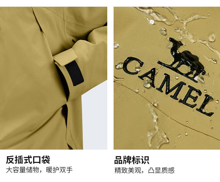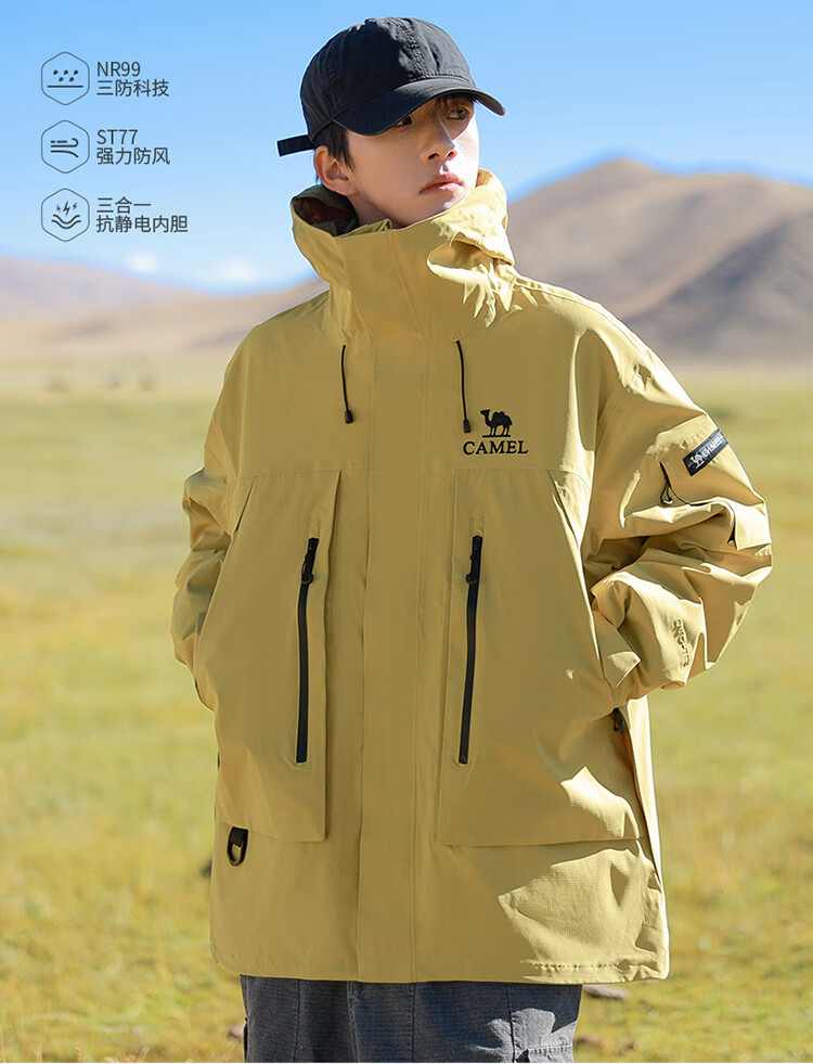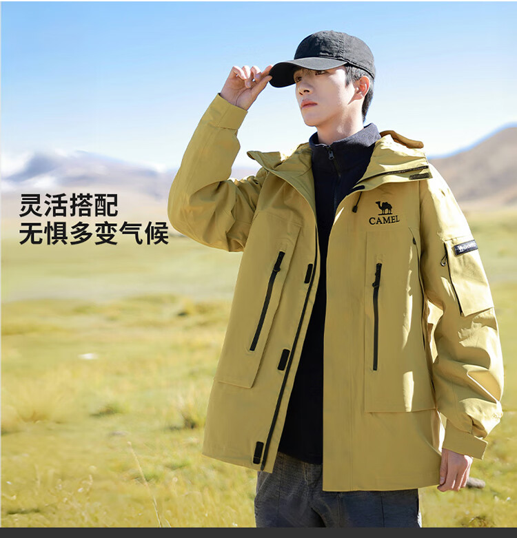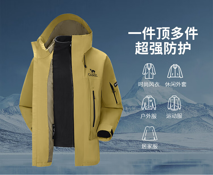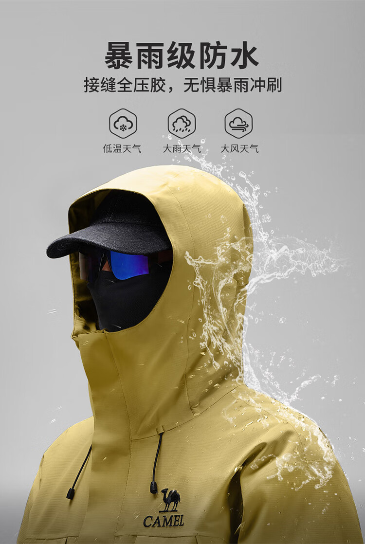 骆驼女装冲锋衣三合一男女新款黄色外套暴雨级防风防水登山服