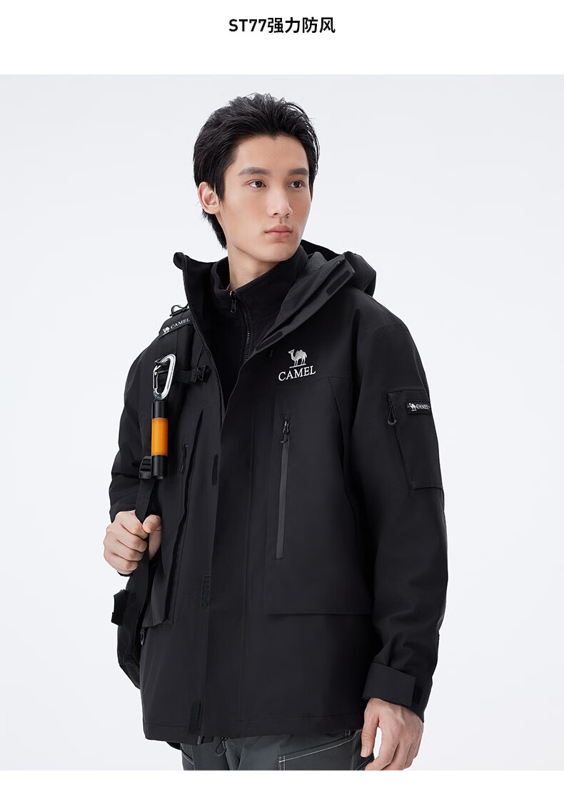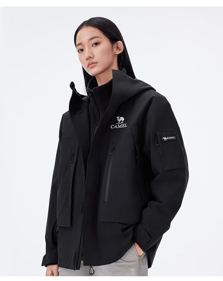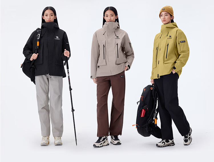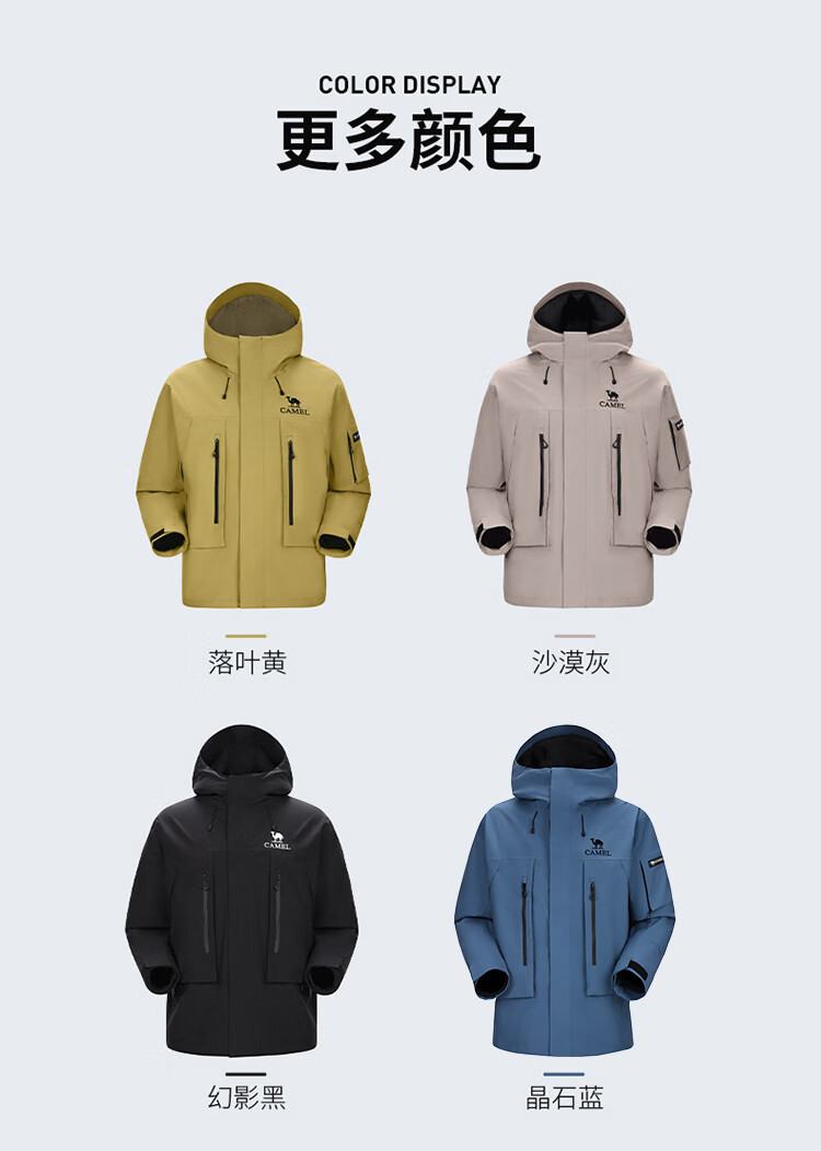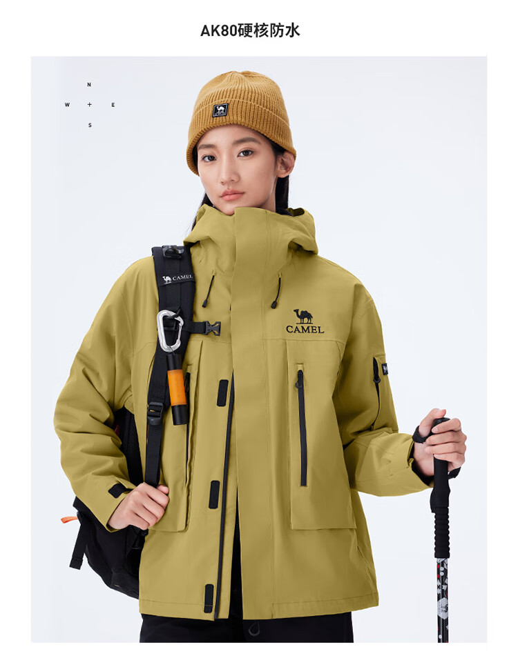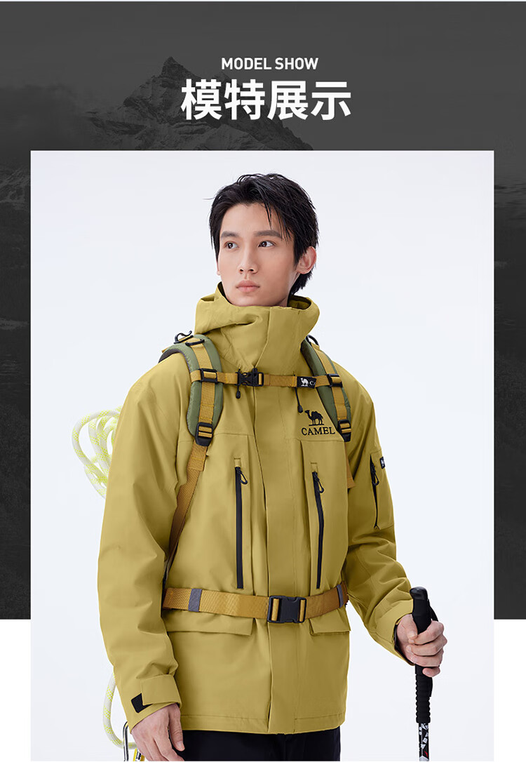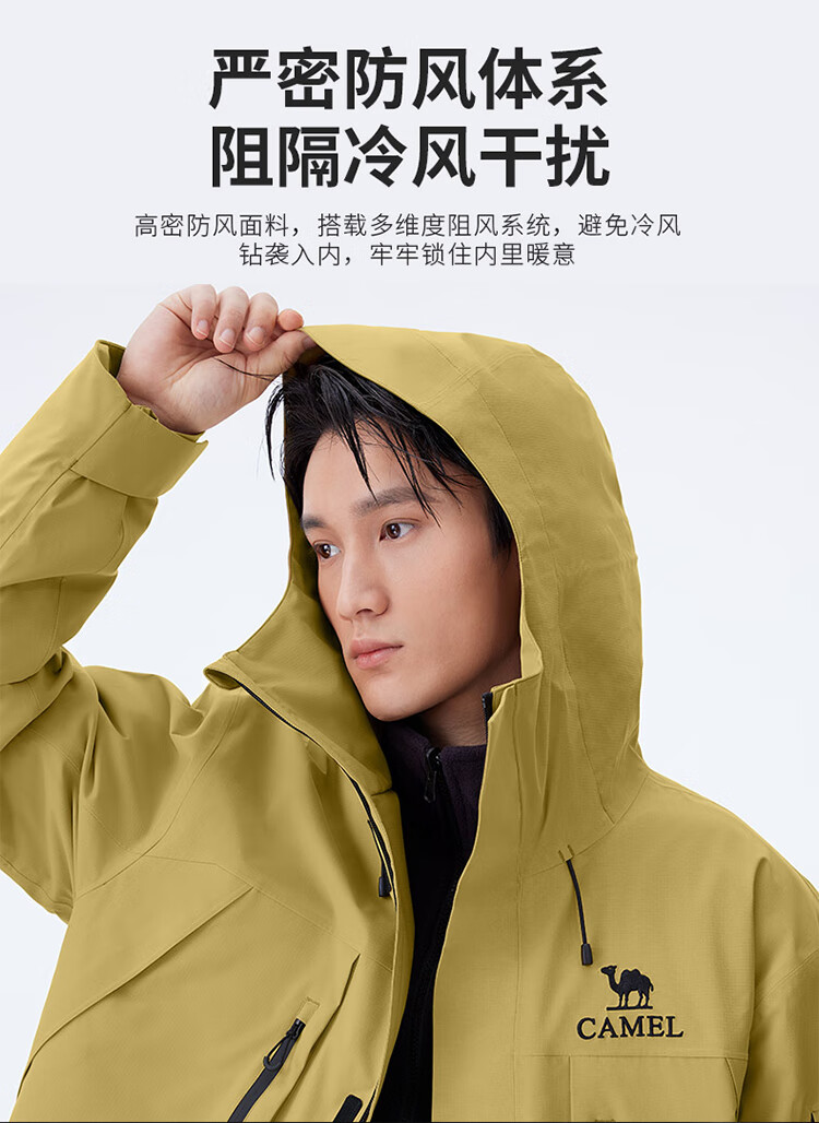 骆驼女装冲锋衣三合一男女新款黄色外套暴雨级防风防水登山服