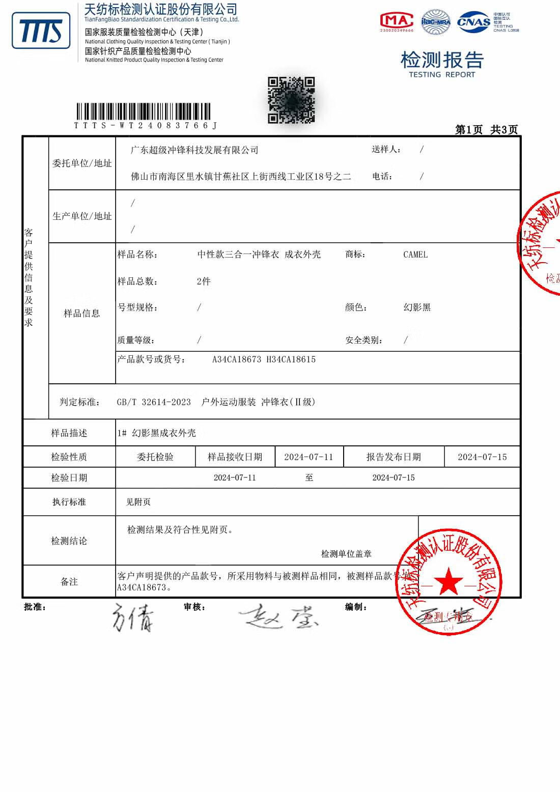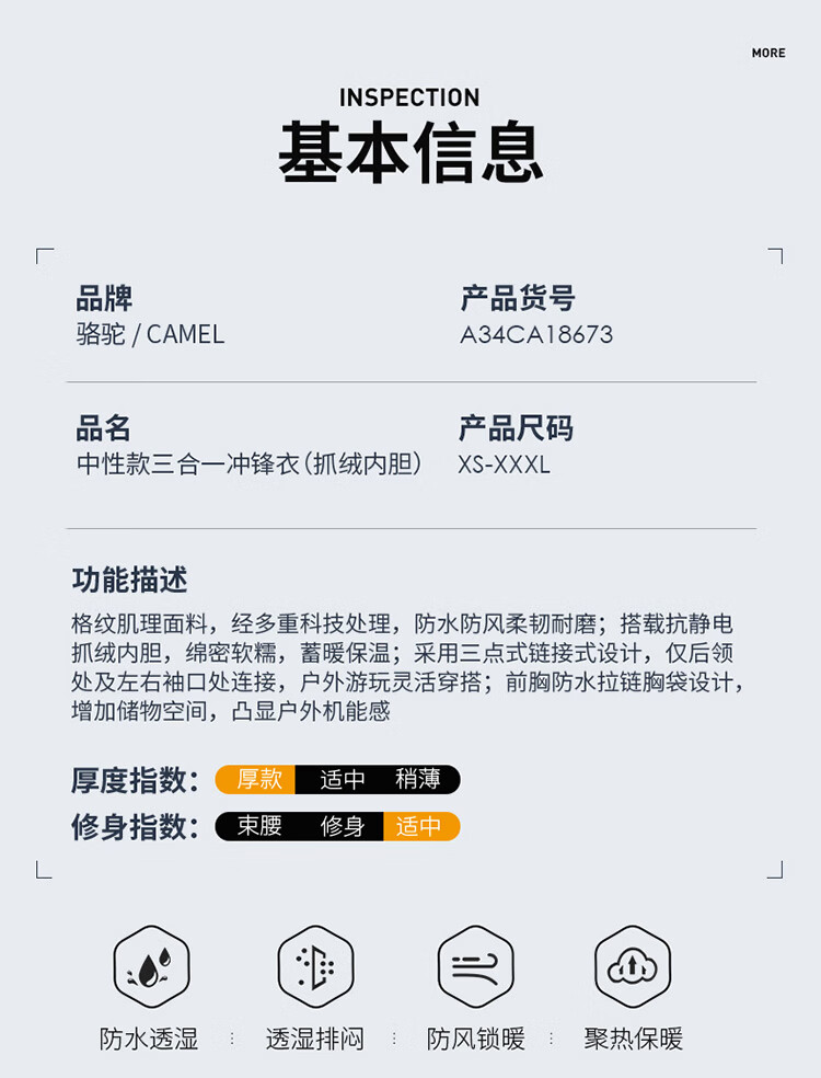 骆驼(CAMEL)【baby同款】熊猫单层中性冲锋衣男女春新防水硬壳拼色外套