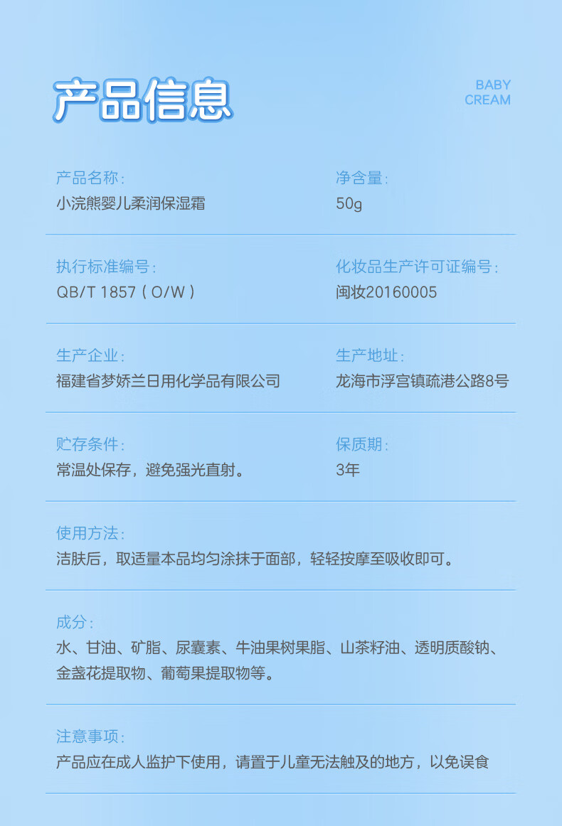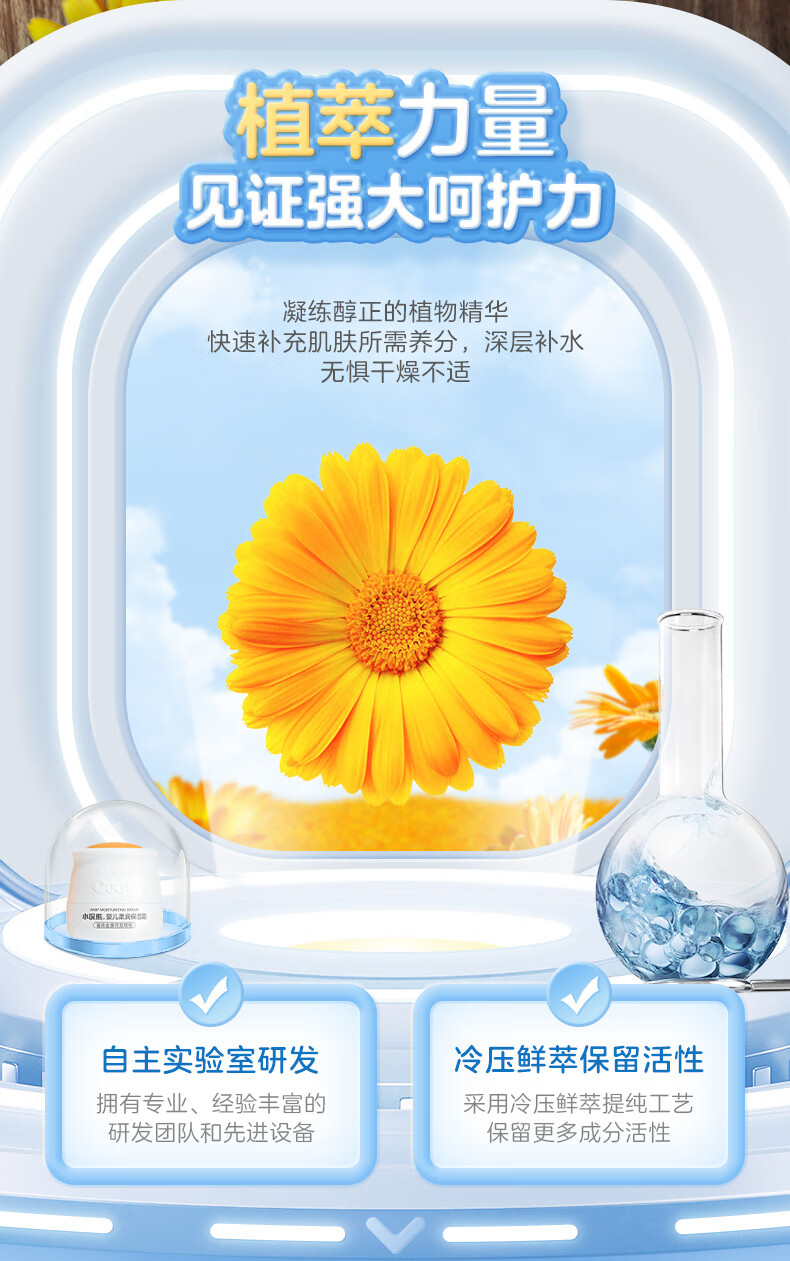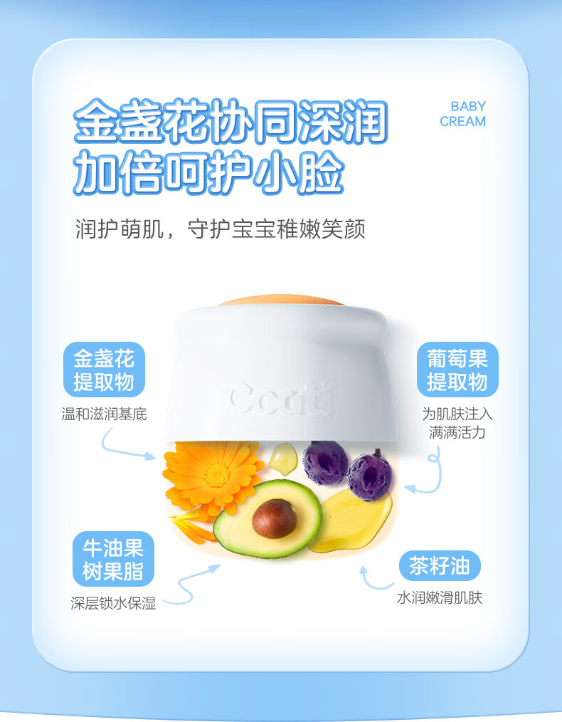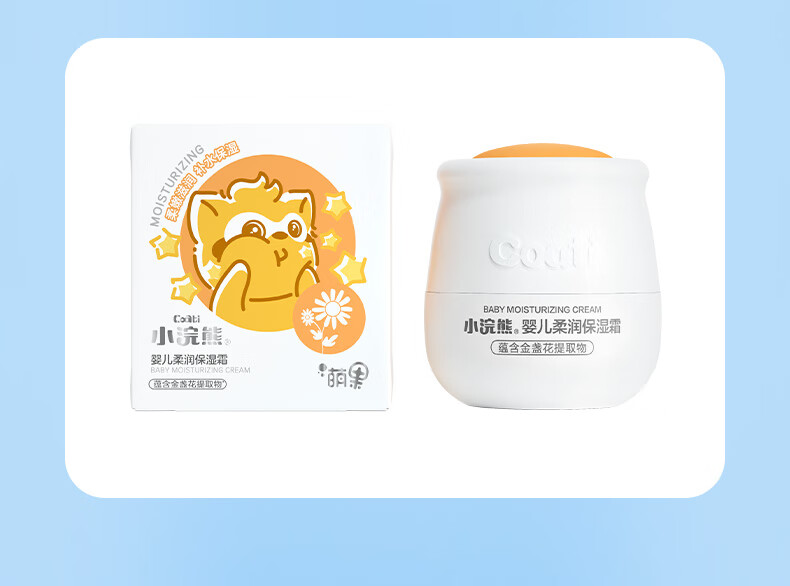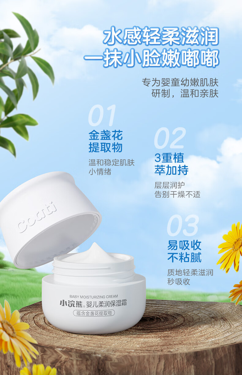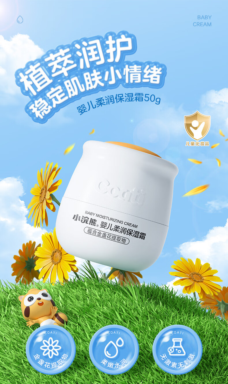 小浣熊婴儿面霜 儿童面霜 婴幼儿润肤乳 婴儿保湿霜 宝宝金盏花保湿霜 婴儿柔润保湿霜50g*2瓶