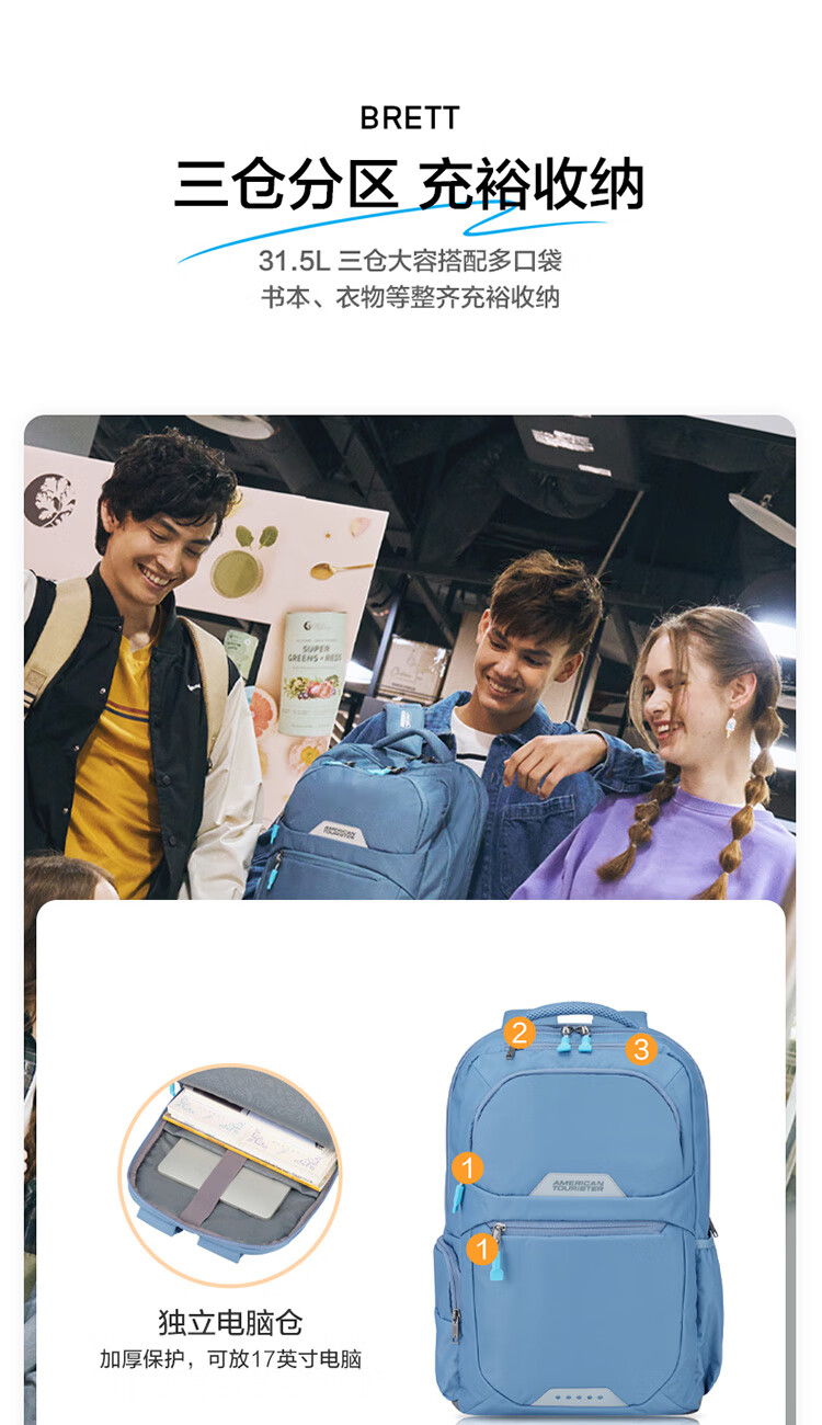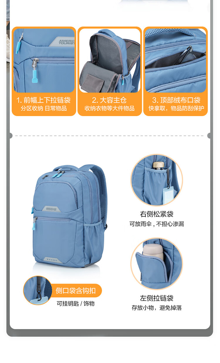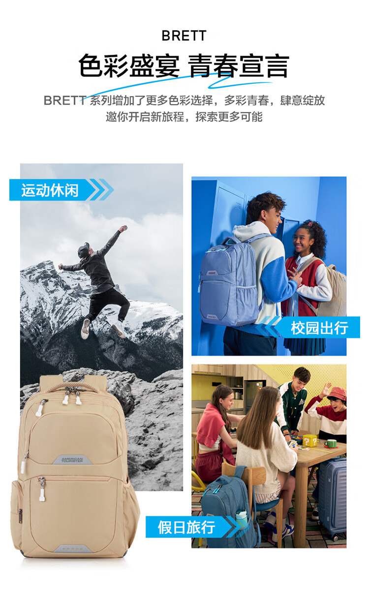 美旅箱包胡先煦同款升级双肩包时尚休闲运动收纳书包大容量背包QI5墨蓝色