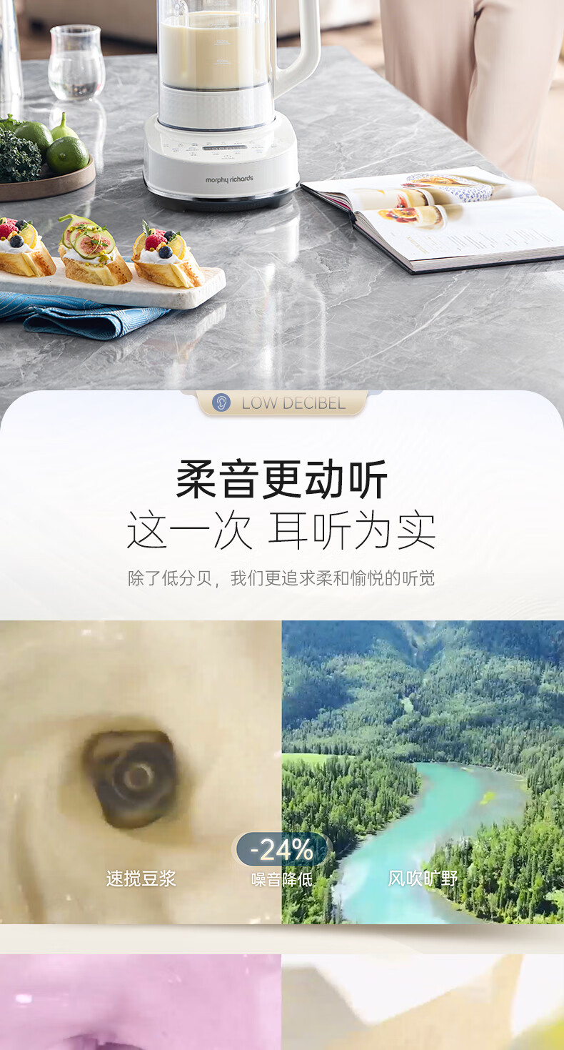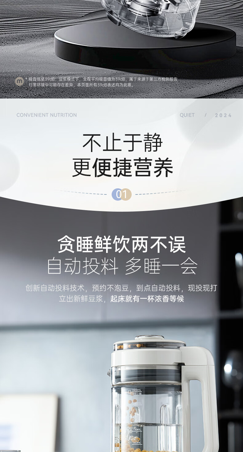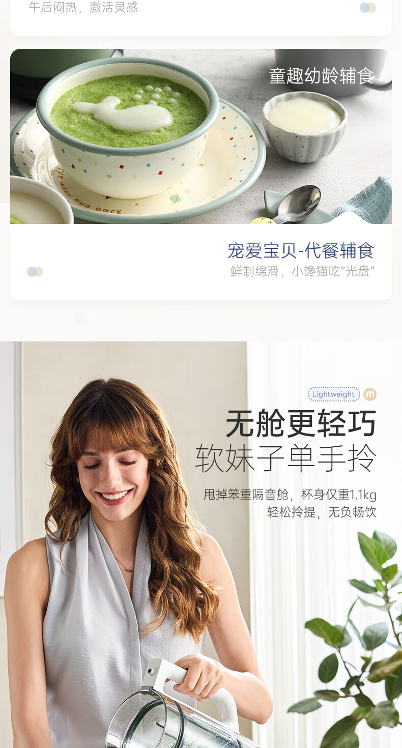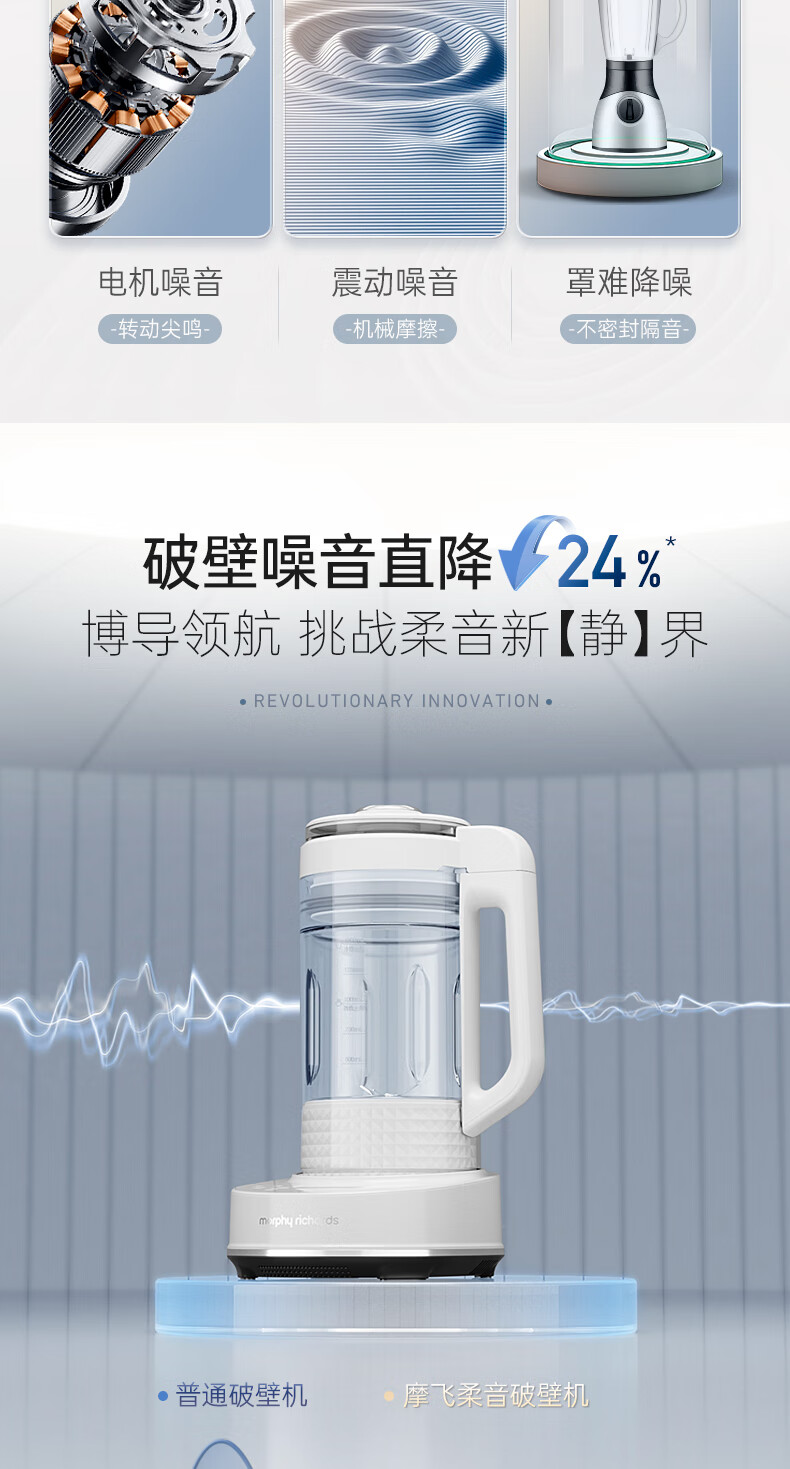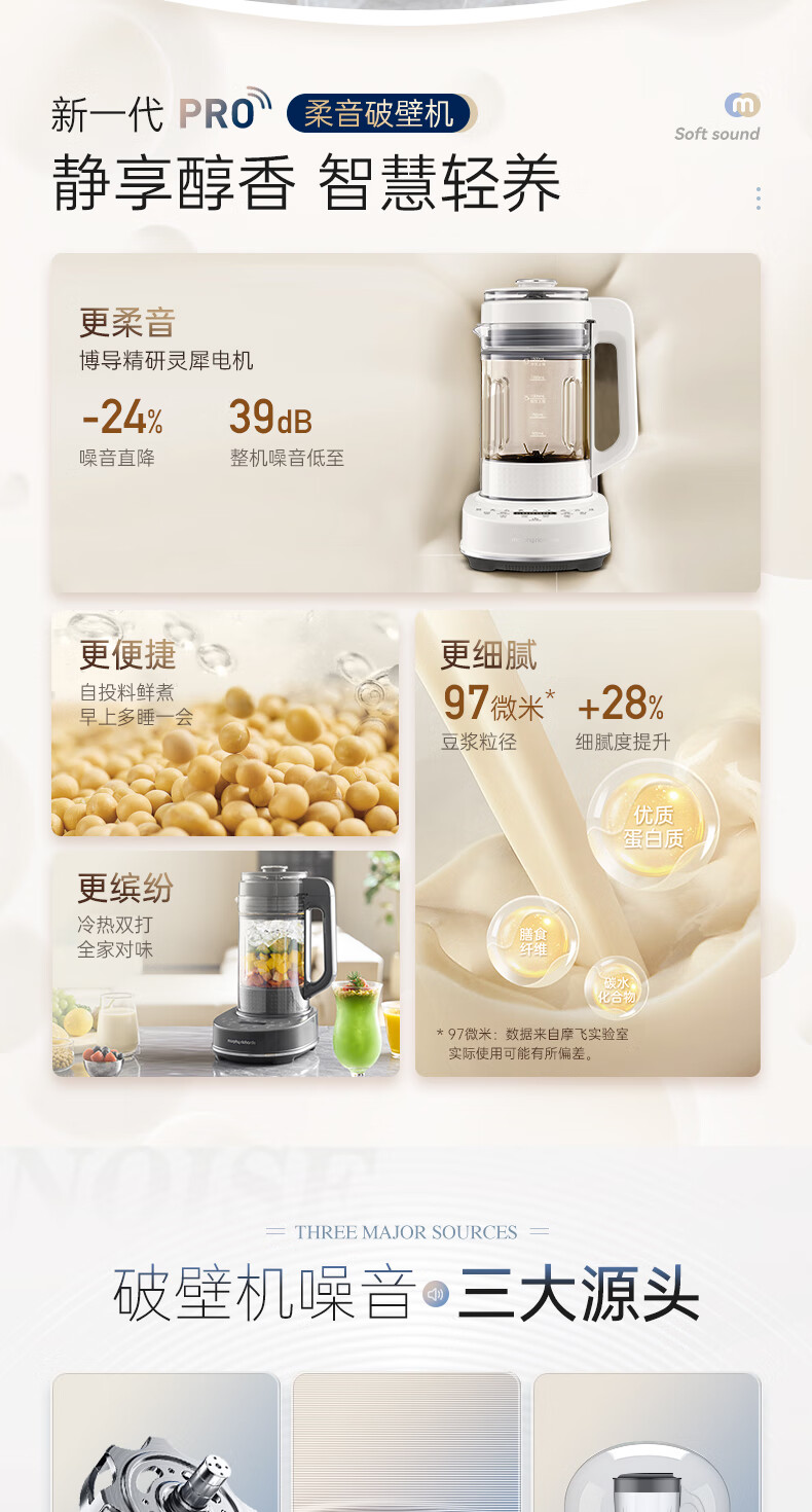 摩飞电器(Morphyrichards)低音破壁机家用全自动豆浆机水豆分离免煮免泡料理机变频降噪预约保温大容量榨汁机MR8202 MR8202A椰奶白【不锈钢内盖】