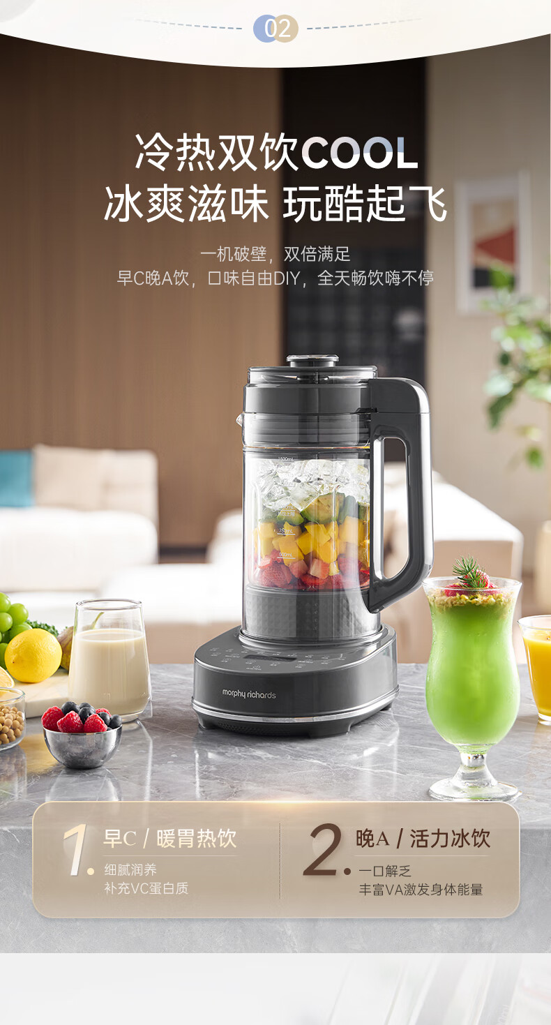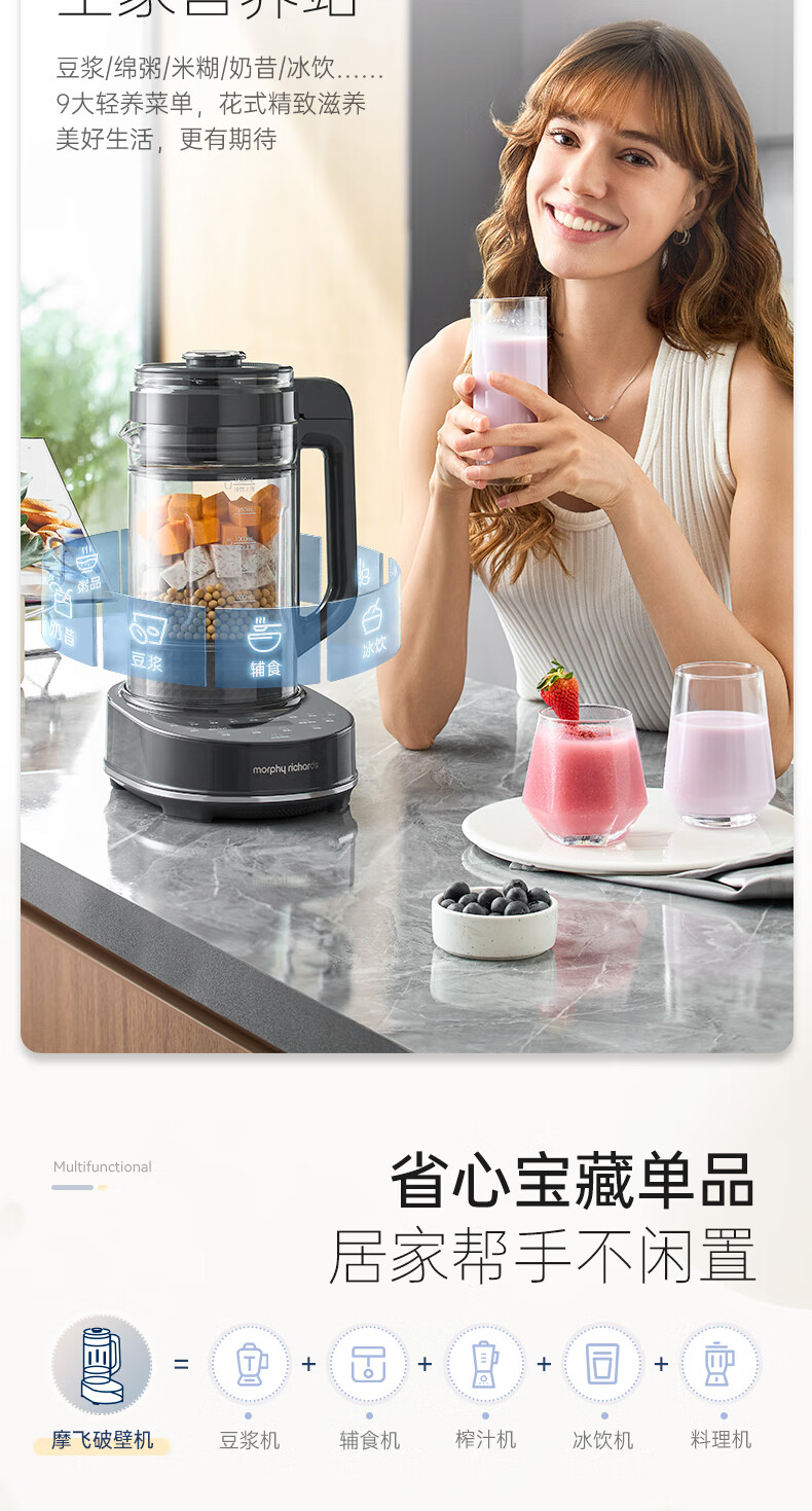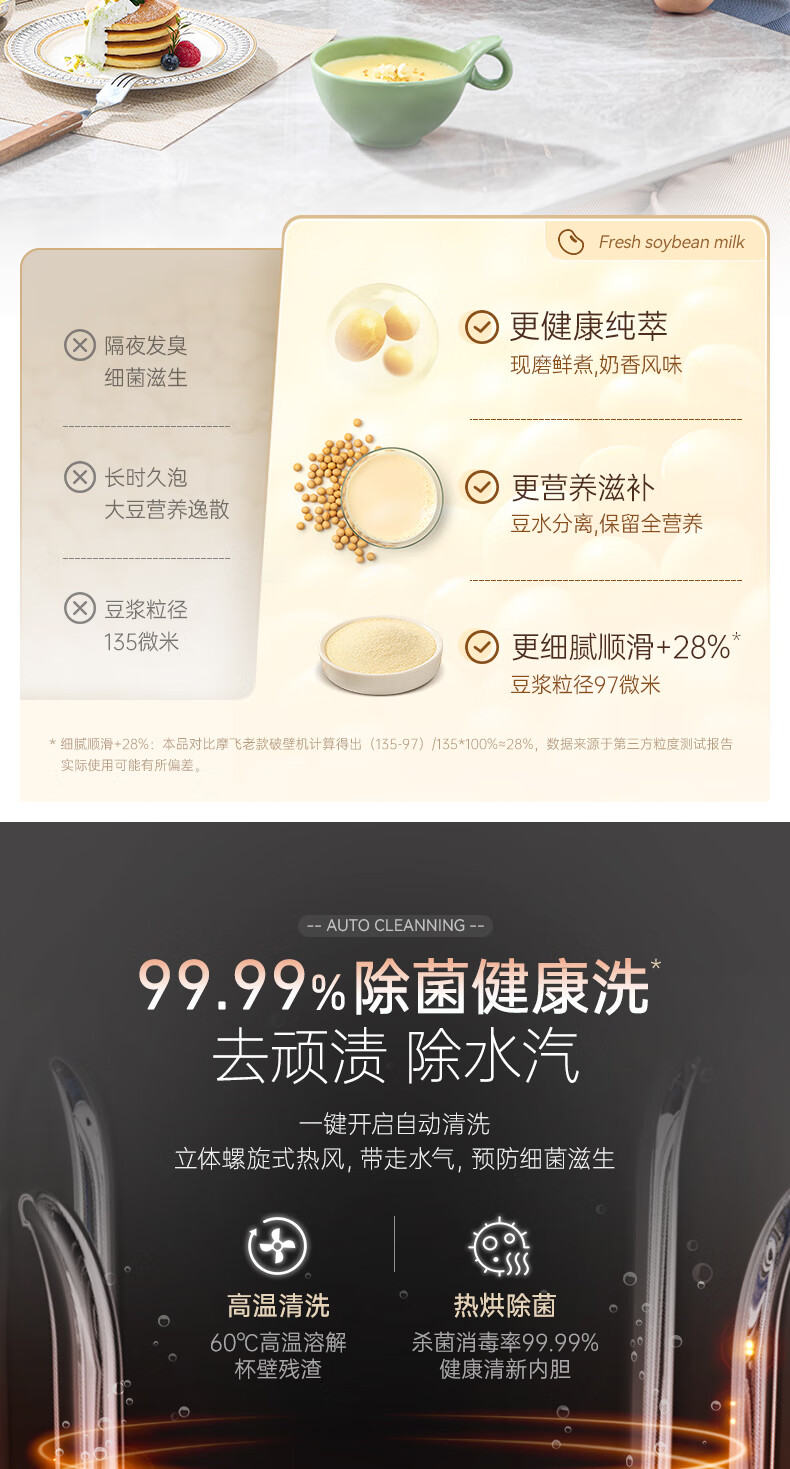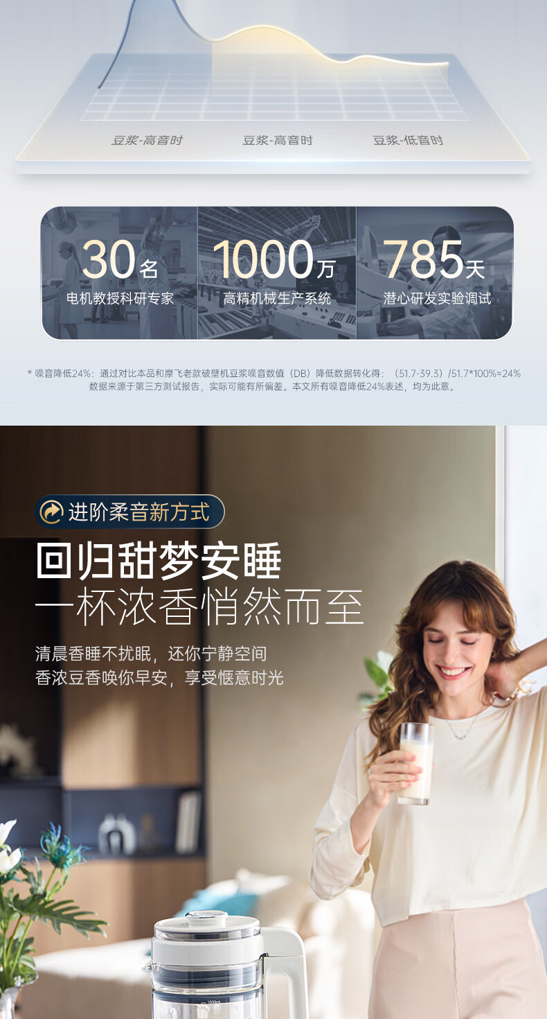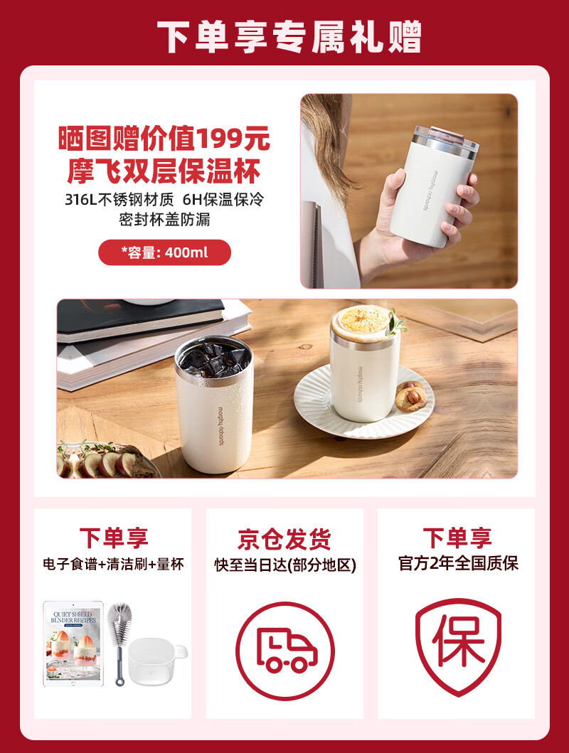 摩飞电器(Morphyrichards)低音破壁机家用全自动豆浆机水豆分离免煮免泡料理机变频降噪预约保温大容量榨汁机MR8202 MR8202A椰奶白【不锈钢内盖】