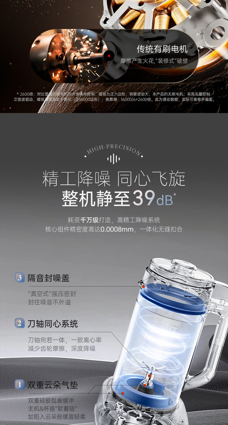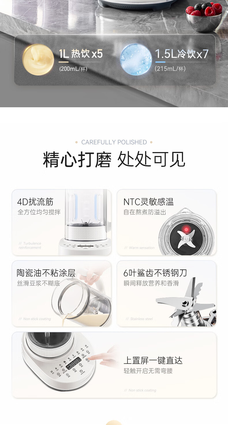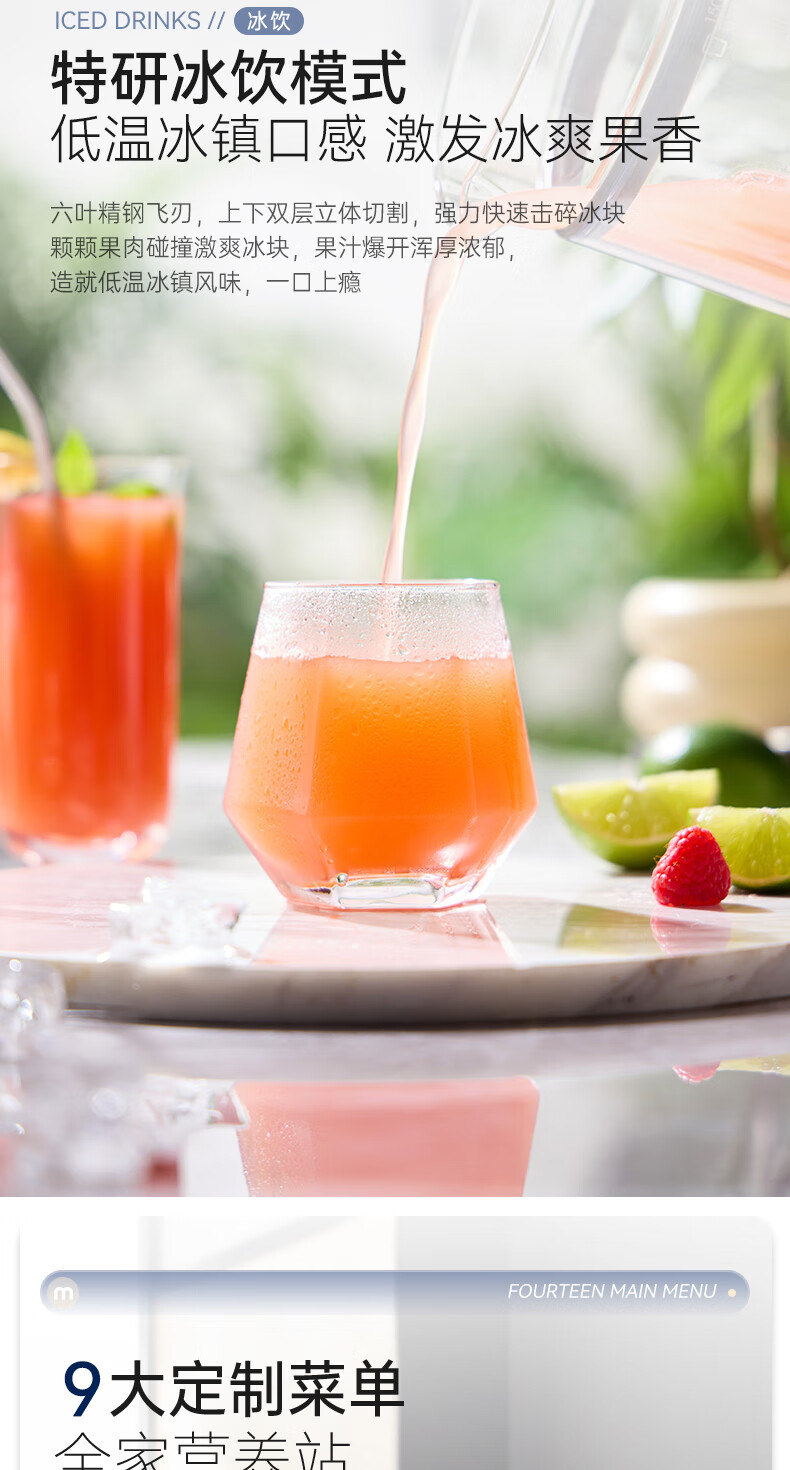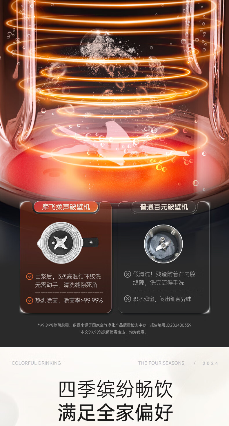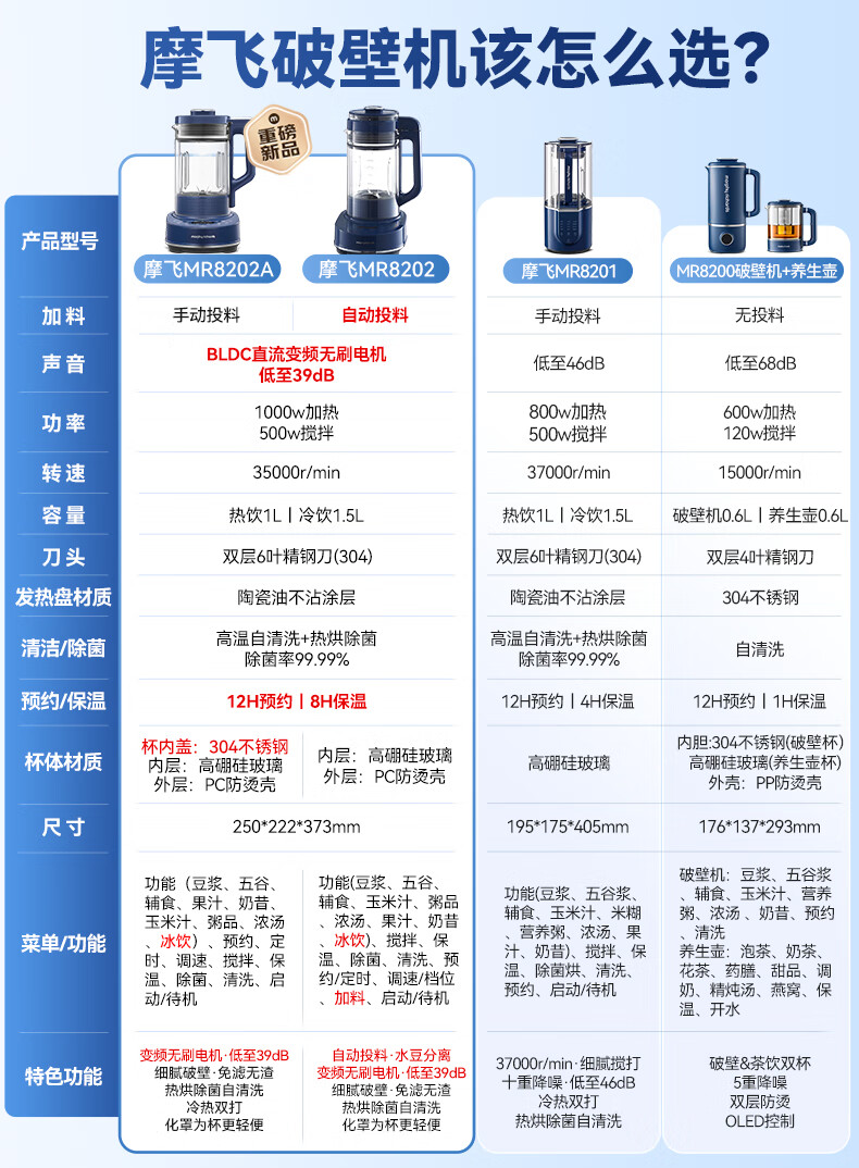 摩飞电器(Morphyrichards)低音破壁机家用全自动豆浆机水豆分离免煮免泡料理机变频降噪预约保温大容量榨汁机MR8202 MR8202A椰奶白【不锈钢内盖】