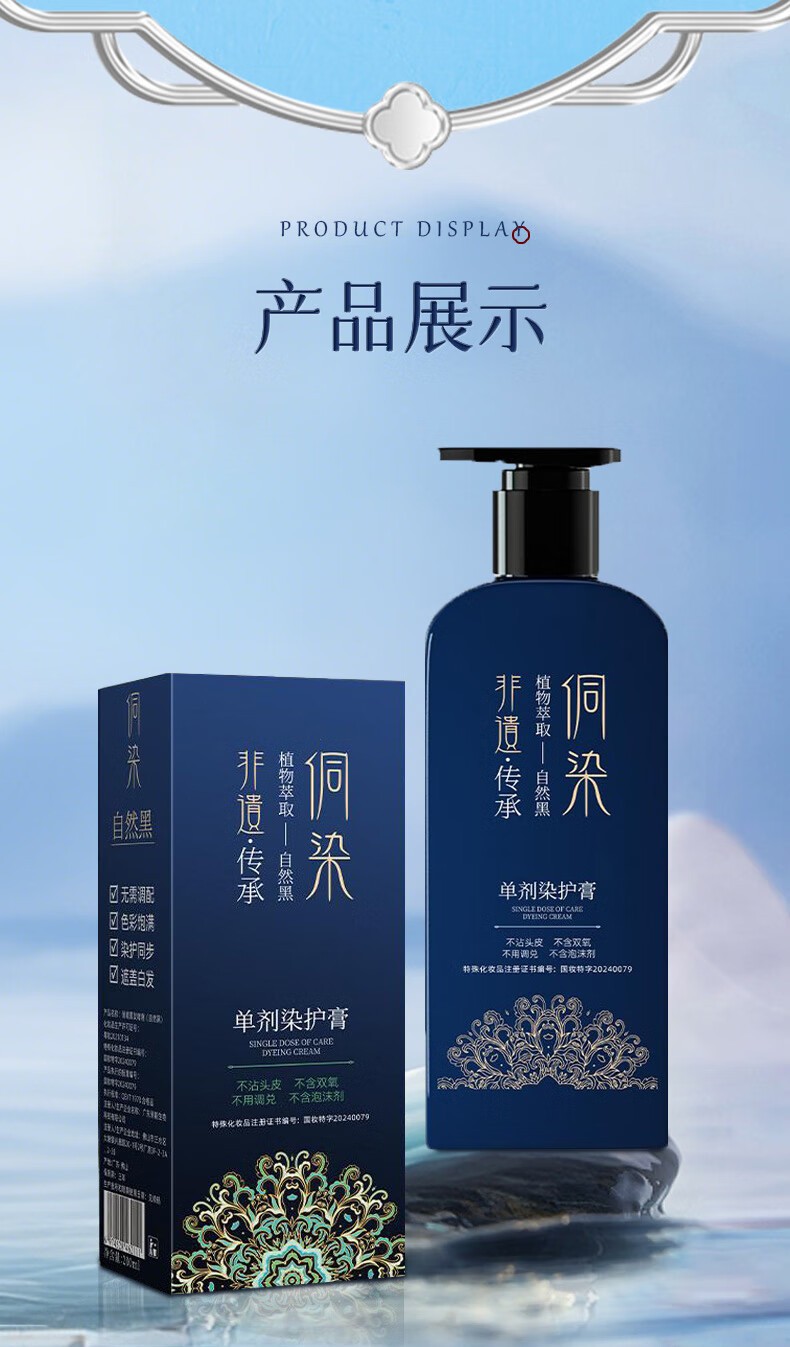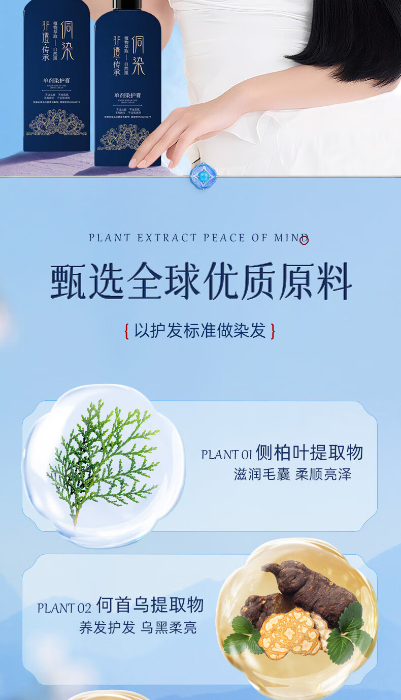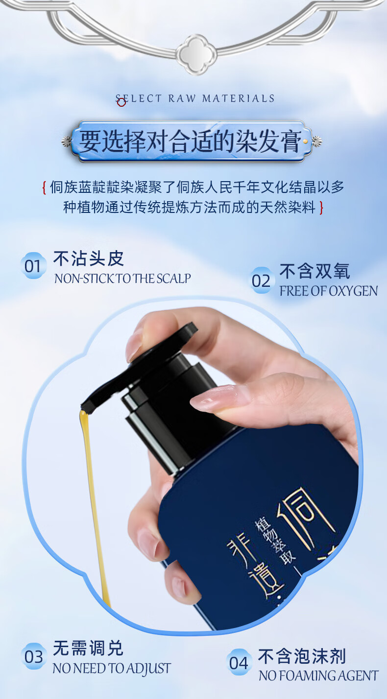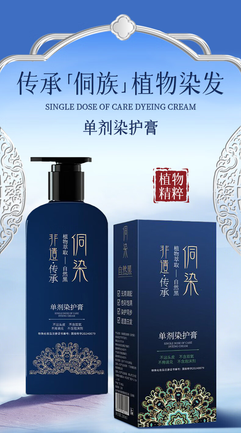 侗染染发膏 单剂一按染 自然黑盖白染发剂 植物染发居家轻松染发