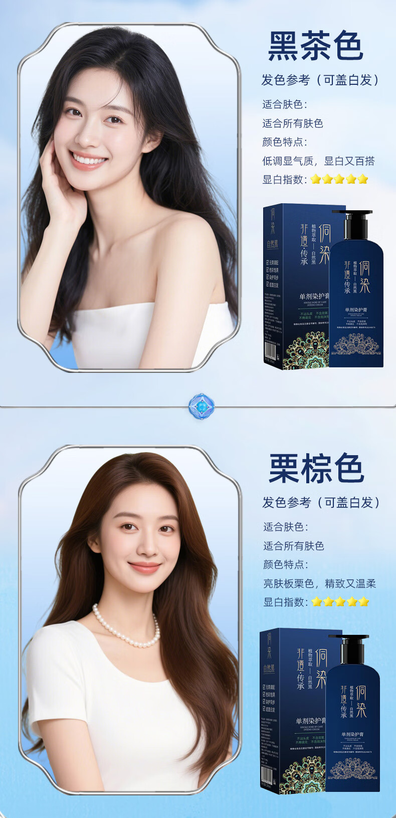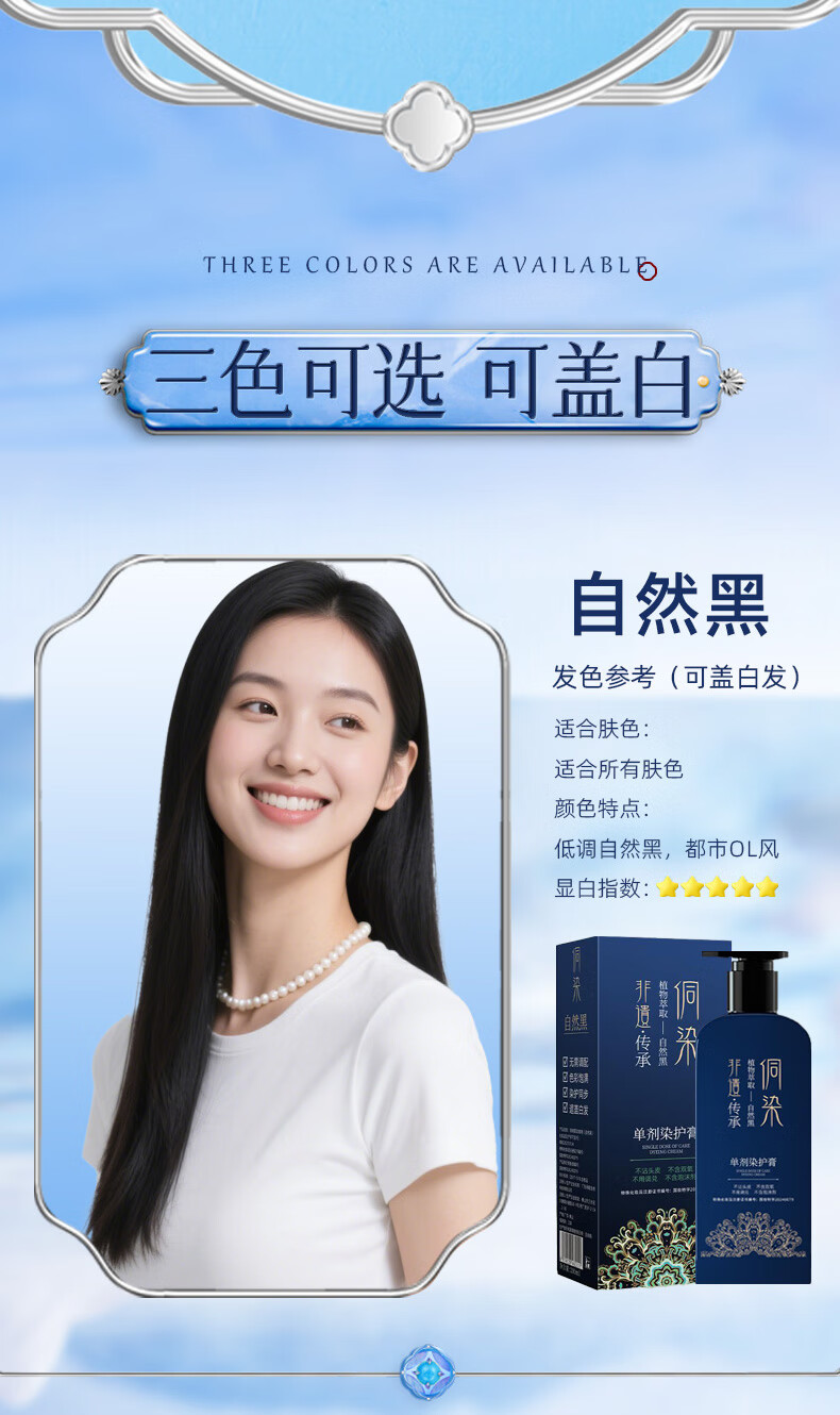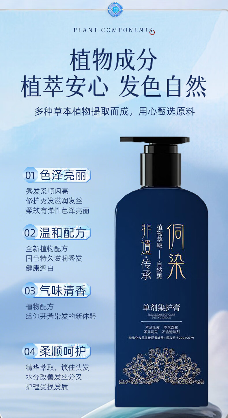 侗染染发膏 单剂一按染 自然黑盖白染发剂 植物染发居家轻松染发