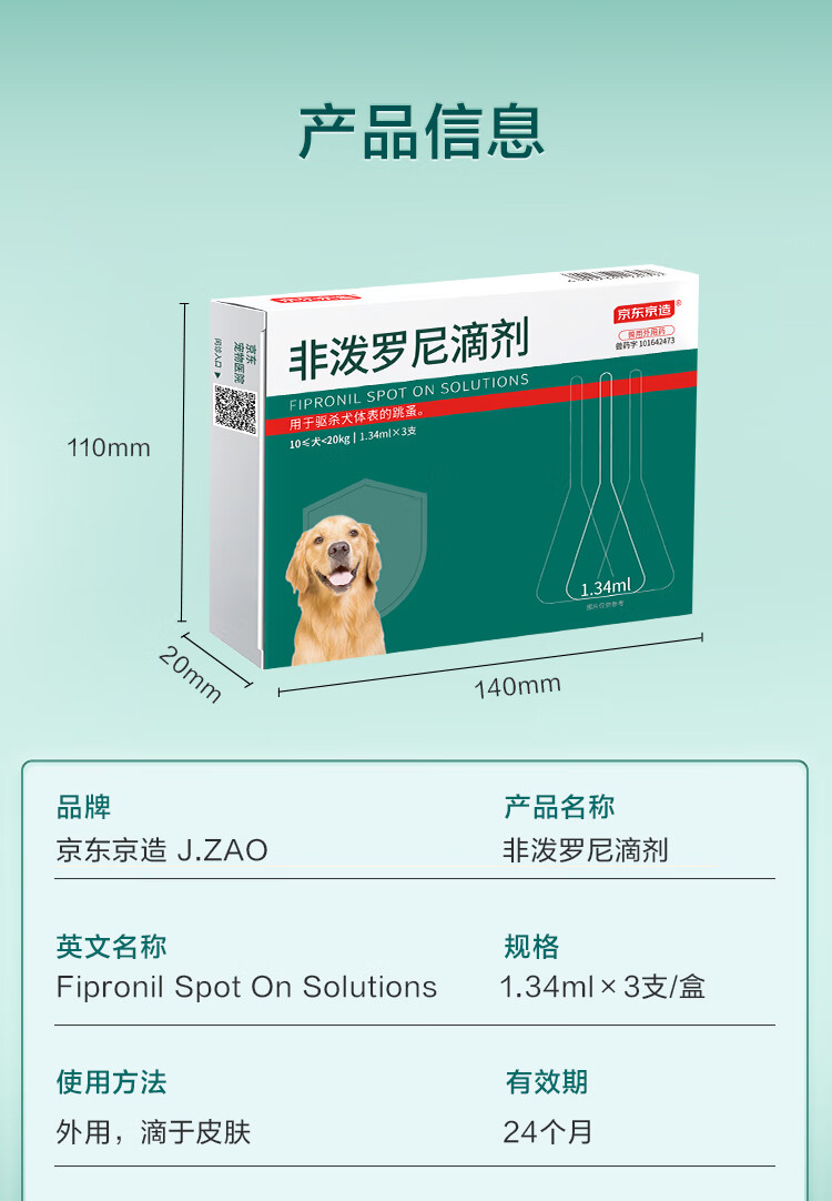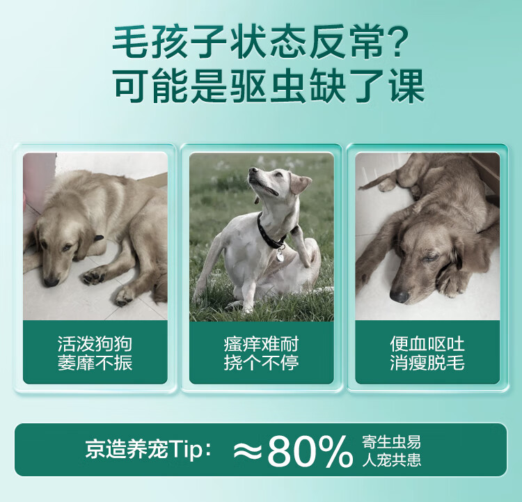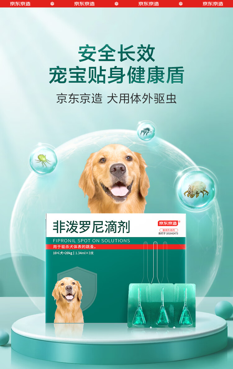 京东京造 3支大型狗驱虫体外驱虫药驱虫狗除耳螨虱子跳蚤蜱虫