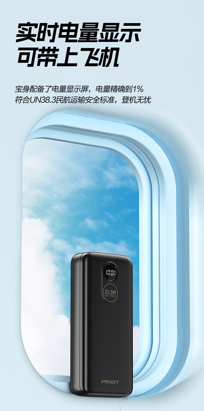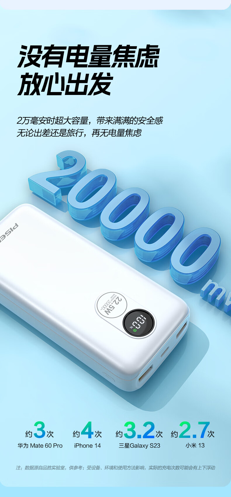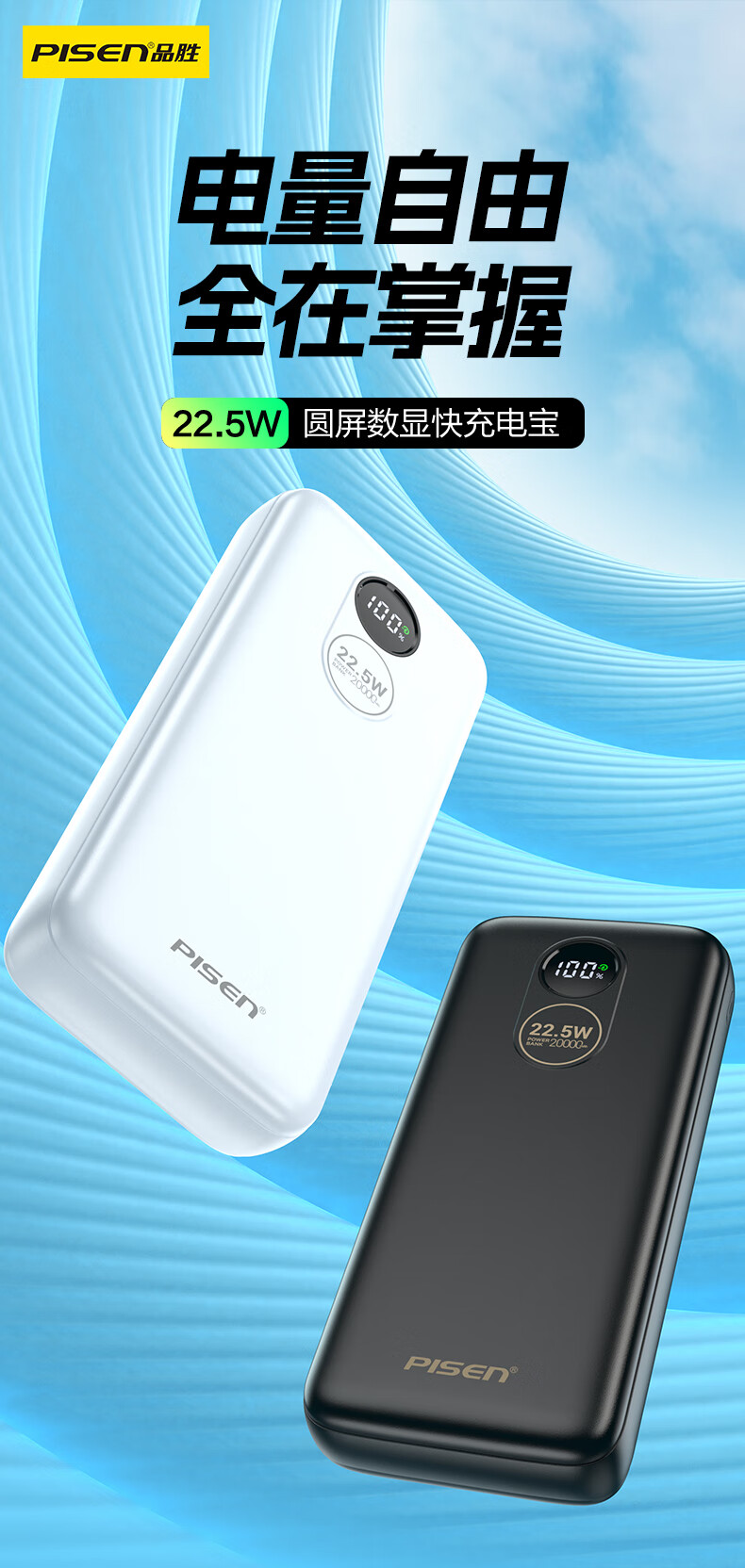 品胜3C认证充电宝 可上飞机 超级快充22.5W圆屏数显2万毫安大容量充电宝移动电源苹果17华为小米安卓 云初白【2万毫安|圆屏数显|22.5W】