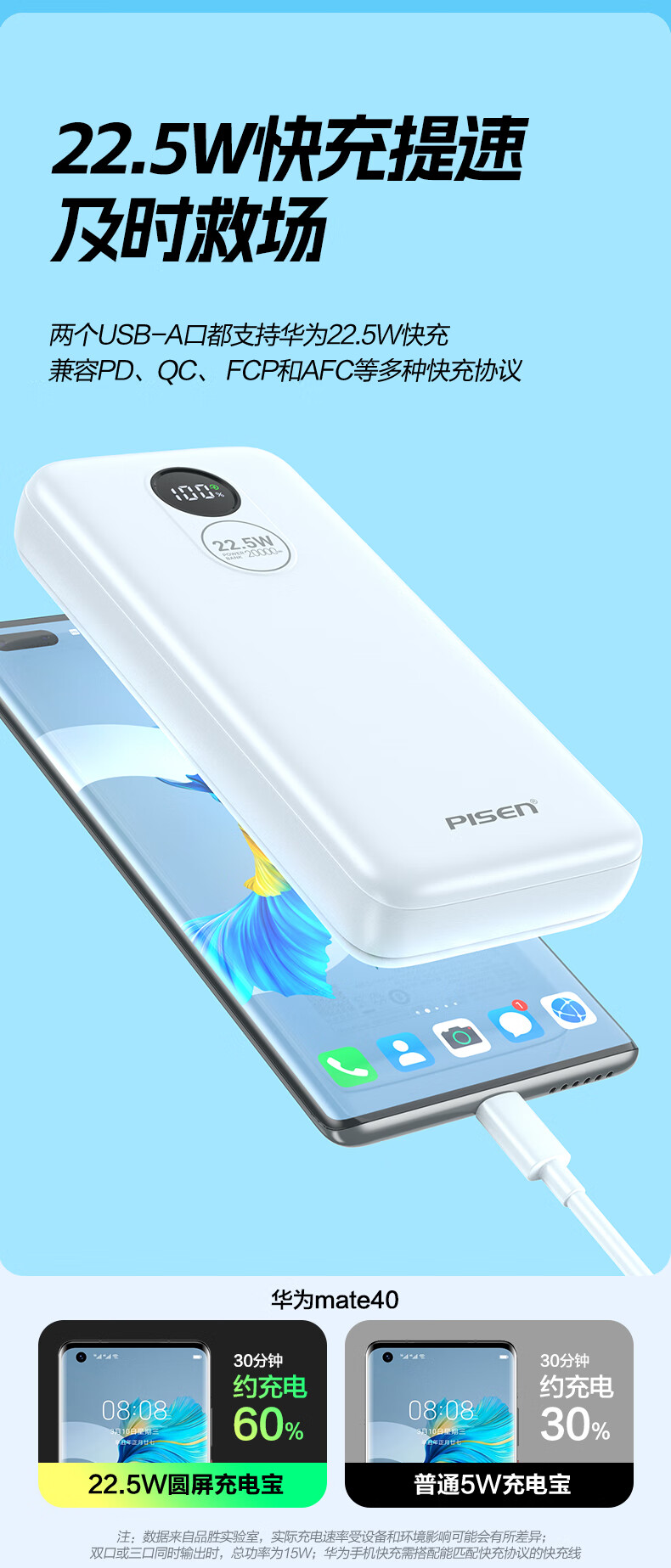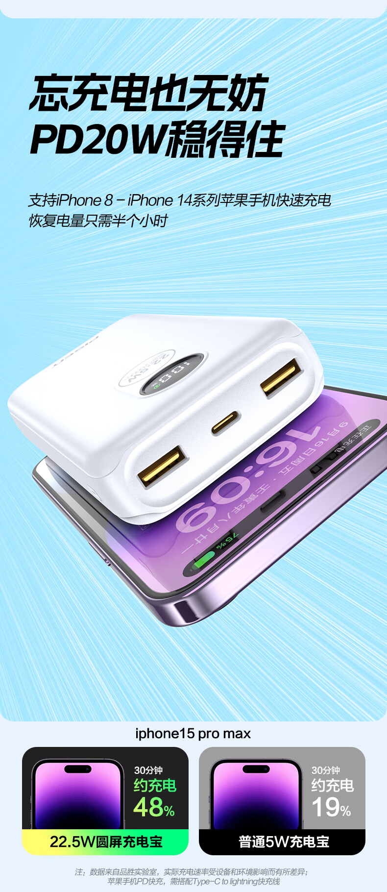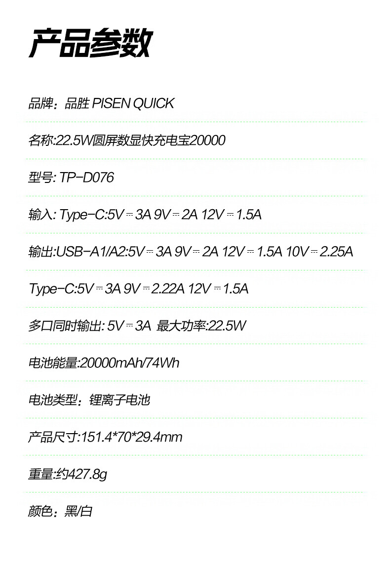 品胜3C认证充电宝 可上飞机 超级快充22.5W圆屏数显2万毫安大容量充电宝移动电源苹果17华为小米安卓 云初白【2万毫安|圆屏数显|22.5W】