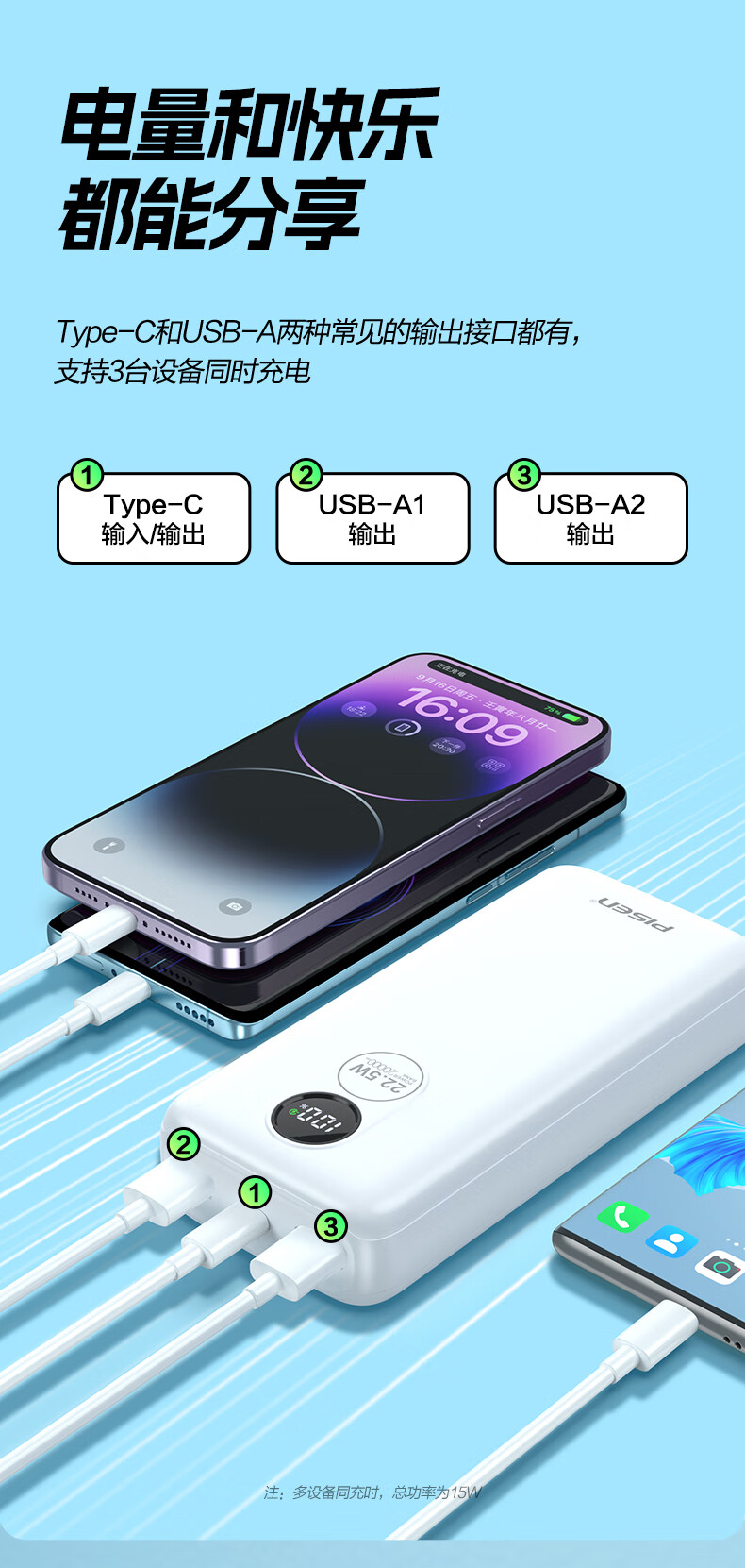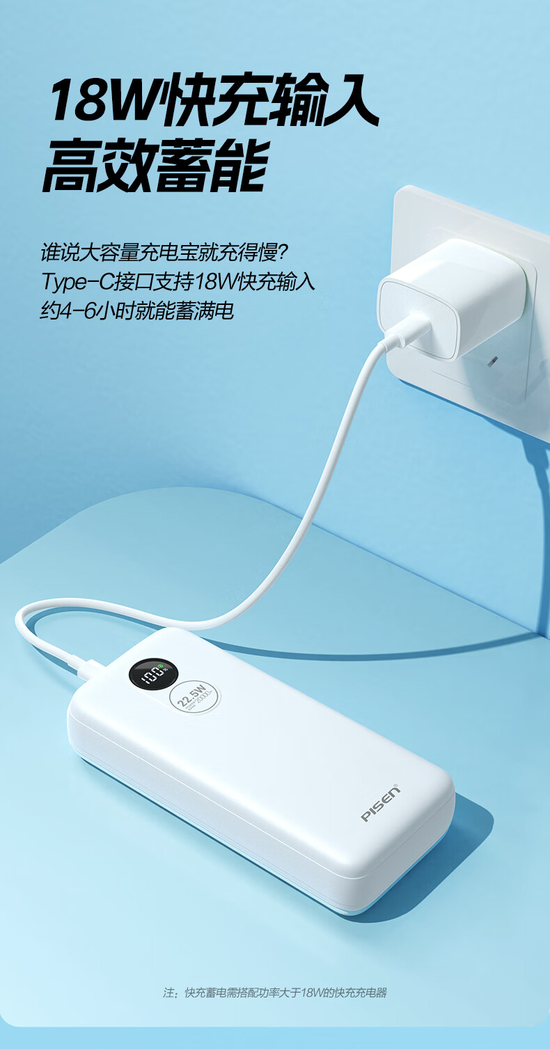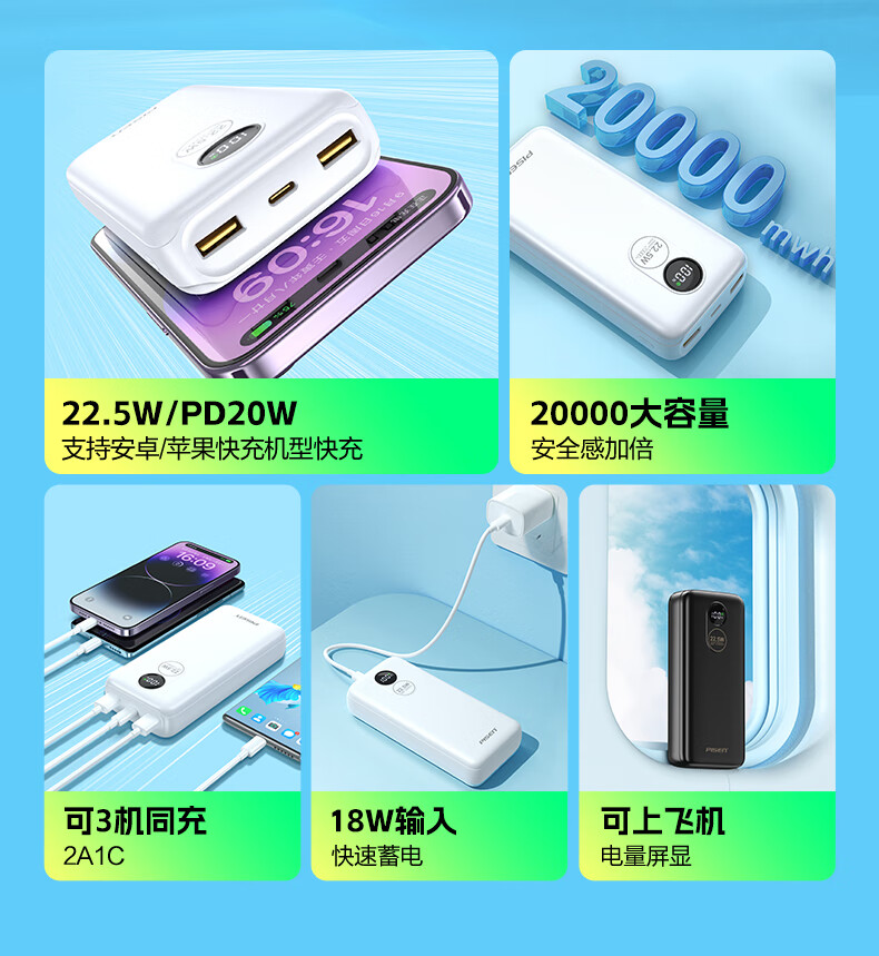 品胜(PISEN)【3C认证】充电宝PD20W快充10000毫安大容量可上飞机高铁小巧便携移动电源适用苹果17华为小米 白色【PD20W快充|小巧便携】