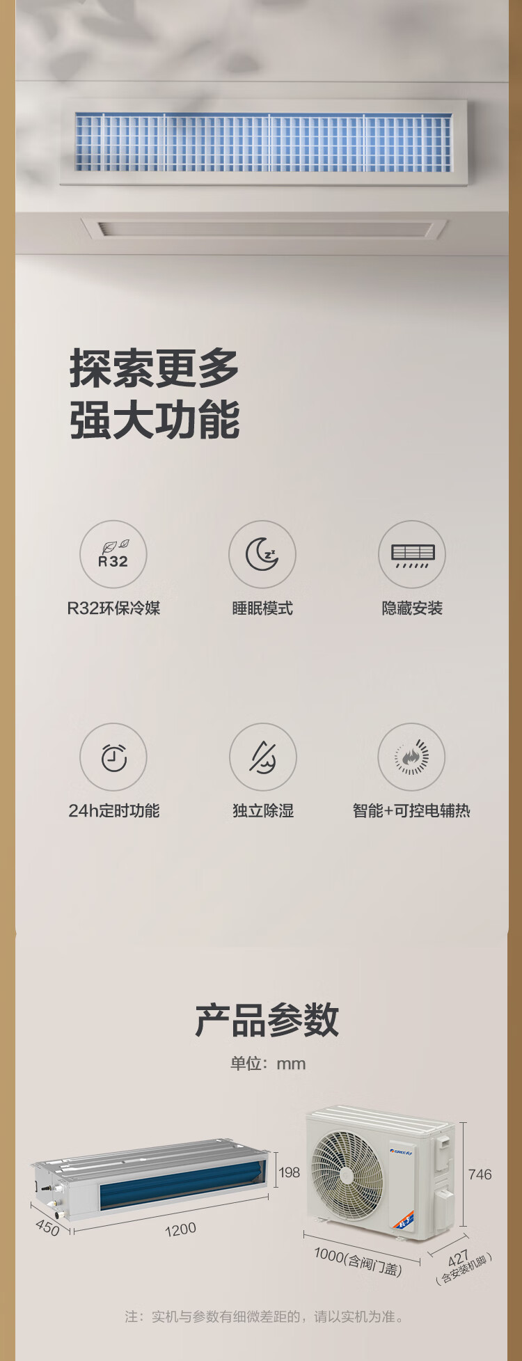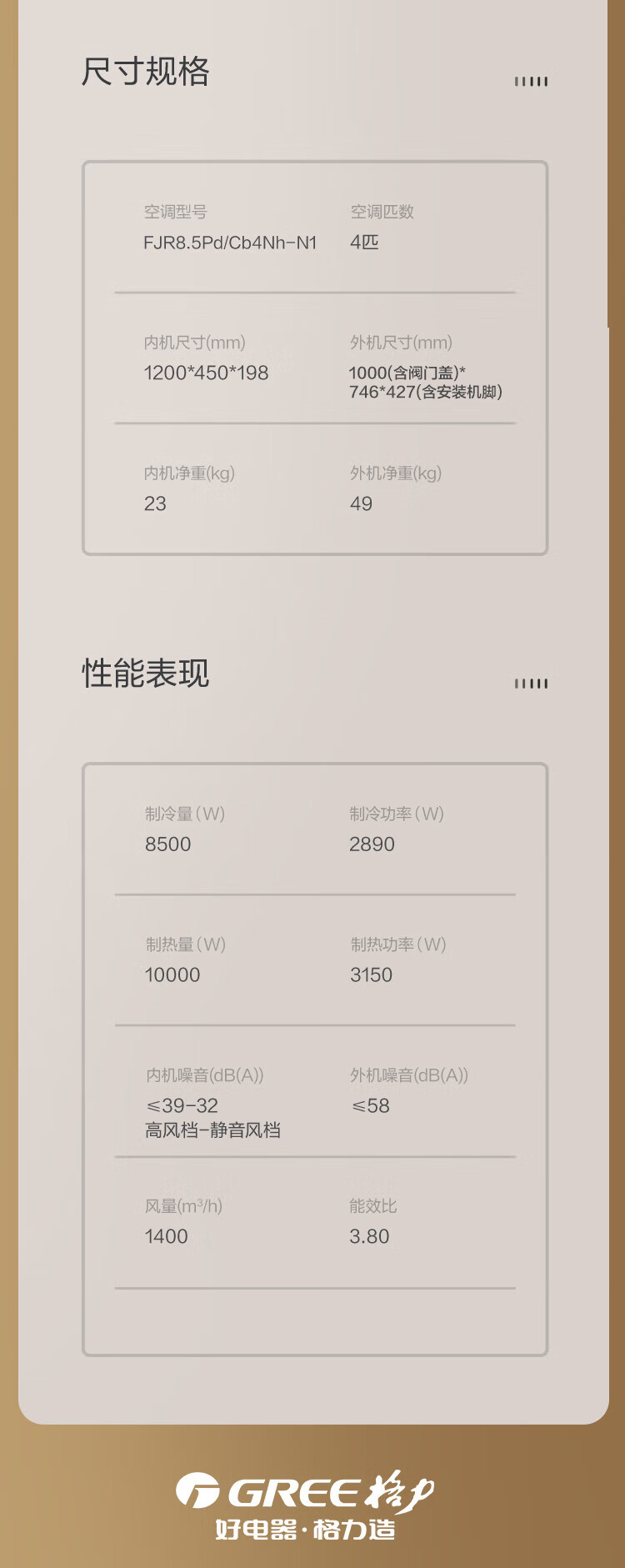 格力(GREE)中央空调风管机一拖一K+风静享小4匹家用1级能效FJR8.5Pd/Cb4Nh-N1(一价全包)国家补贴