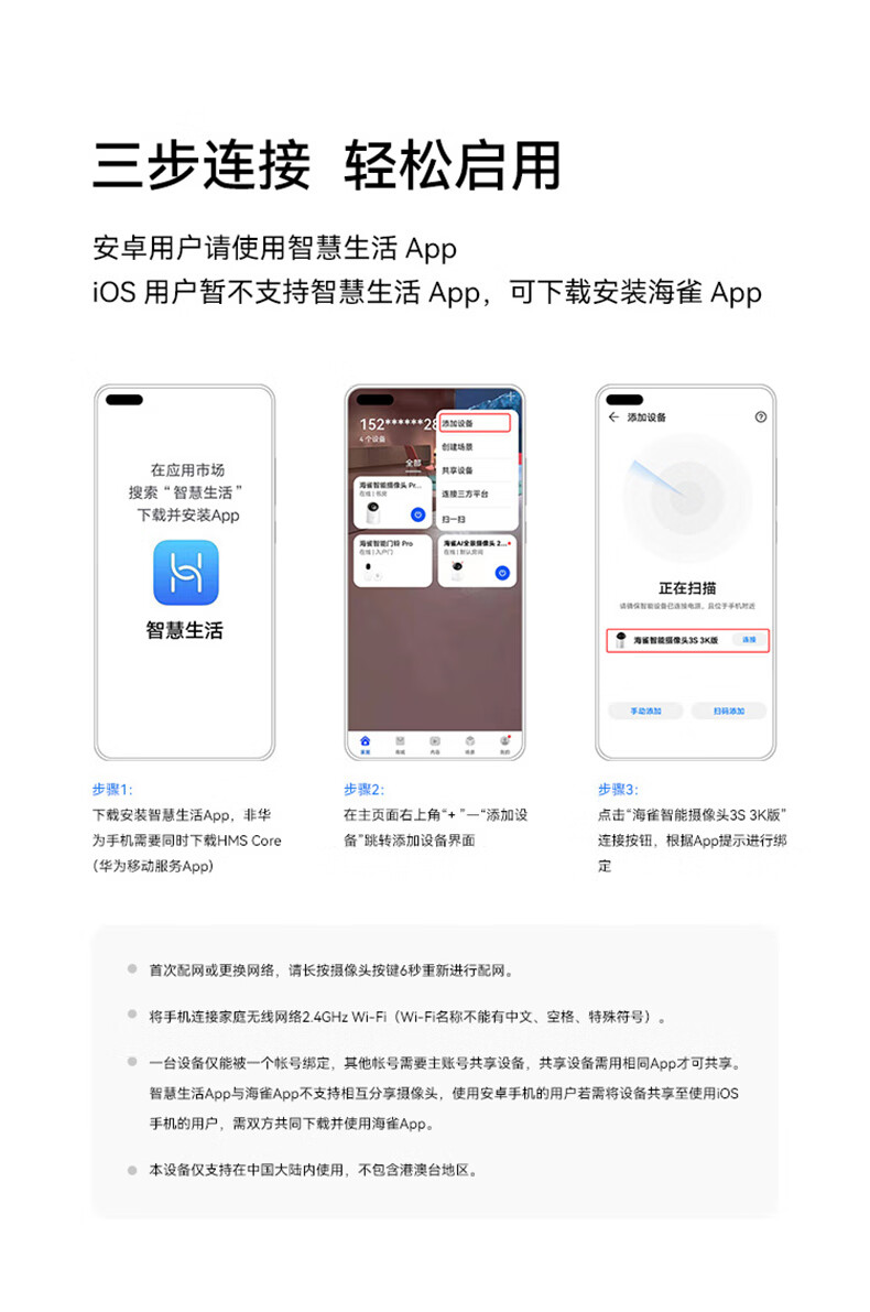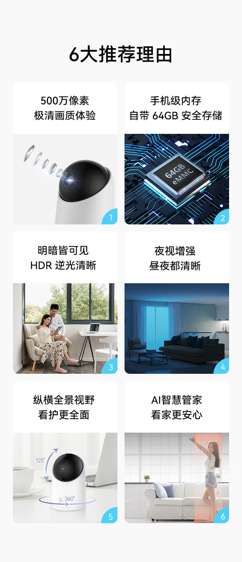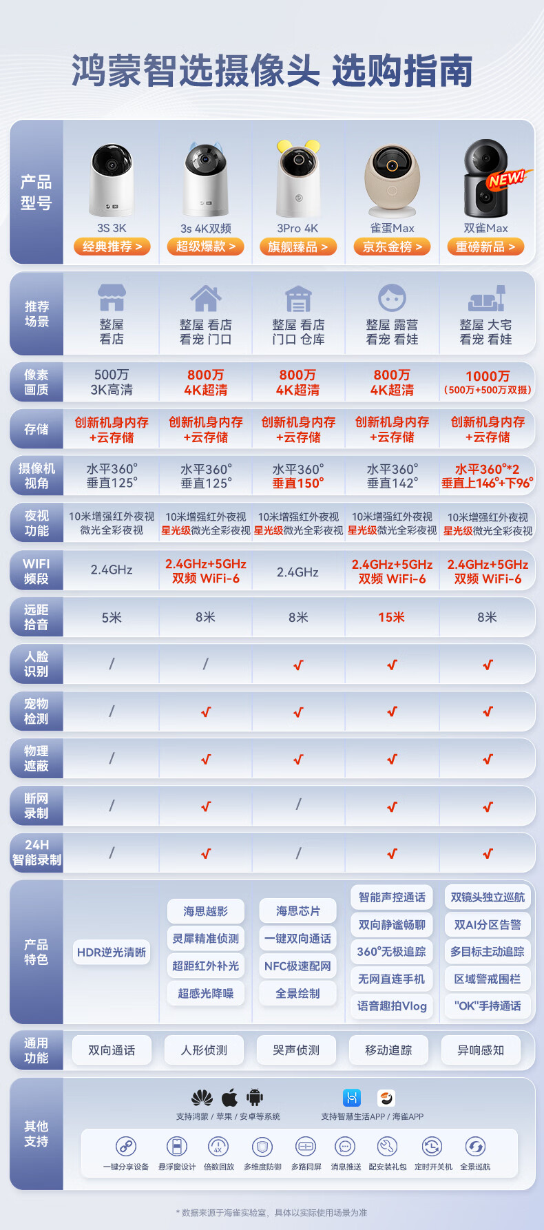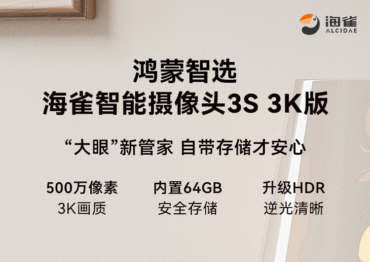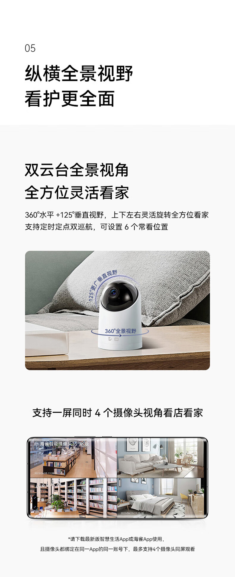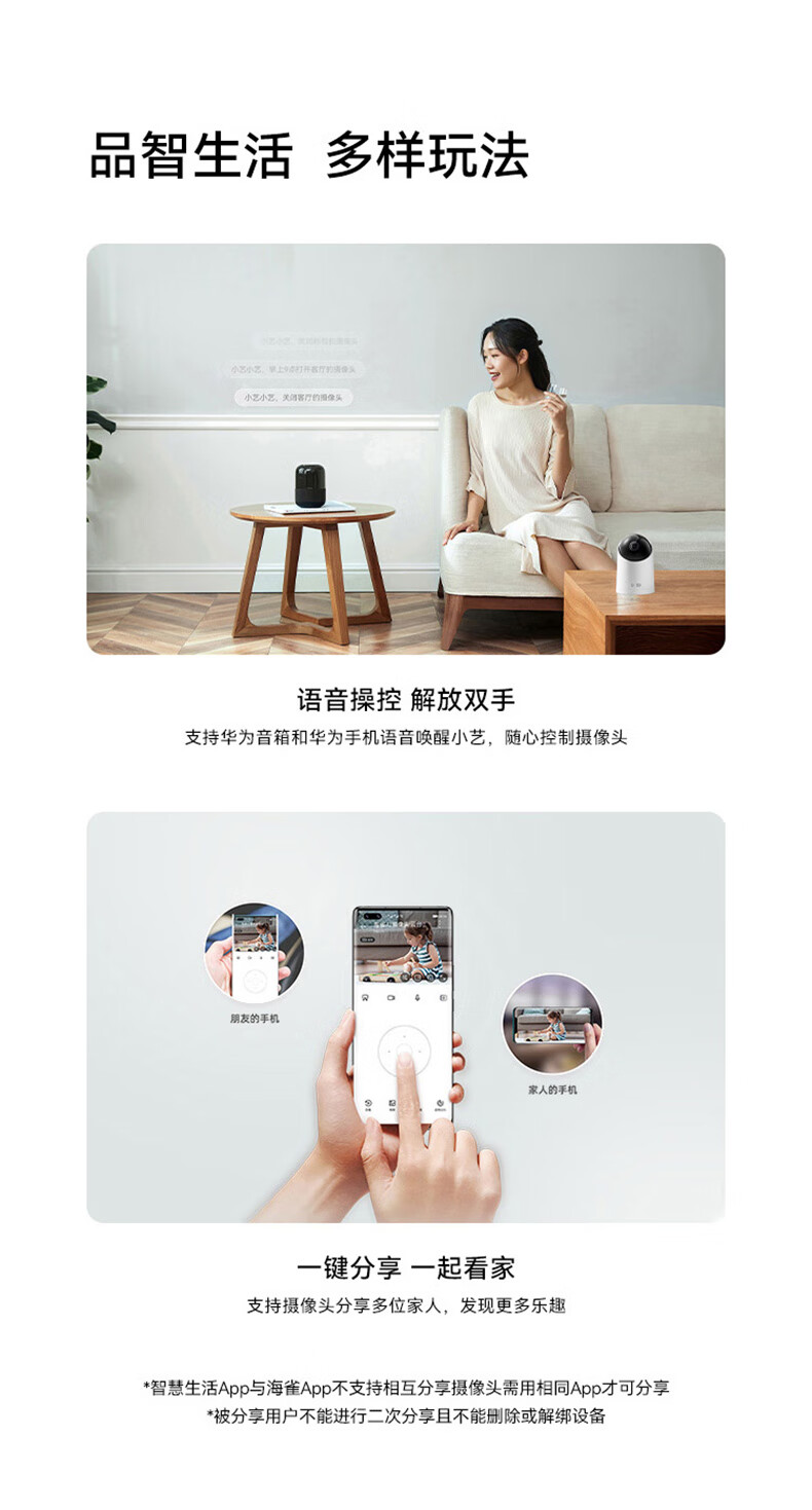 华为智选鸿蒙智选海雀500万摄像头智能监控家用室内安防手机远程语音通话360度无死角全景婴儿宝宝宠物3S3K
