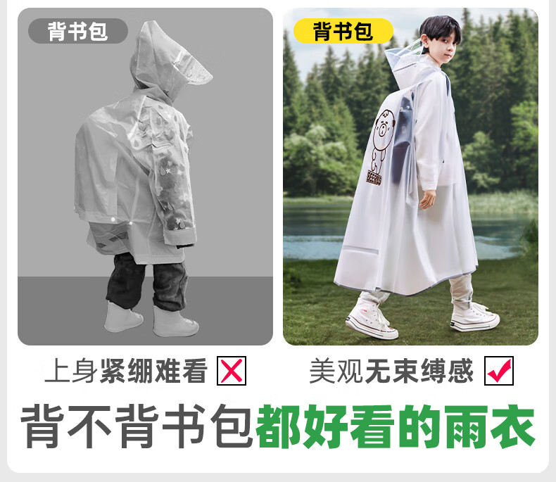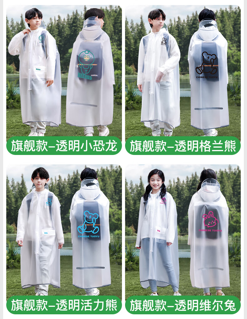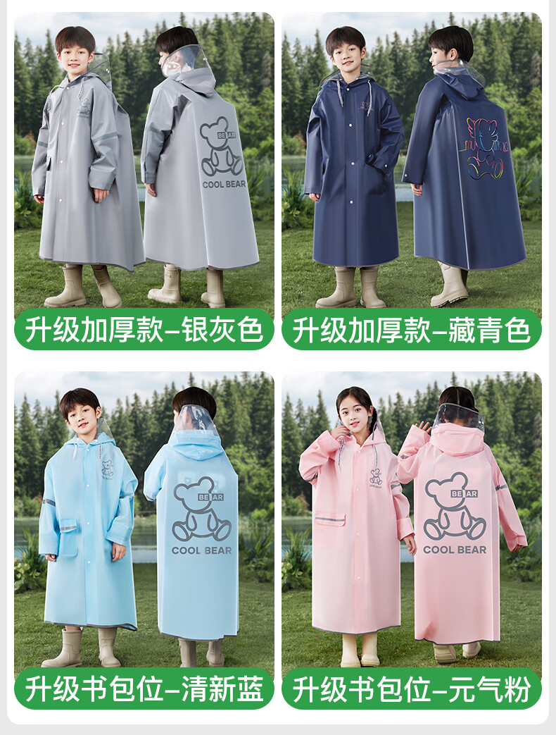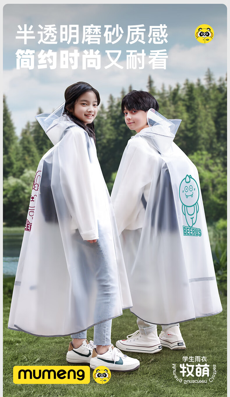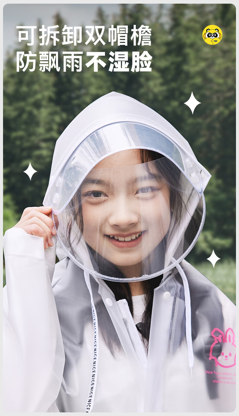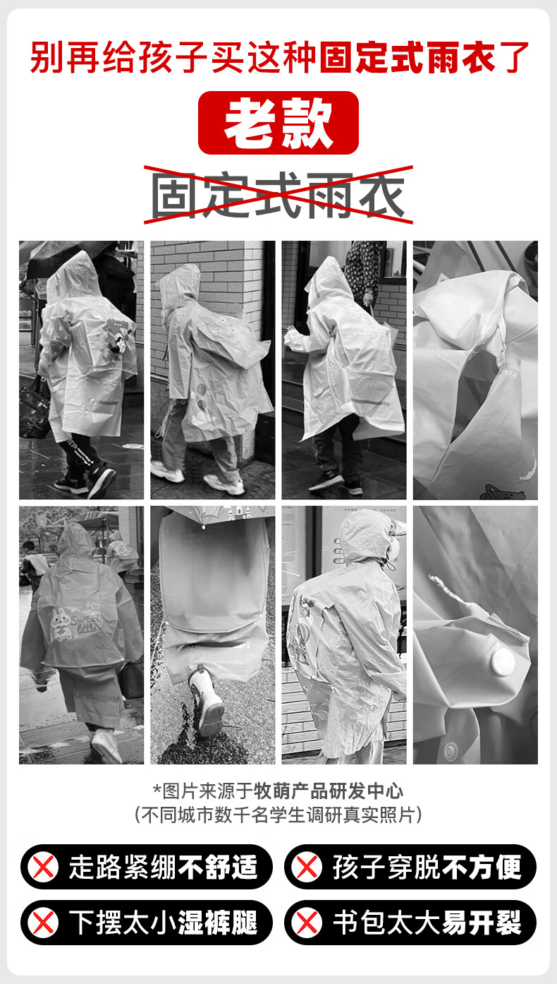 牧萌(moremerry)儿童雨衣男女童学生上学带书包位雨披 粉兔子 4XL