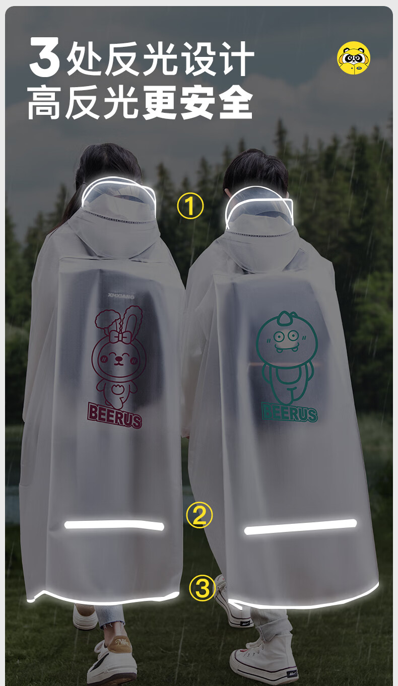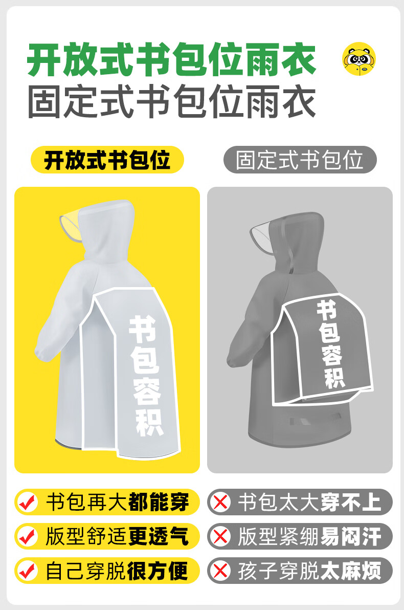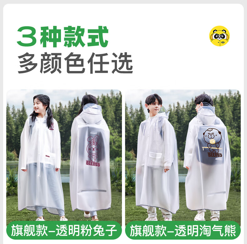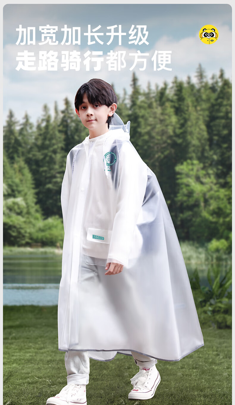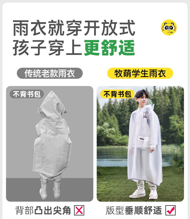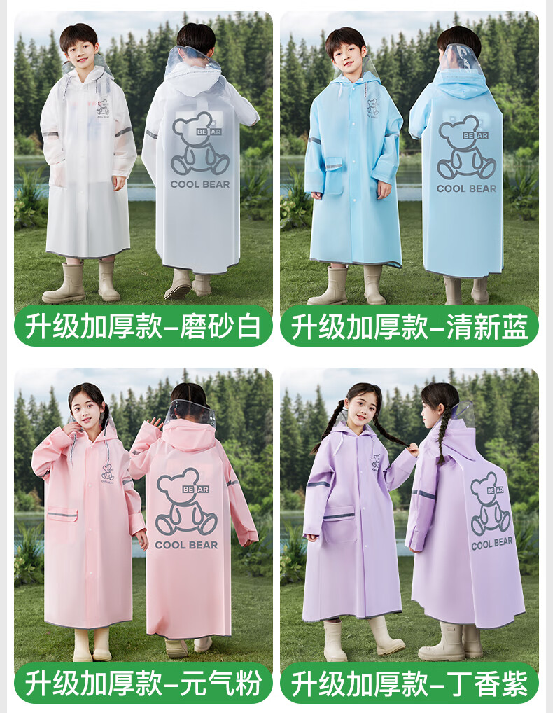 牧萌(moremerry)儿童雨衣男女童学生上学带书包位雨披 粉兔子 4XL