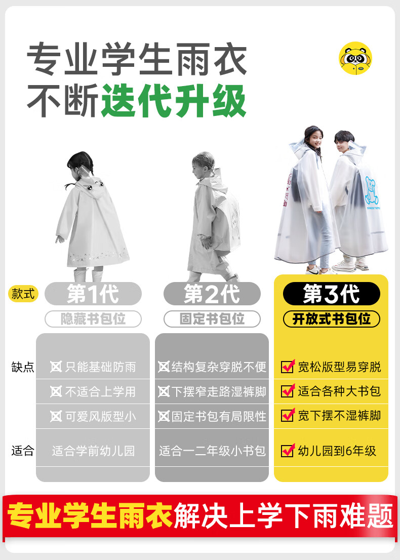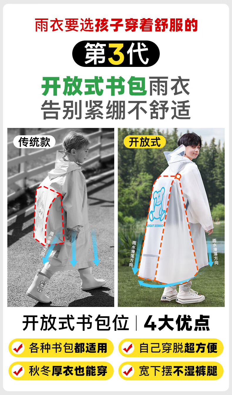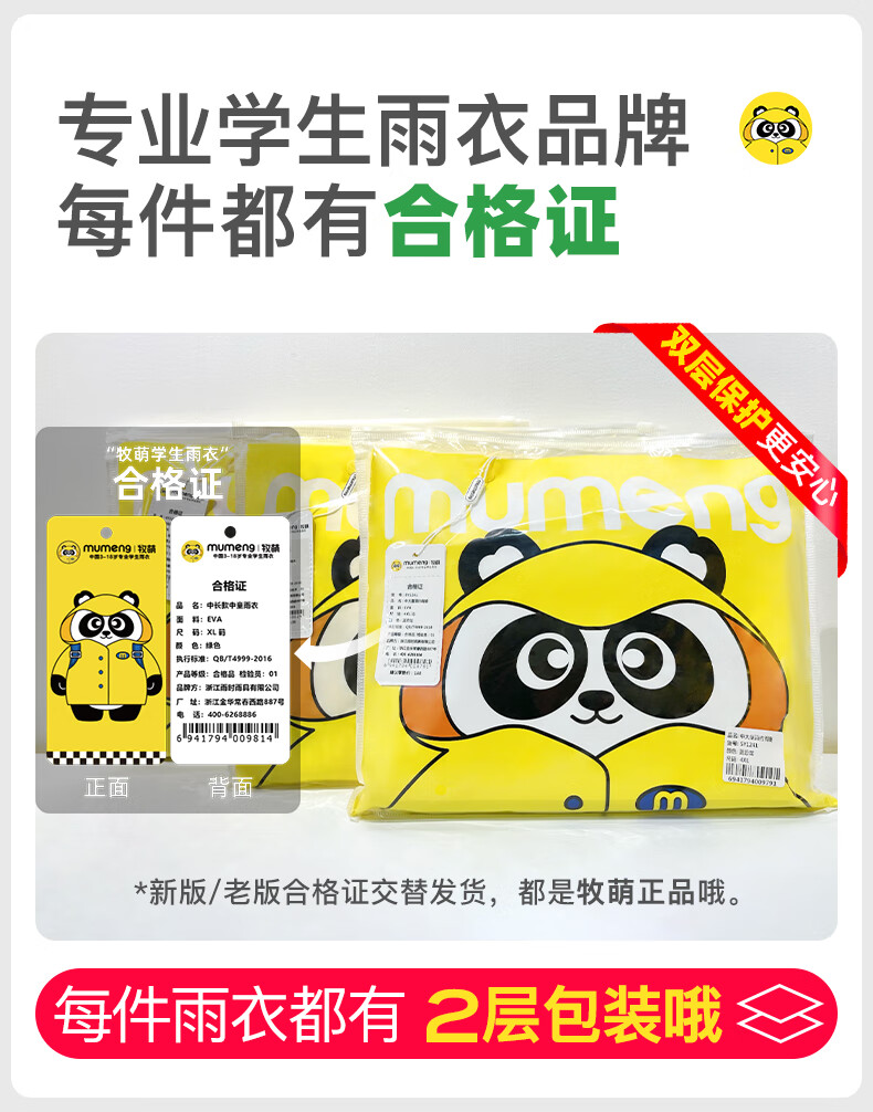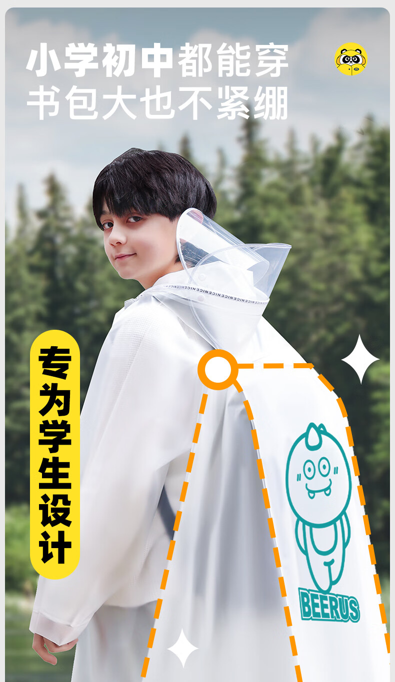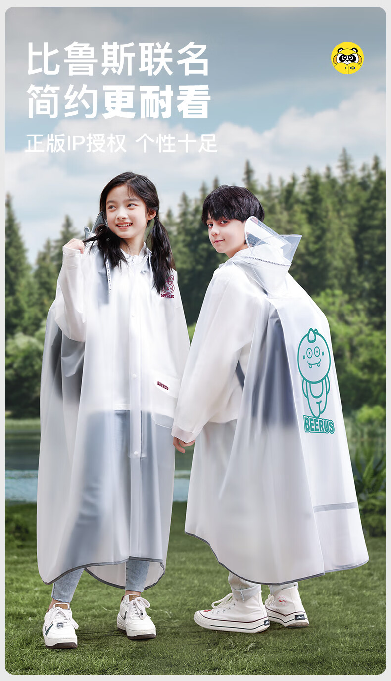 牧萌(moremerry)儿童雨衣男女童学生上学带书包位雨披 粉兔子 4XL