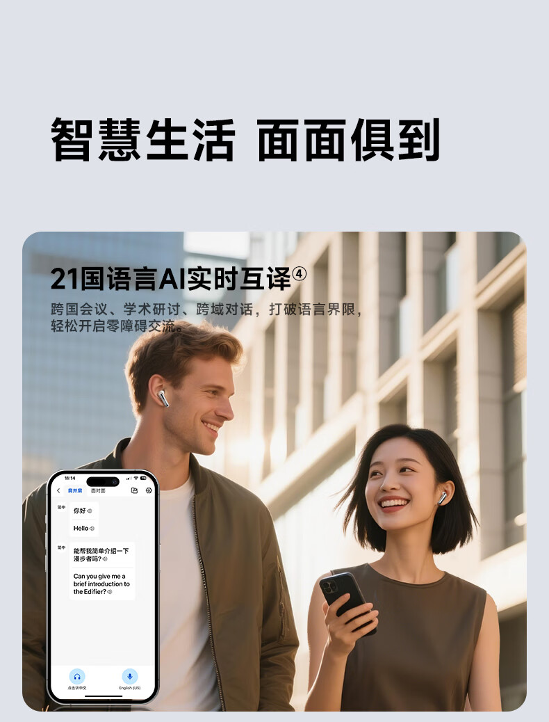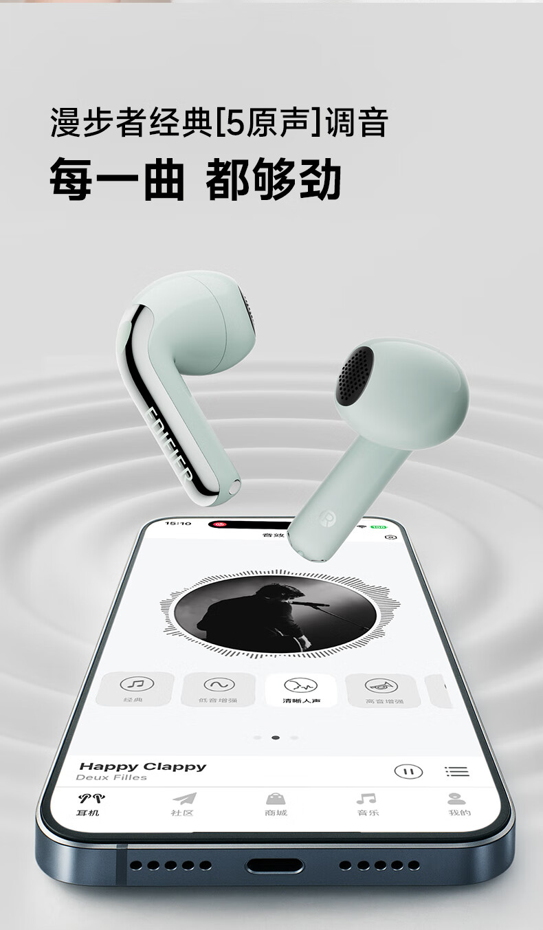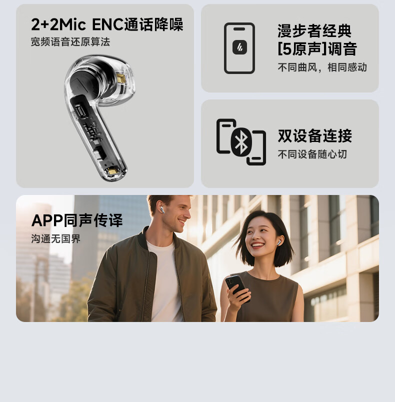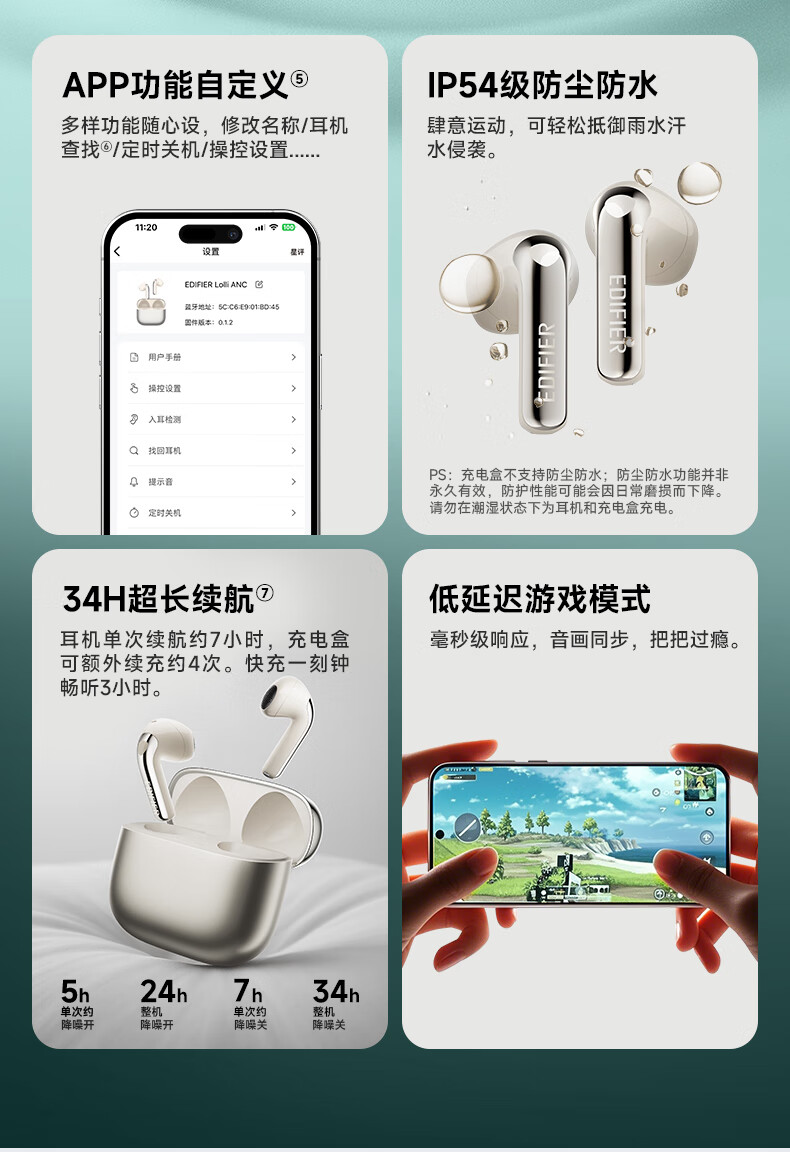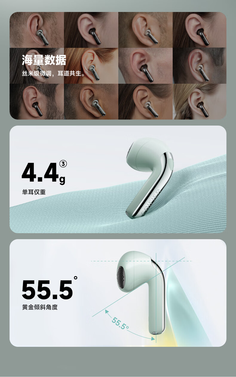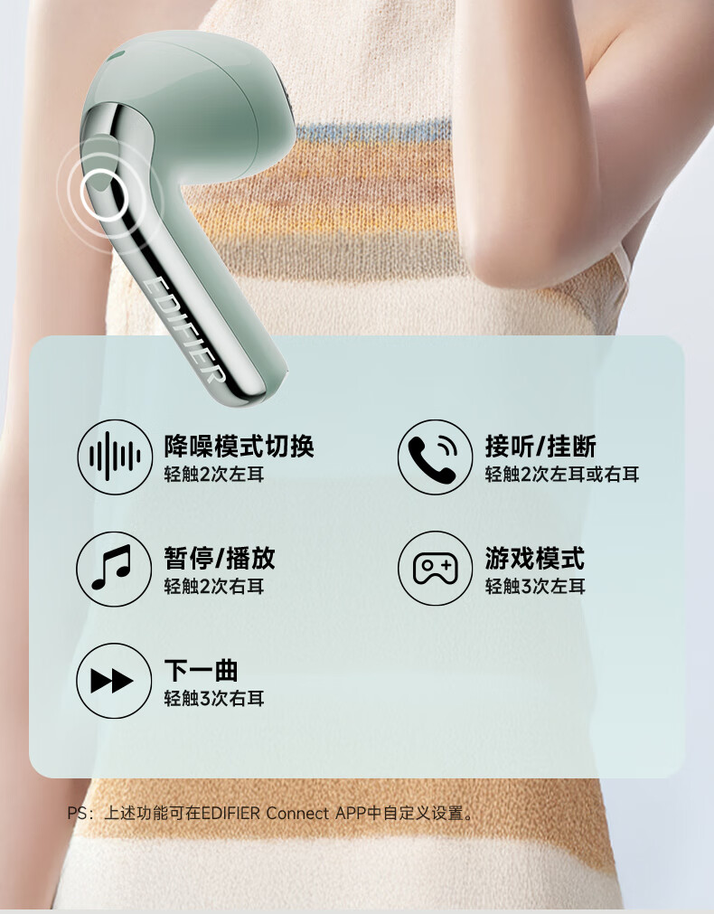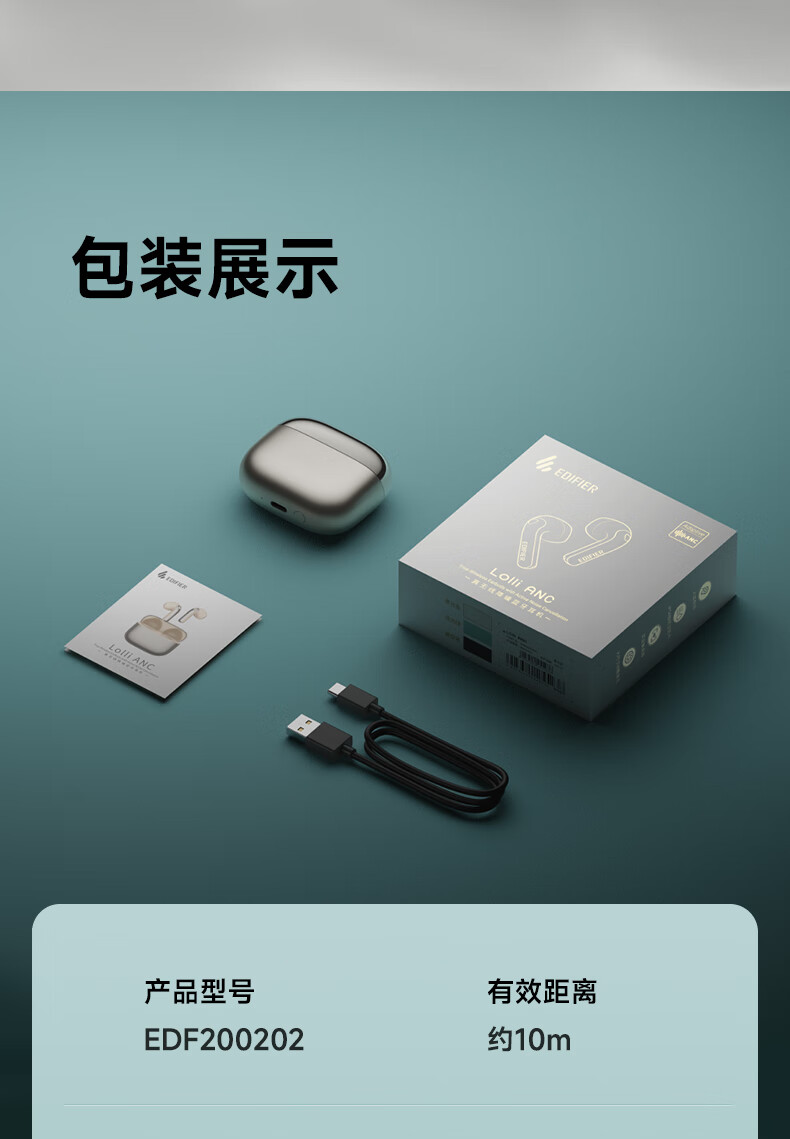 漫步者(EDIFIER)萝莉豆Lolli ANC 半入耳主动降噪蓝牙耳机 同声传译 适用苹果华为小米OPPO手机 极光绿