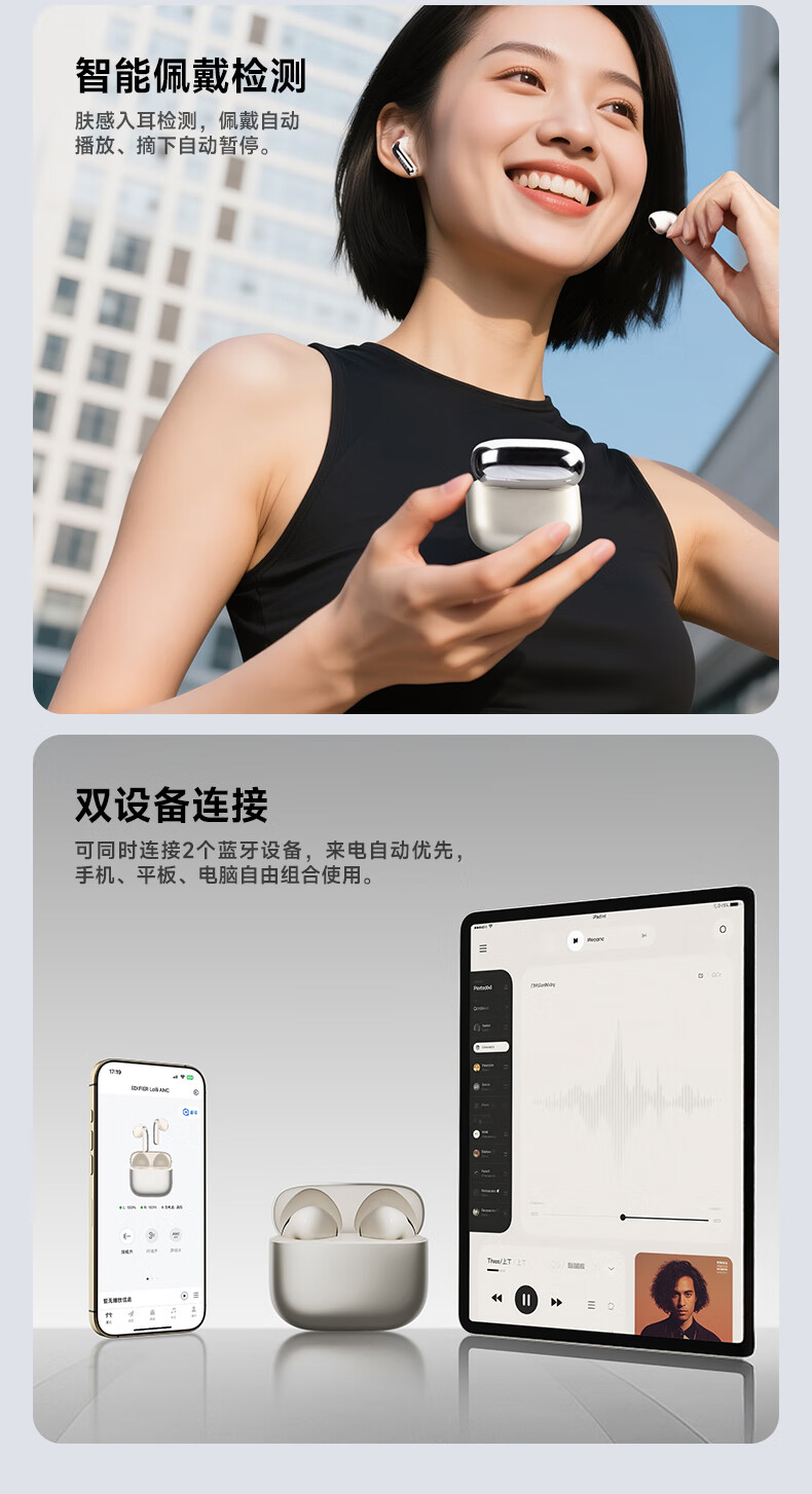 FEINADE【柏林之声丨顶配新款】蓝牙耳机挂耳式无线耳机骨传导概念开放式不入耳降噪运动超长续航适用华为 月光白|ENC降噪|超强音质|不漏音