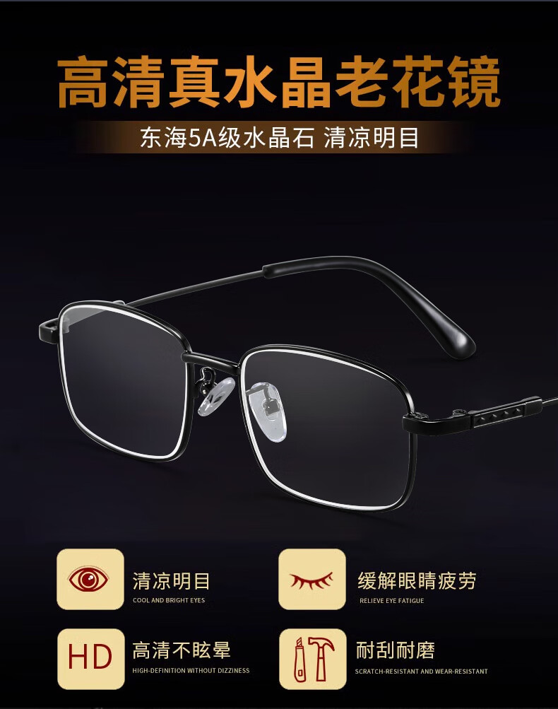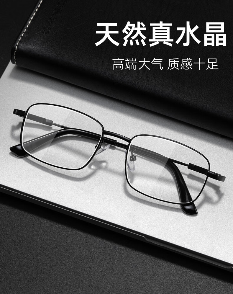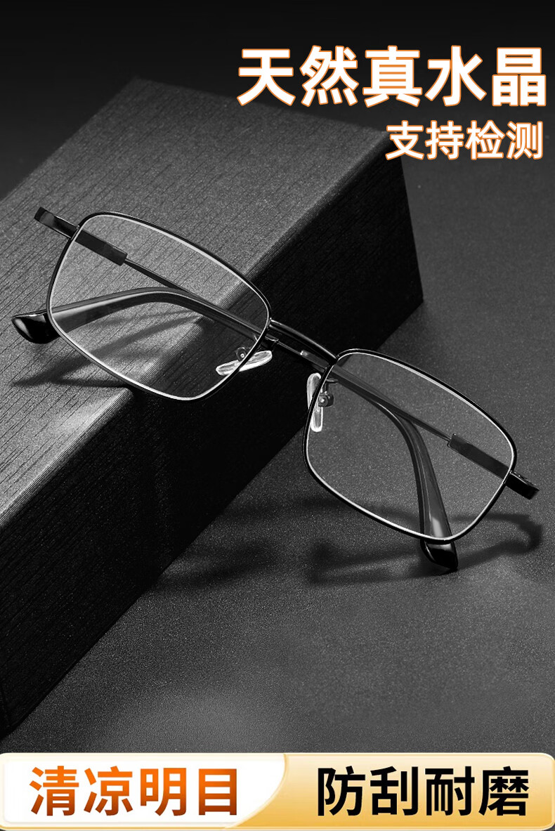LESCA LUNETIER纯钛天然水晶老花镜男水晶石头眼镜高清超轻东海老人品牌高档正品