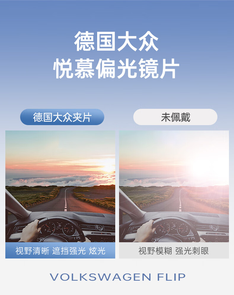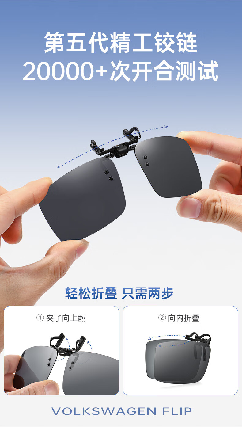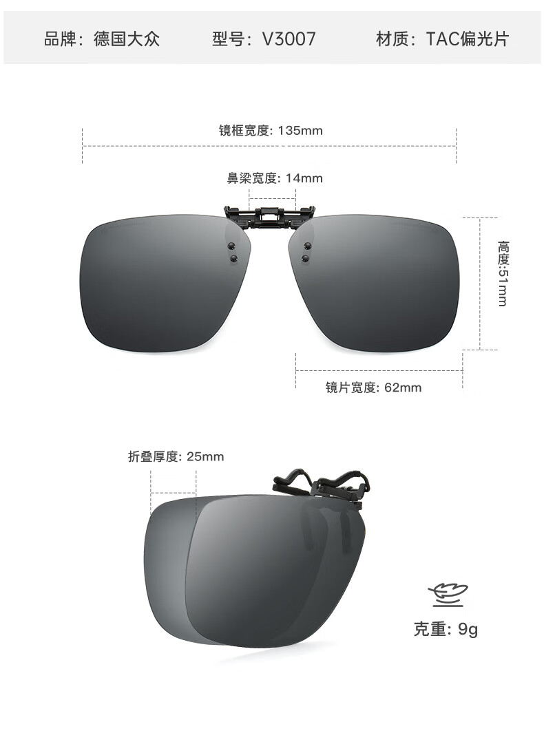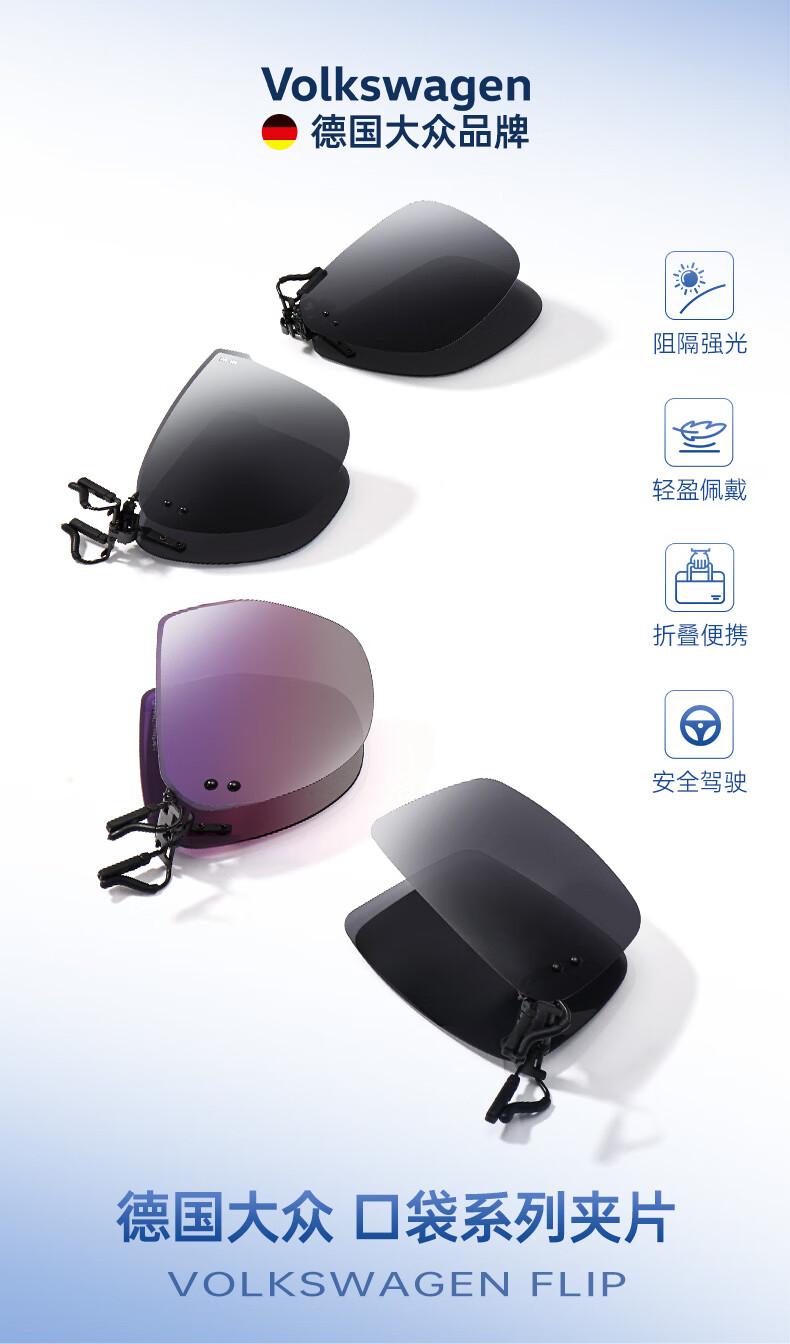 VOLKSWAGEN德国大众折叠近视太阳镜夹片偏光近视眼镜夹片开车可翻转3007