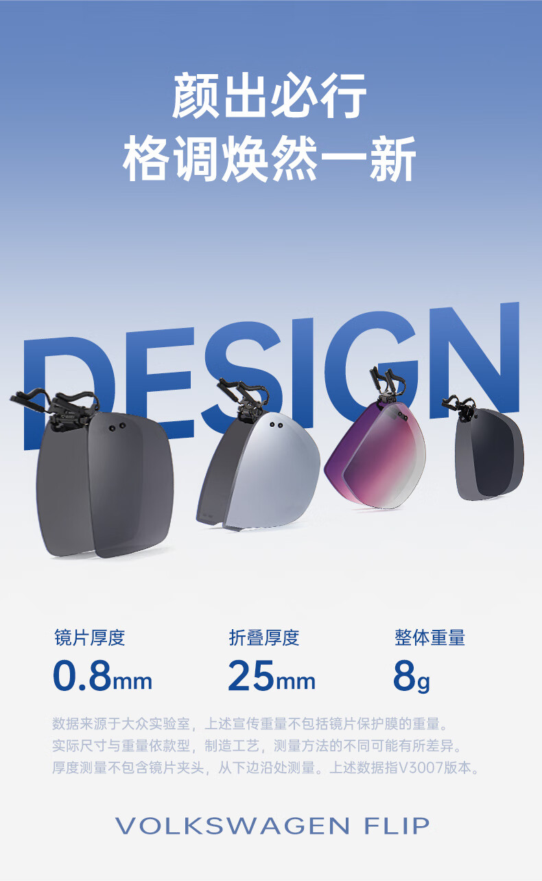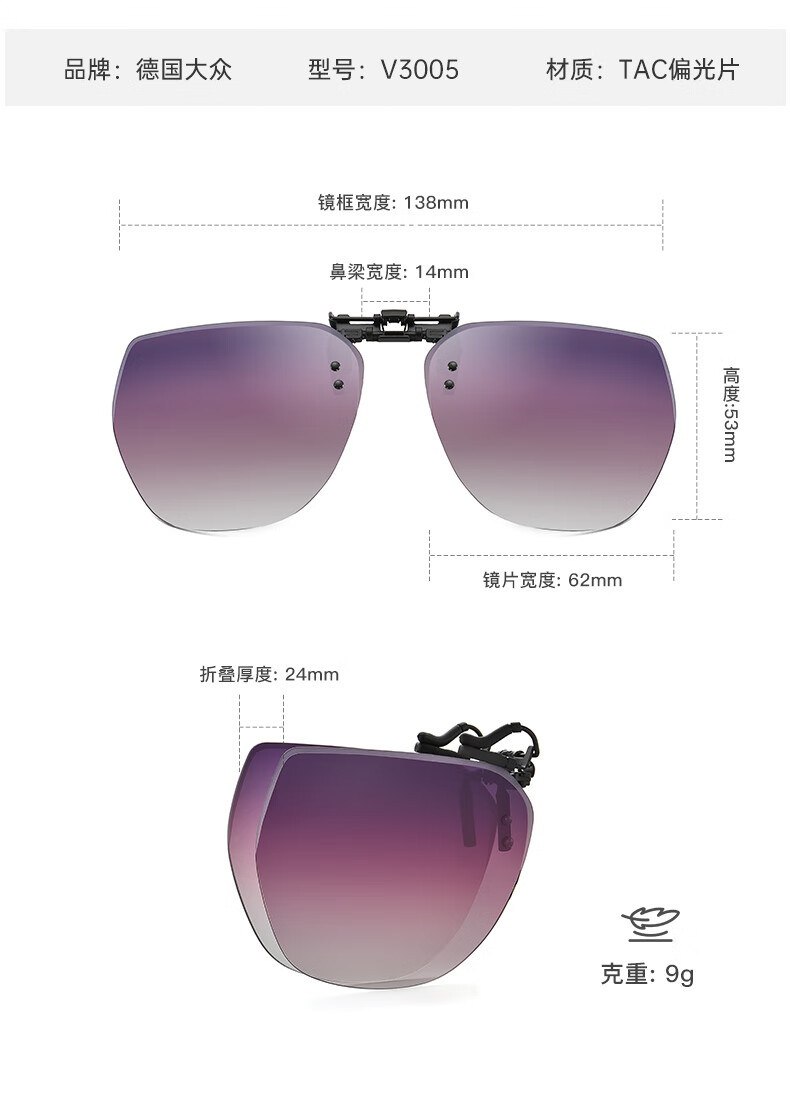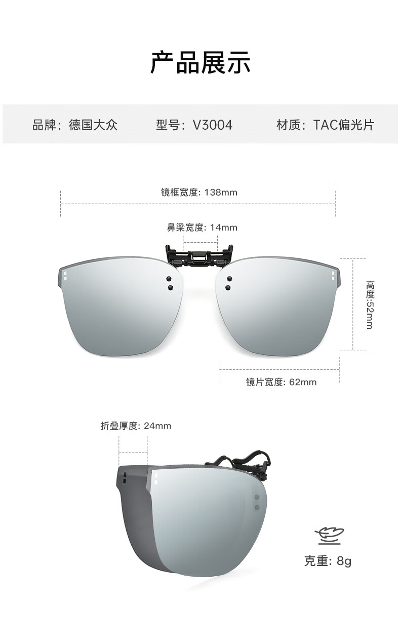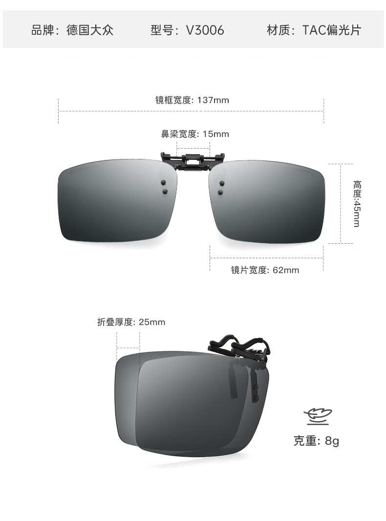 VOLKSWAGEN德国大众折叠近视太阳镜夹片偏光近视眼镜夹片开车可翻转3007