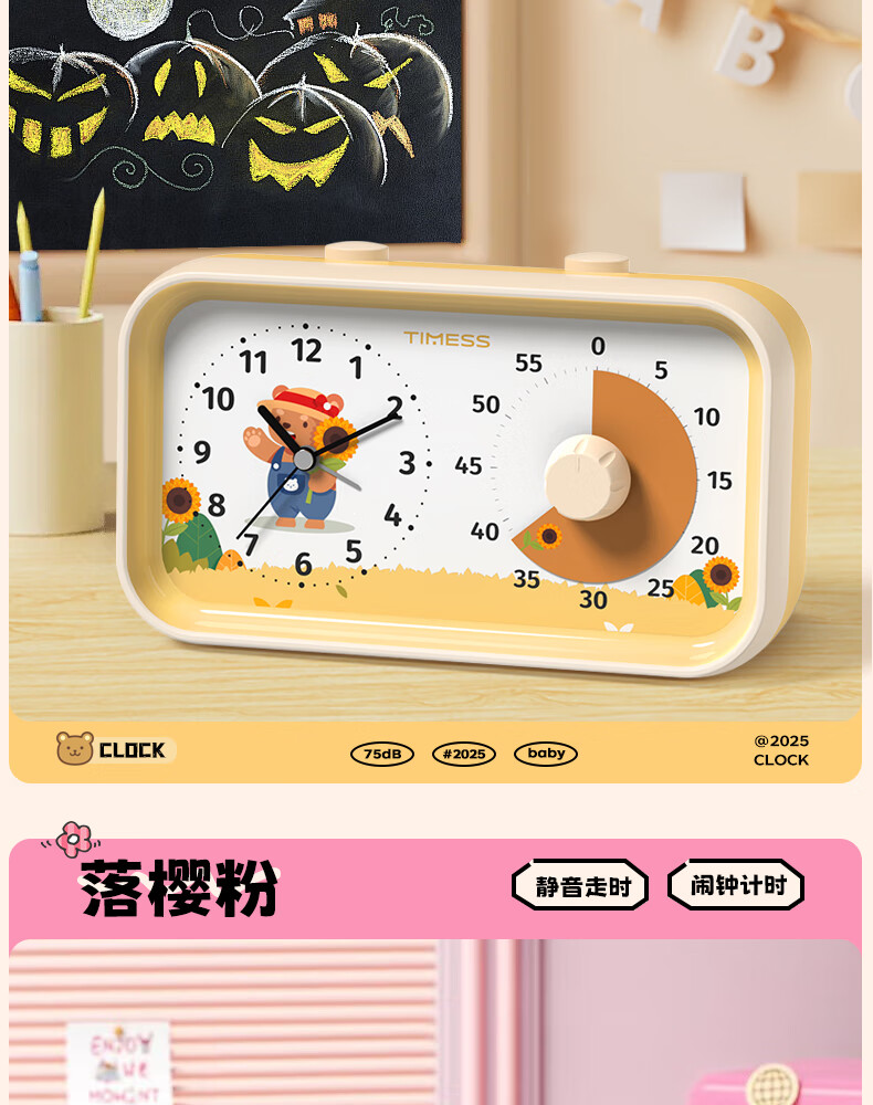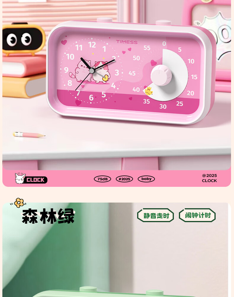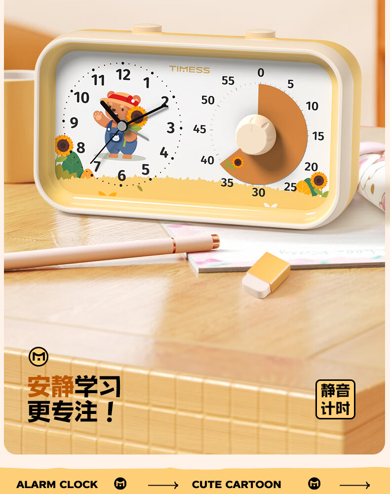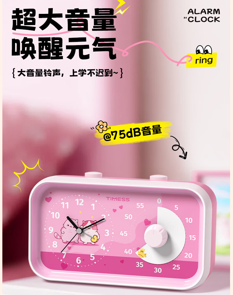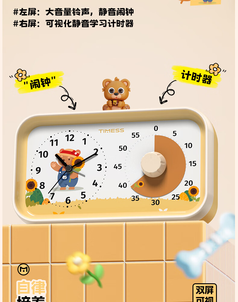 Timess闹钟可视化计时器二合一学生学习专用起床神器儿童时间管理器厨房烹饪倒计时定时器自律神器礼物