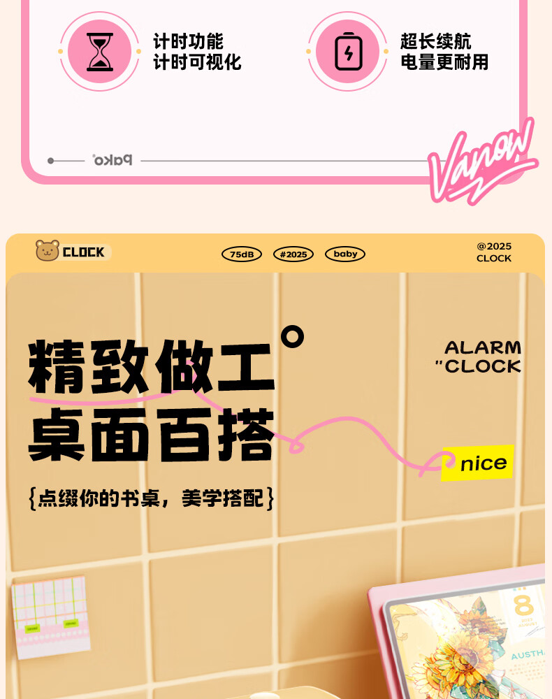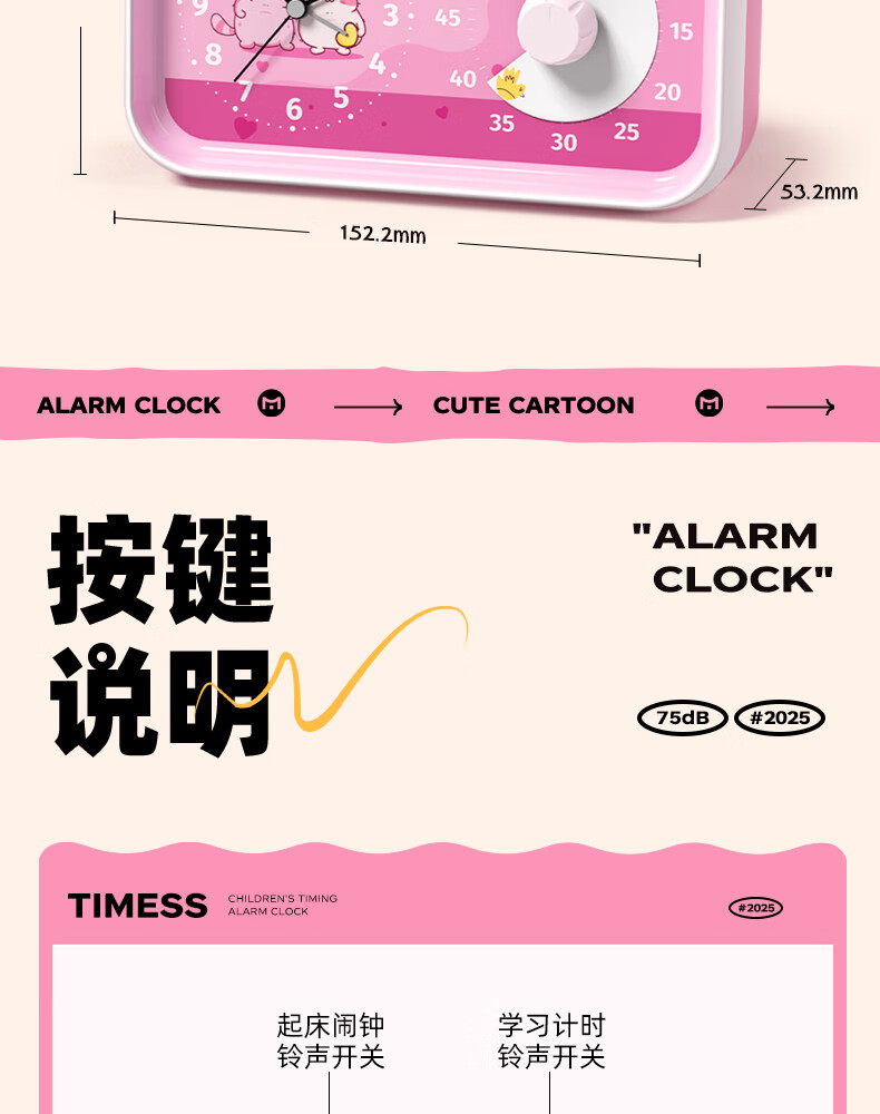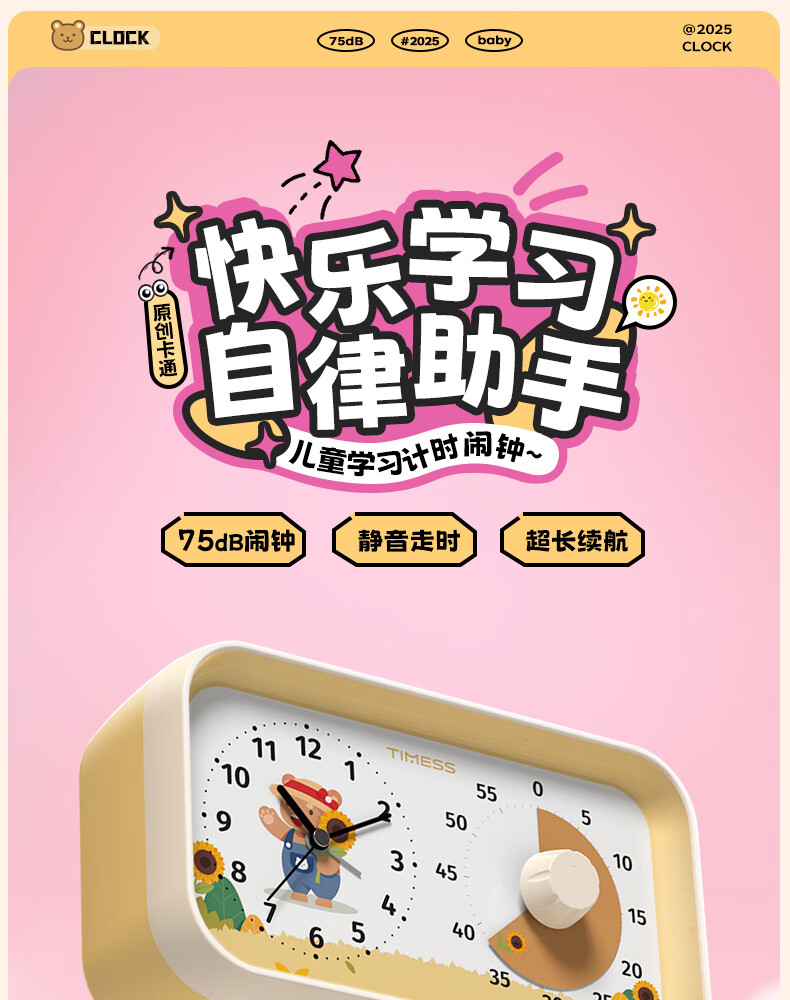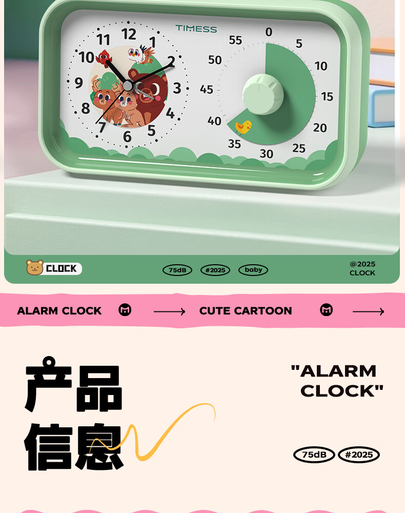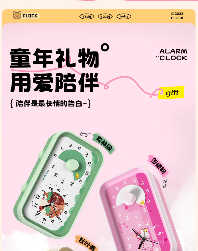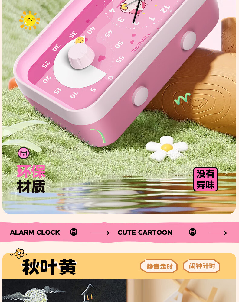 Timess闹钟可视化计时器二合一学生学习专用起床神器儿童时间管理器厨房烹饪倒计时定时器自律神器礼物