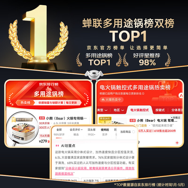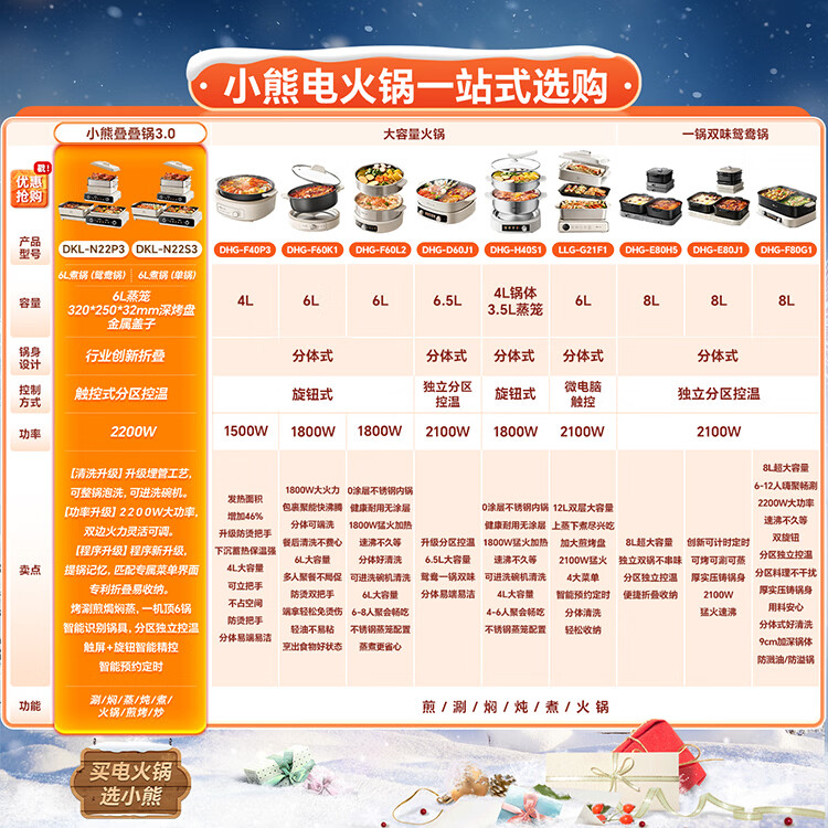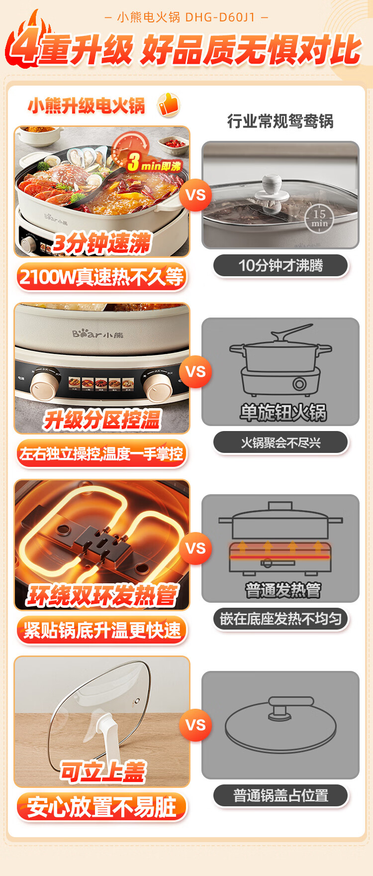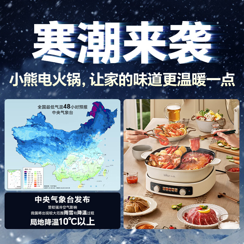 小熊(Bear)电火锅 鸳鸯锅家用火锅专用锅分体多功能锅 电煮锅涮肉锅火锅锅3分钟速沸分区控温 D60J1 6.5L