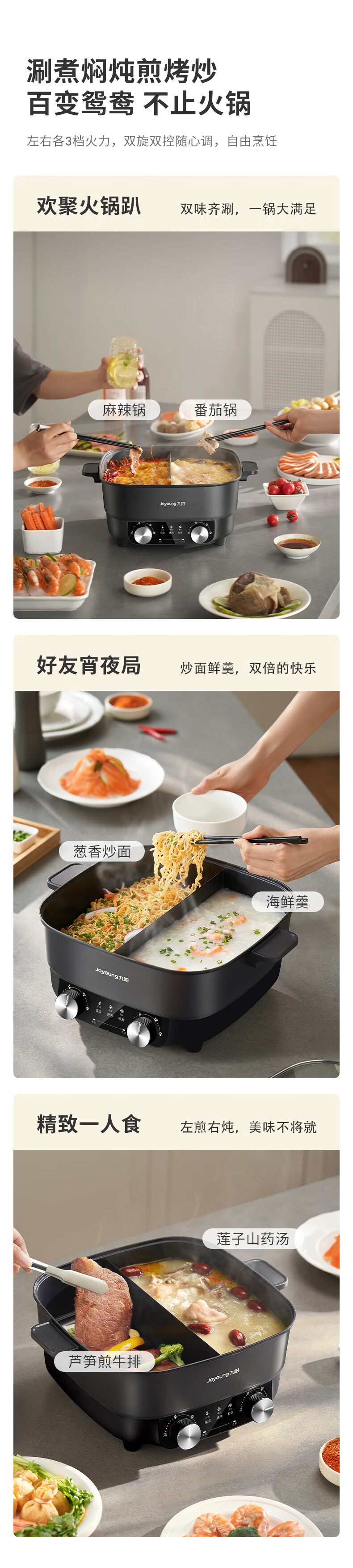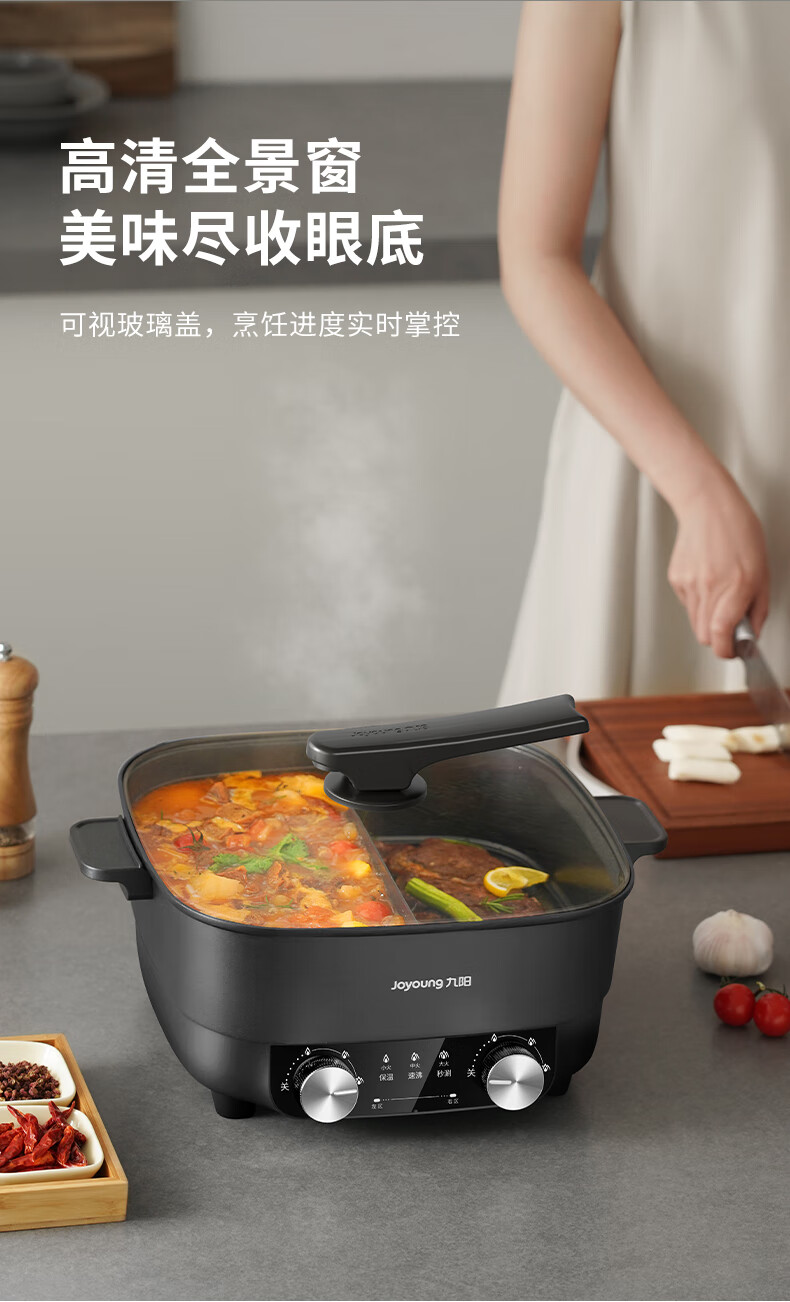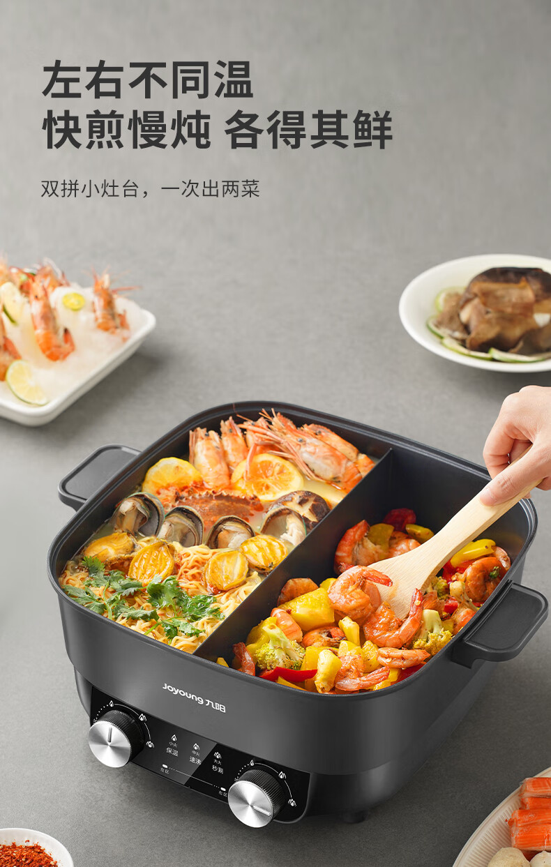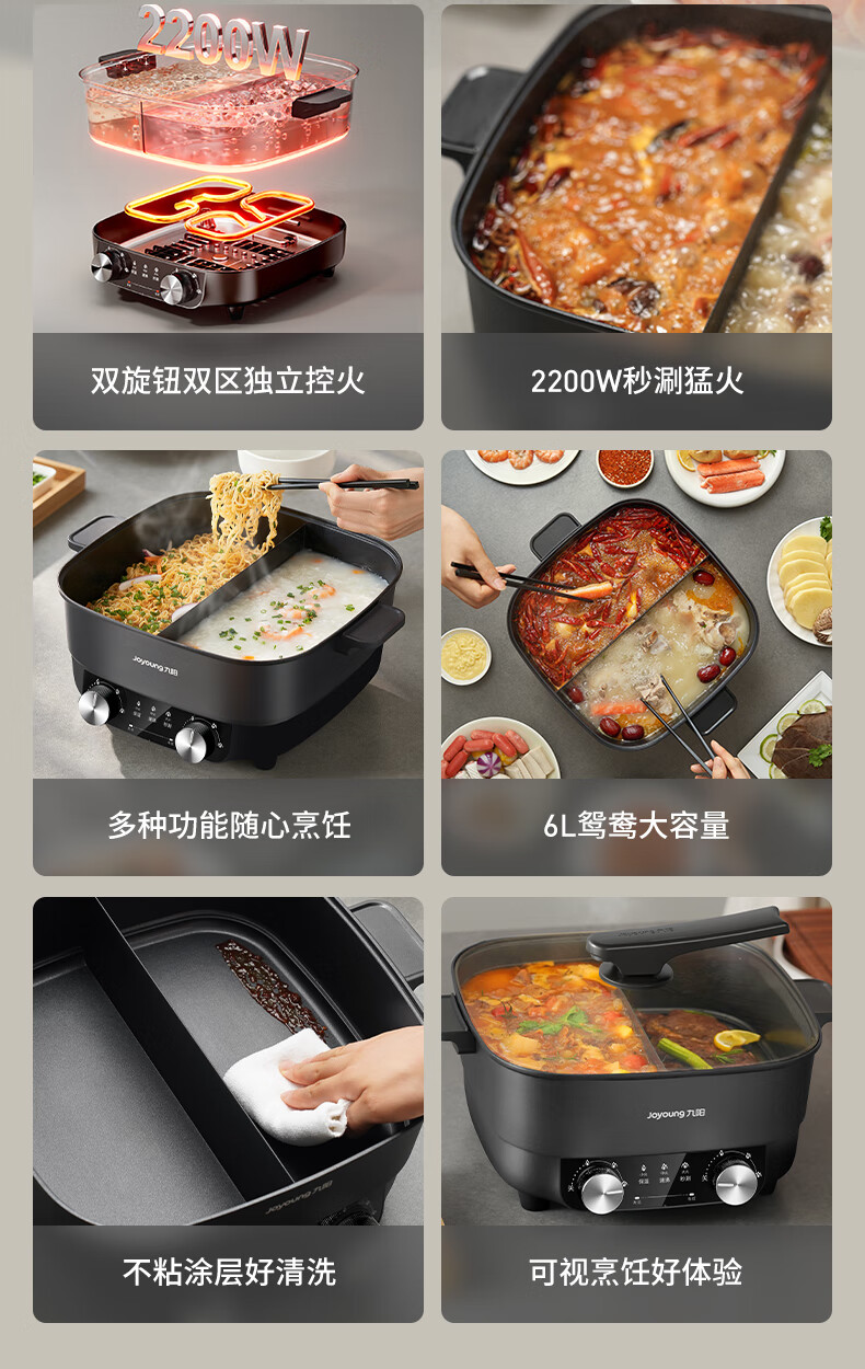 九阳(Joyoung)电火锅鸳鸯锅家用双区秒涮火锅专用锅一体式6L多功能锅涮肉锅多用途锅4分钟速沸独立控温HG60-G118