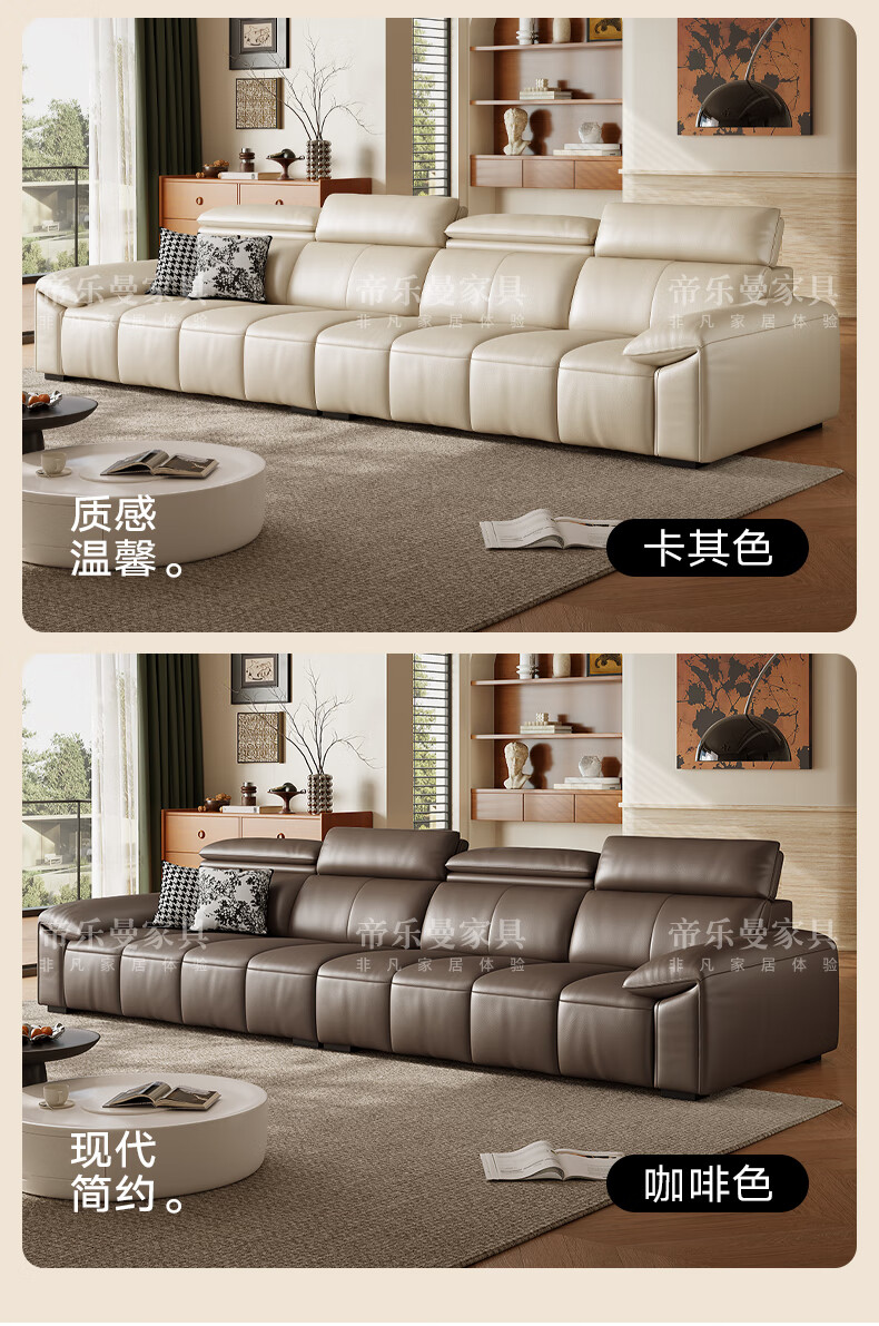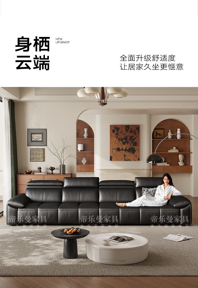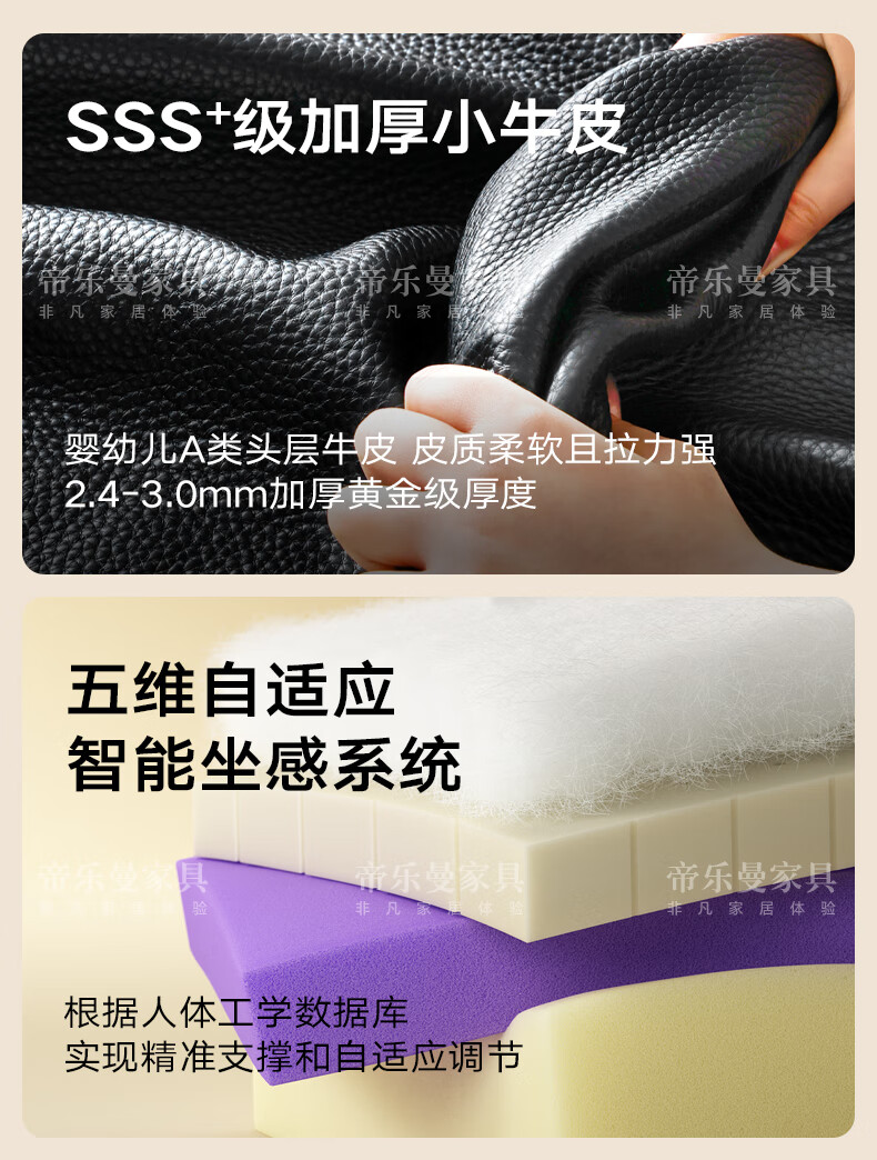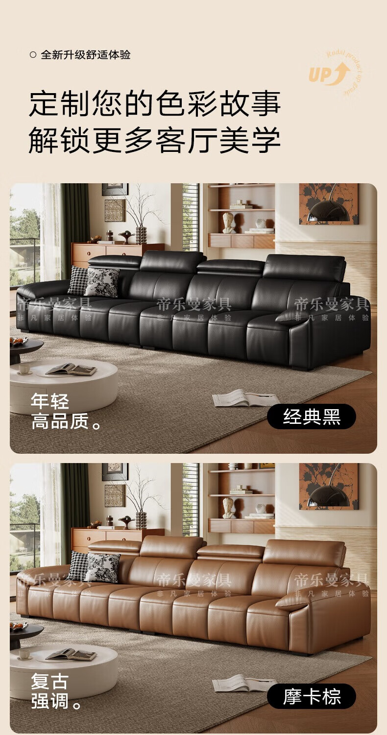 帝乐曼意式真皮沙发客厅2025新款小户型复古直排牛皮沙发三人位皮艺沙发 2.6米多人位+脚踏 【接触面】2.8mm进口头层真皮