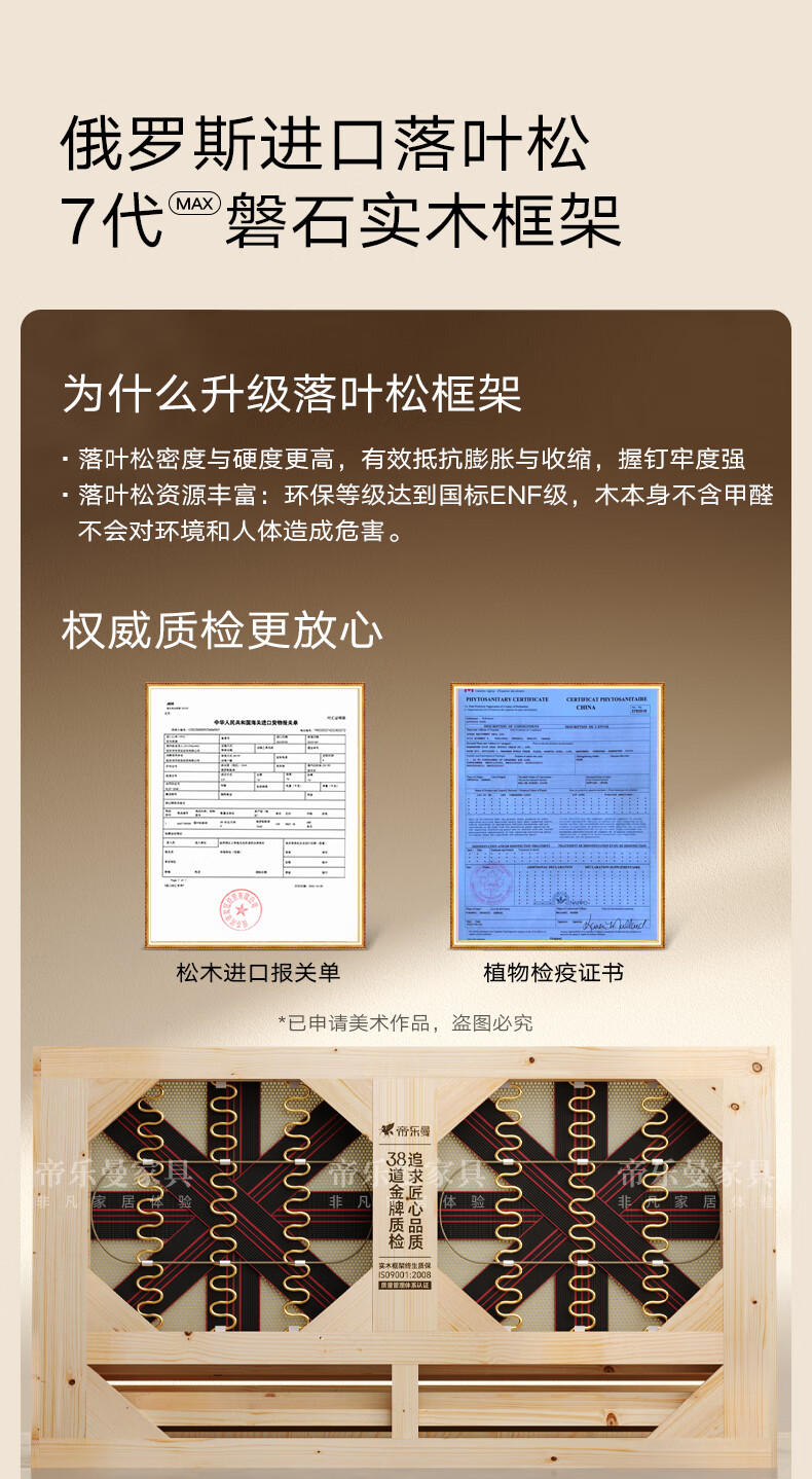 科虎实木床双人床1.8x2米主卧大床家用1.5x2米 橡木床+5cm椰棕垫【松木排骨架】 180*200cm