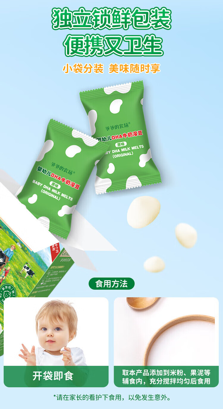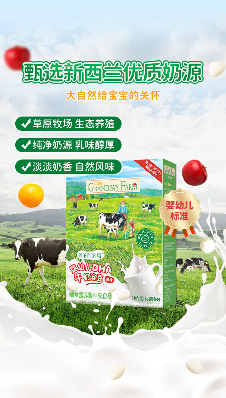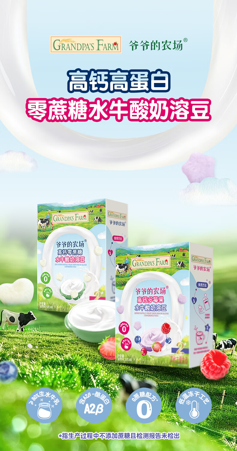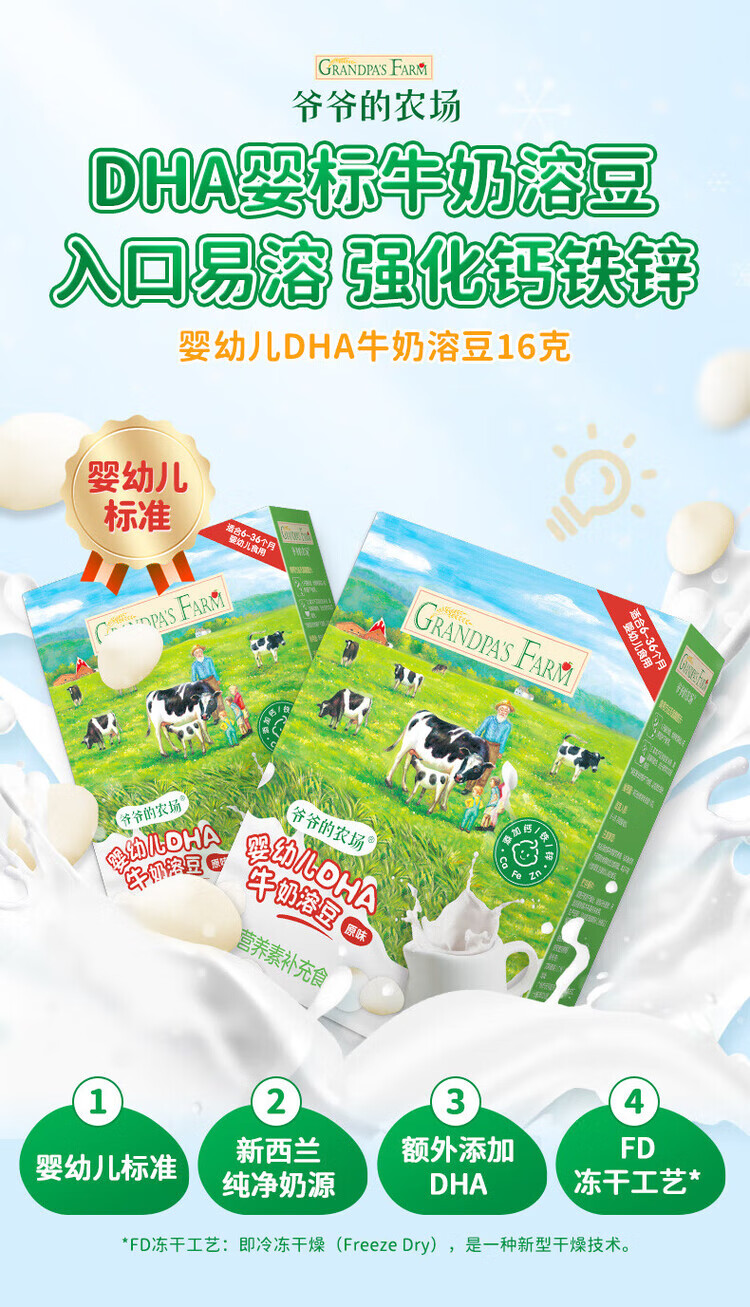 爷爷的农场DHA牛奶溶豆 宝宝儿童零食水牛酸奶冻干水果原粒宝宝零食 【婴标】2口味牛奶溶豆4盒装