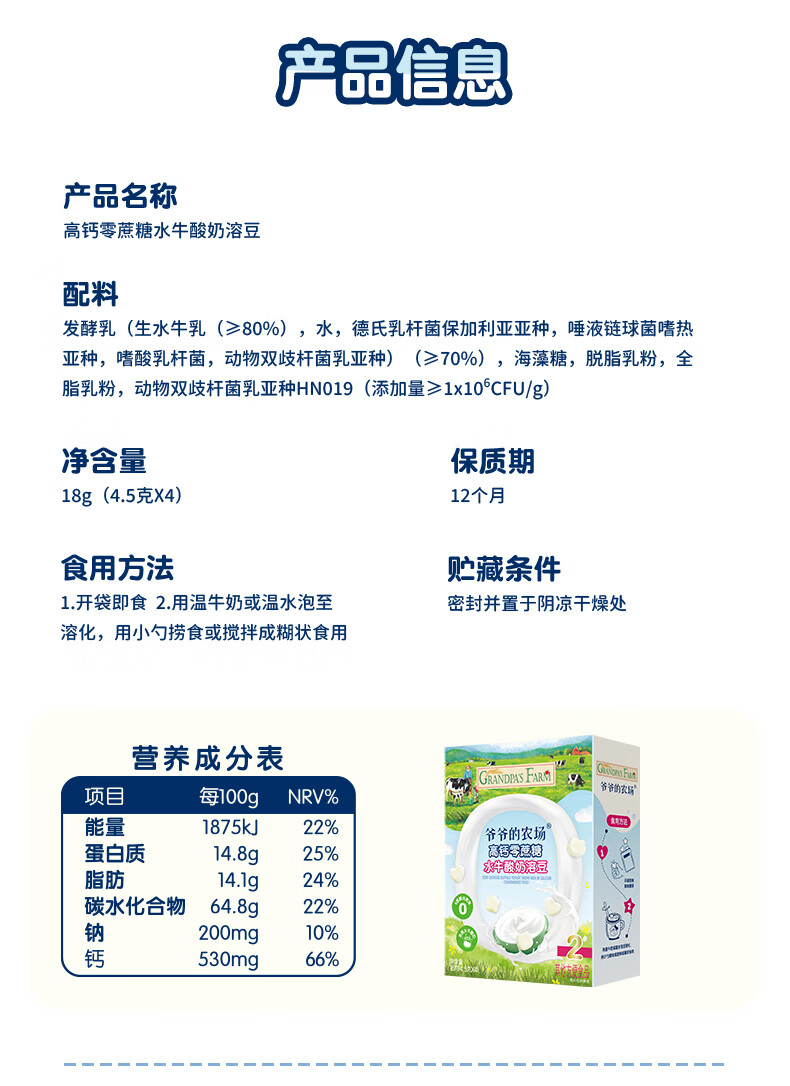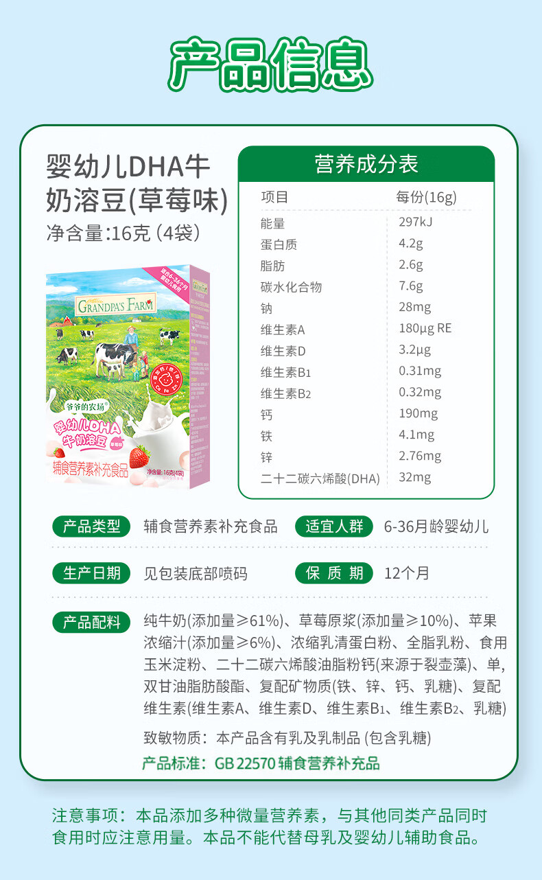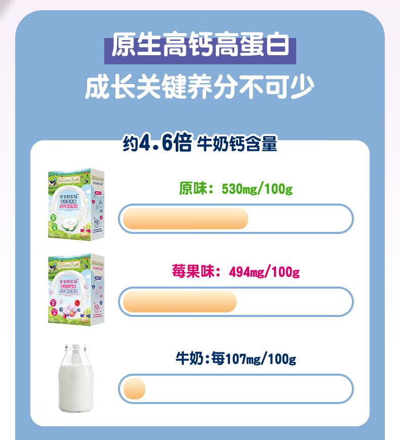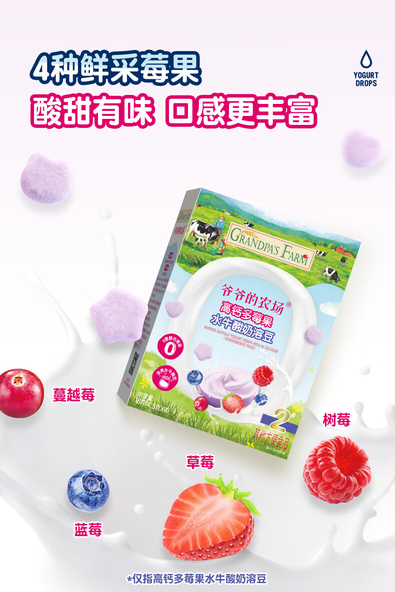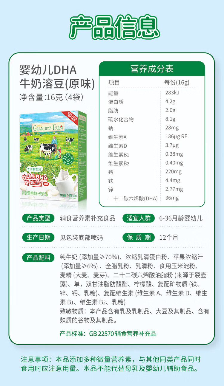 爷爷的农场DHA牛奶溶豆 宝宝儿童零食水牛酸奶冻干水果原粒宝宝零食 【婴标】2口味牛奶溶豆4盒装