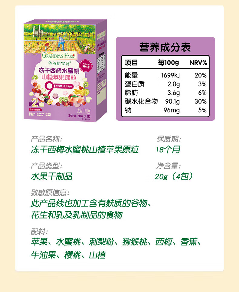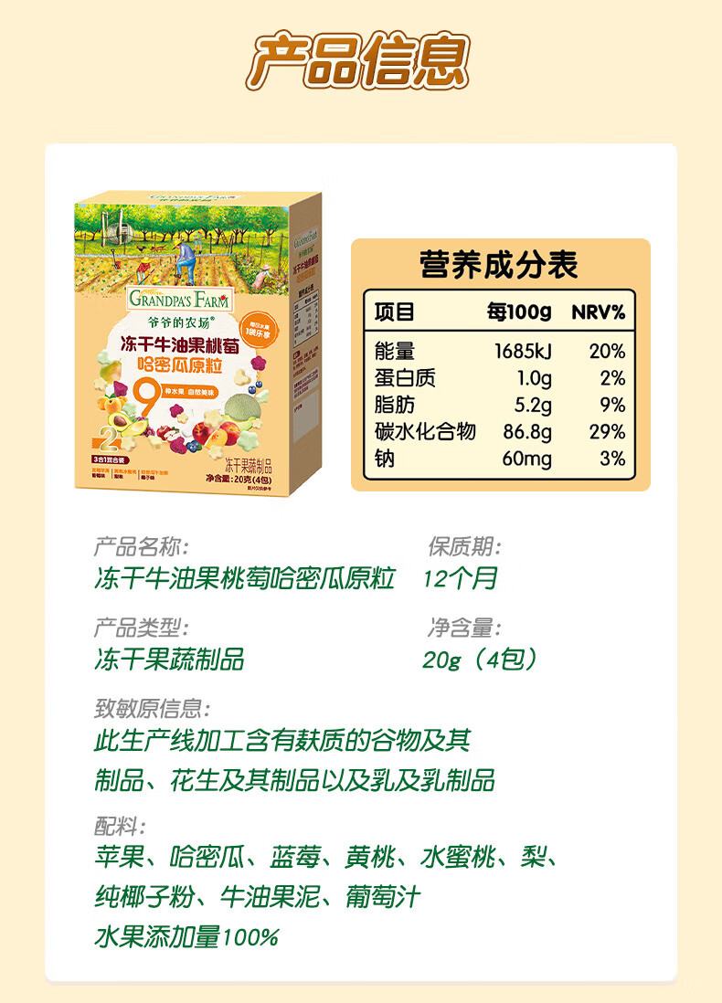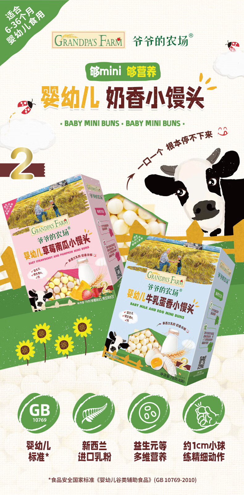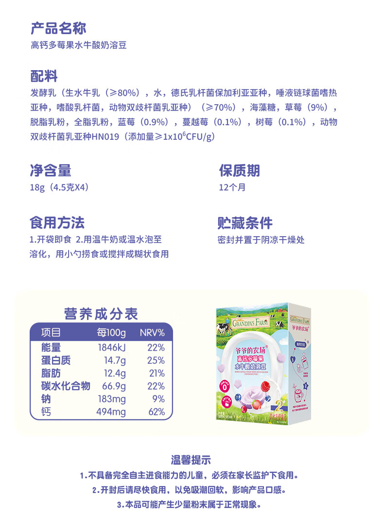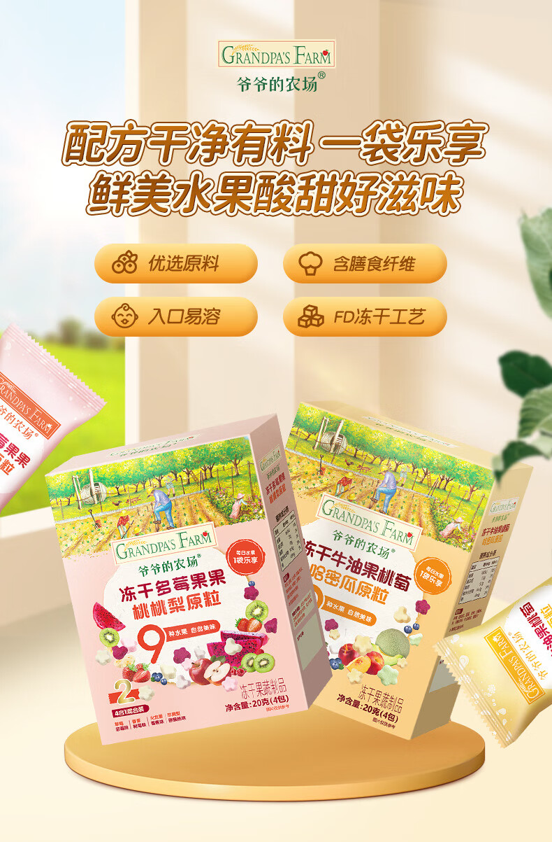 爷爷的农场DHA牛奶溶豆 宝宝儿童零食水牛酸奶冻干水果原粒宝宝零食 【婴标】2口味牛奶溶豆4盒装