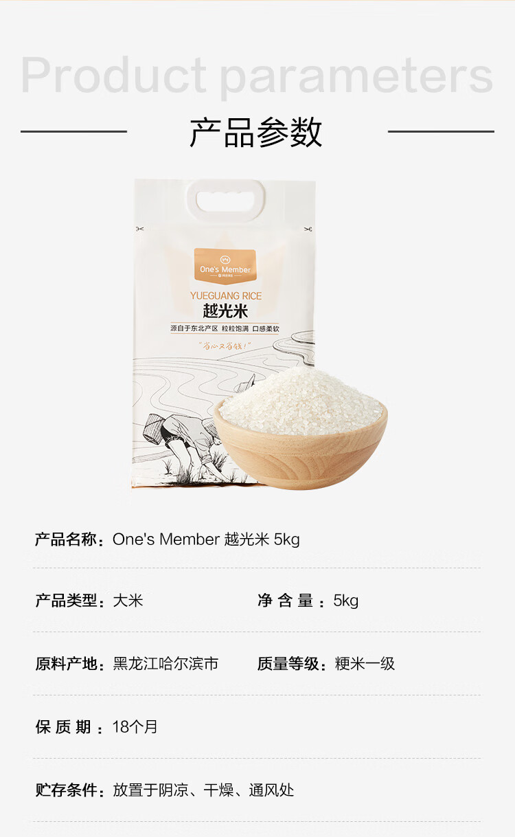 One's Member东北大米越光米 5kg 当季新米 粳米一级 正宗 寿司米