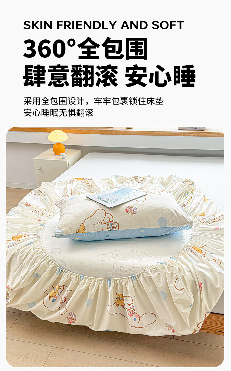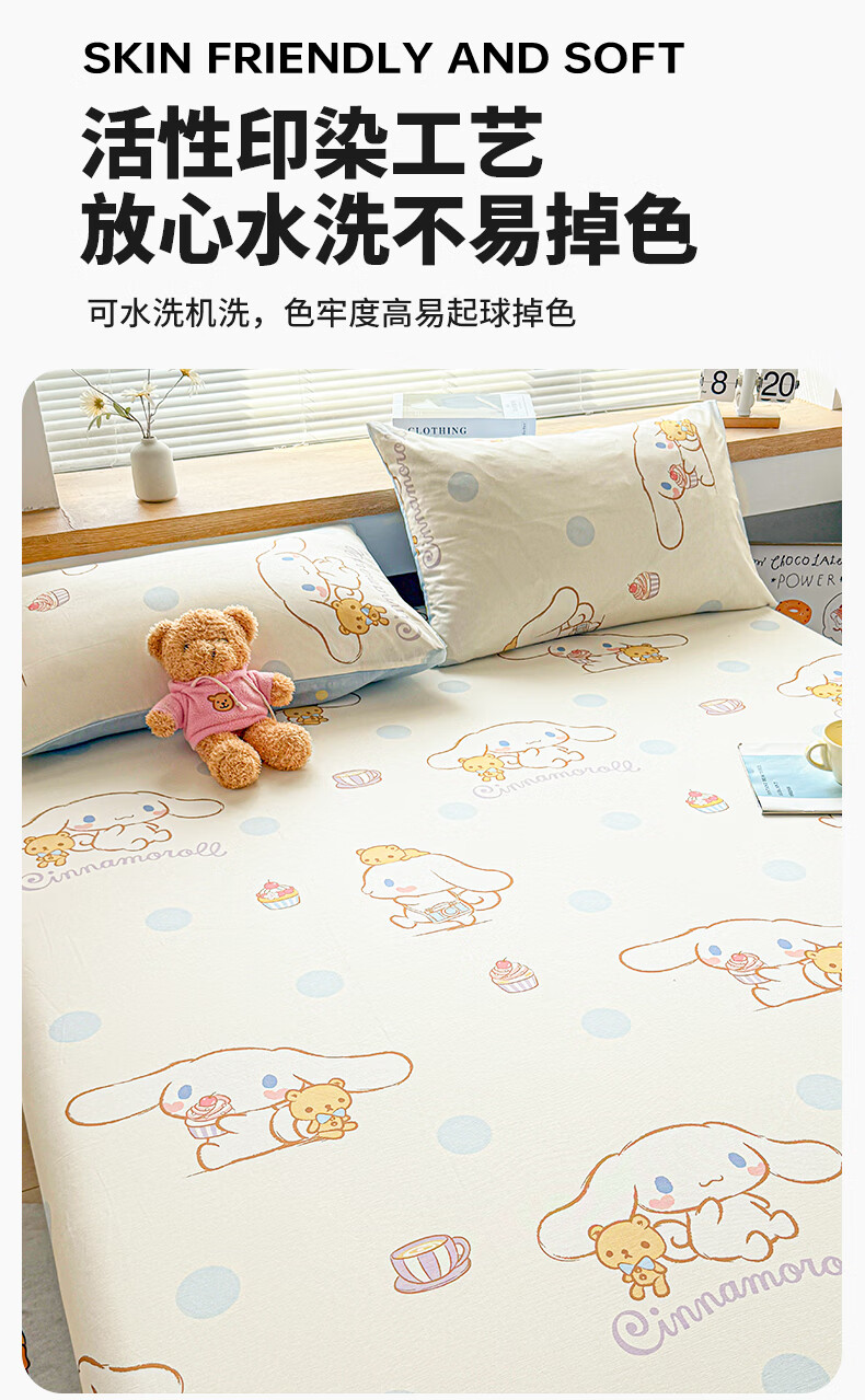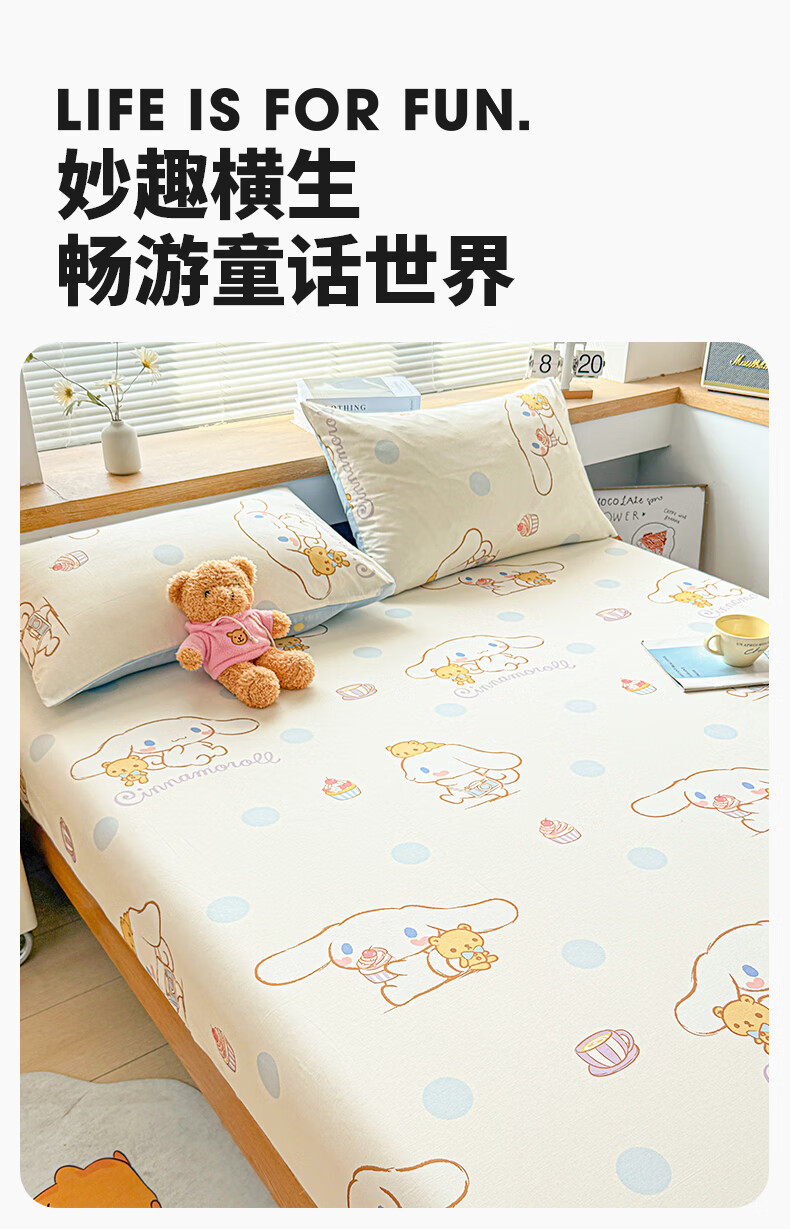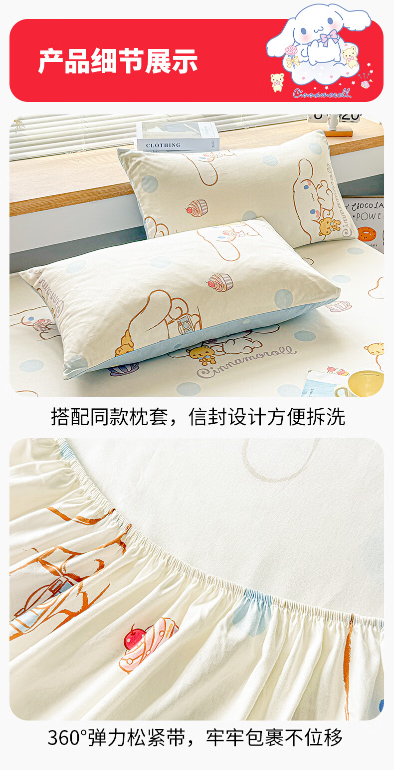 名创优品三丽鸥纯棉床笠1.5x2米 全棉床垫保护套加厚单双人宿舍床套防尘罩 点点玉桂狗 90cm*200cm 单床笠
