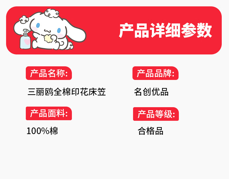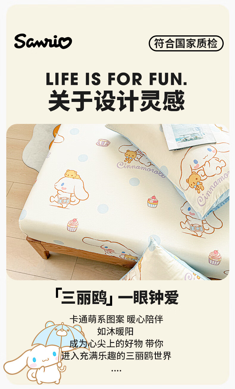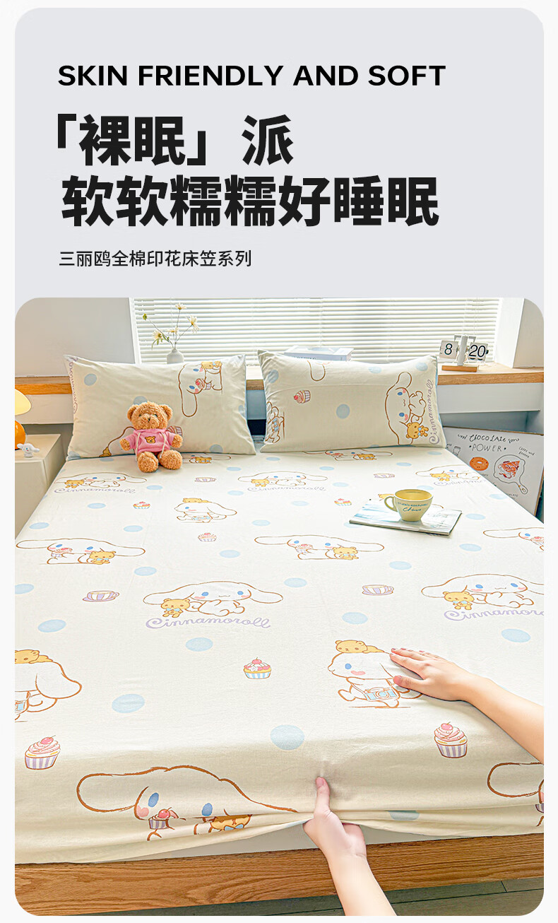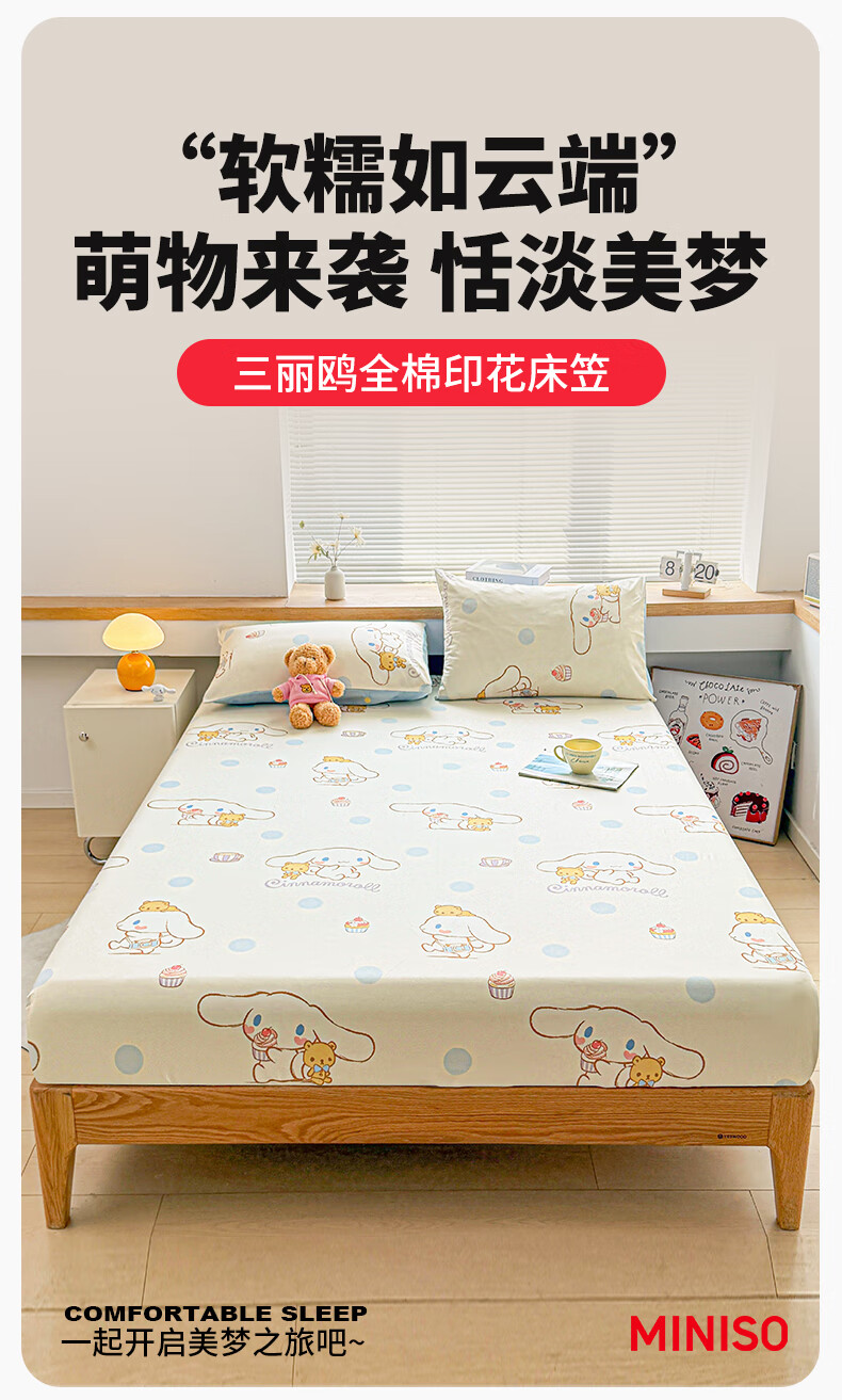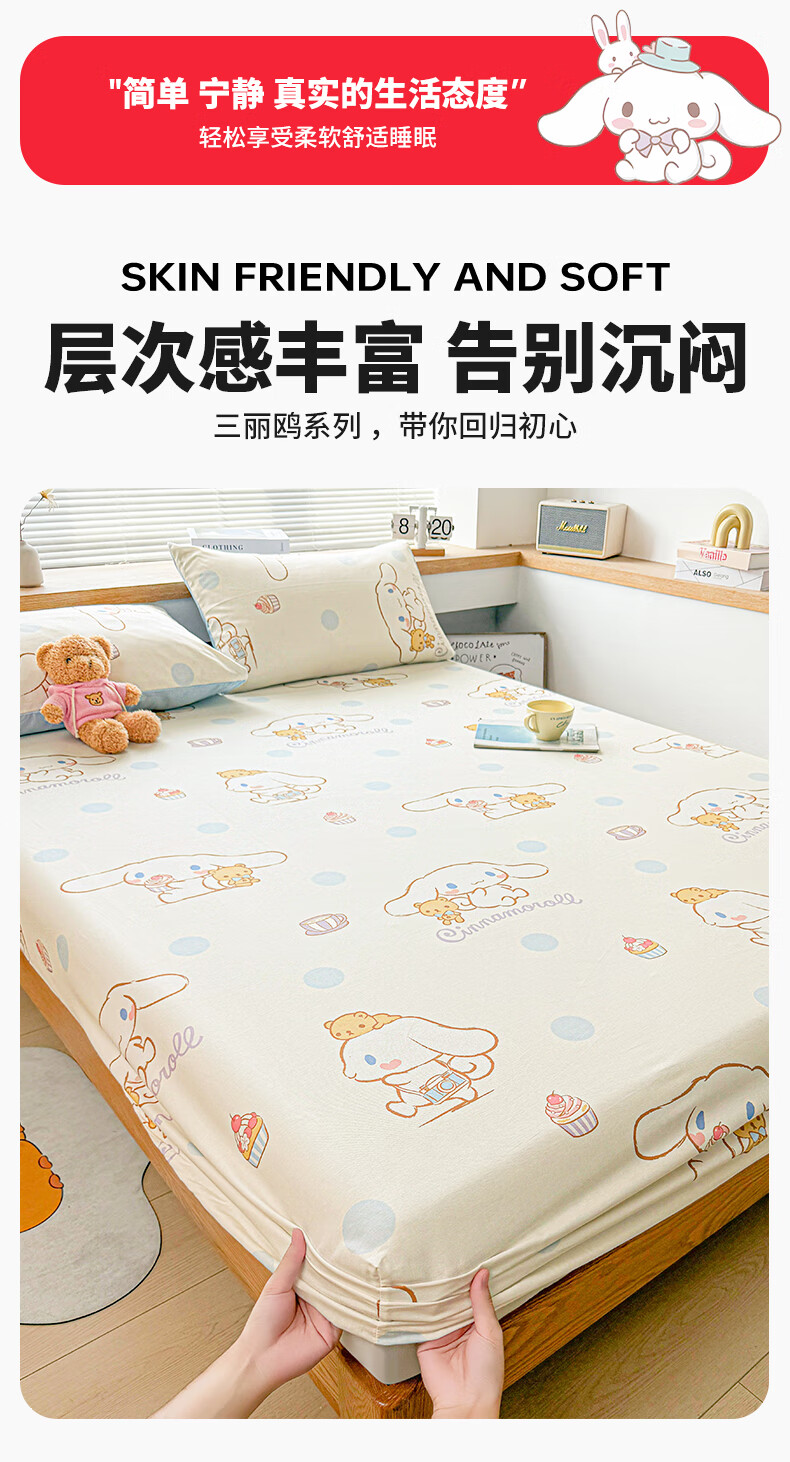 名创优品三丽鸥纯棉床笠1.5x2米 全棉床垫保护套加厚单双人宿舍床套防尘罩 点点玉桂狗 90cm*200cm 单床笠