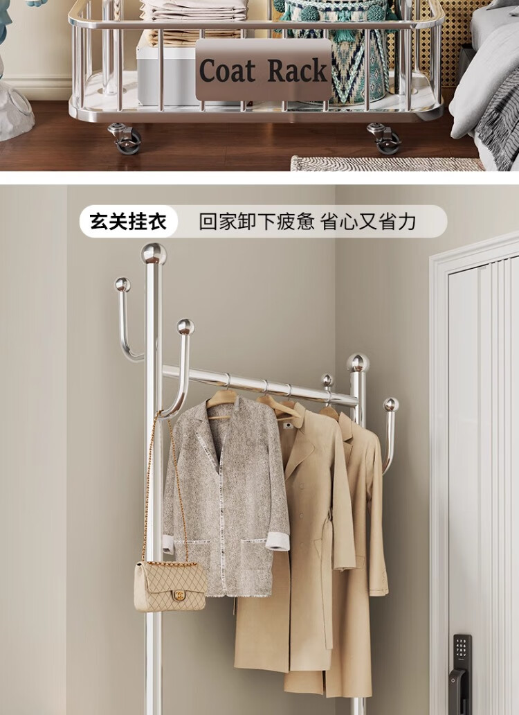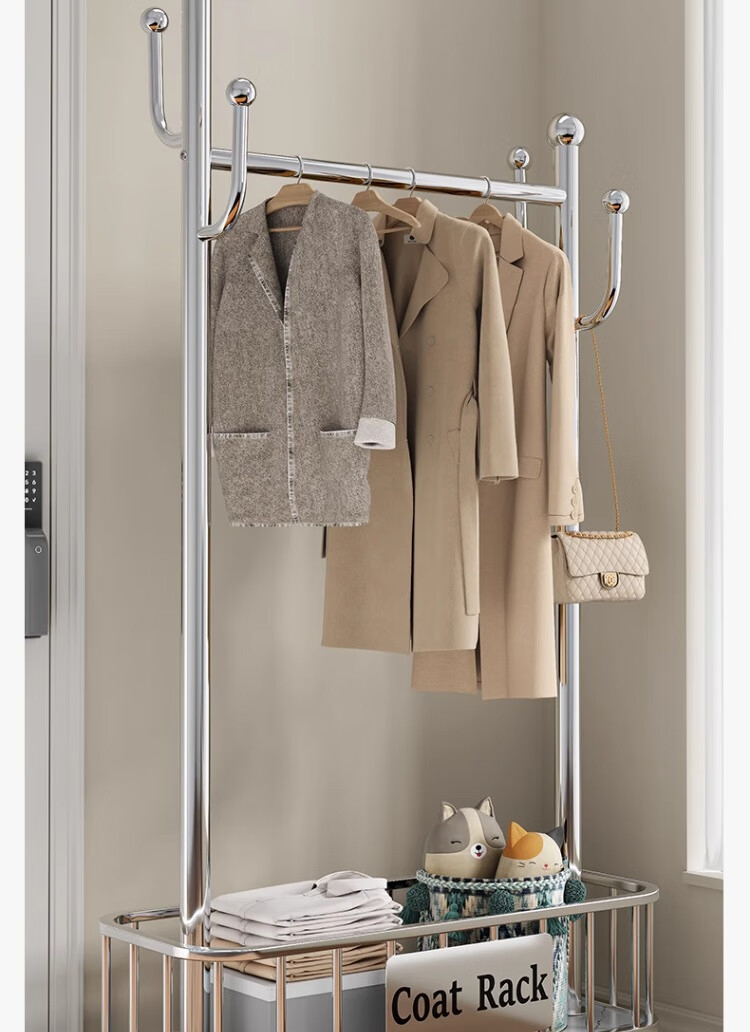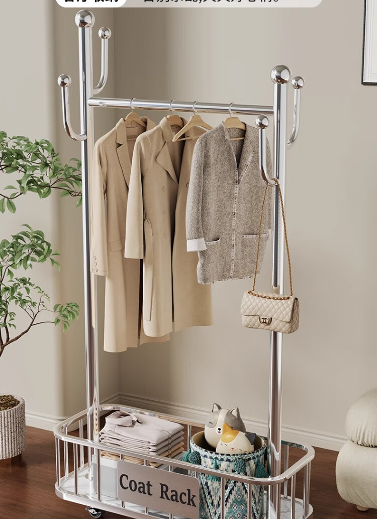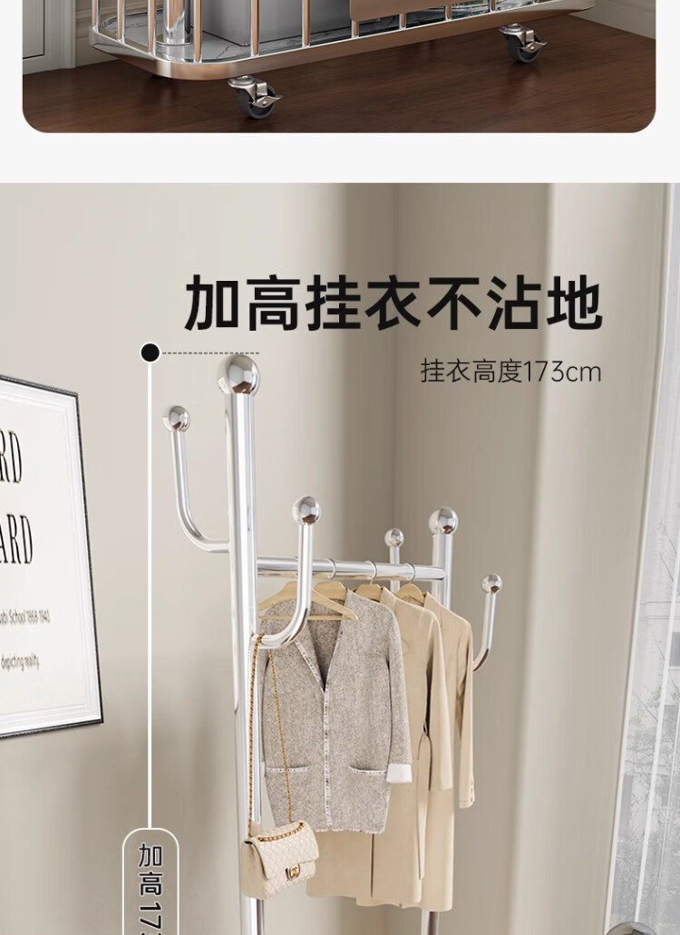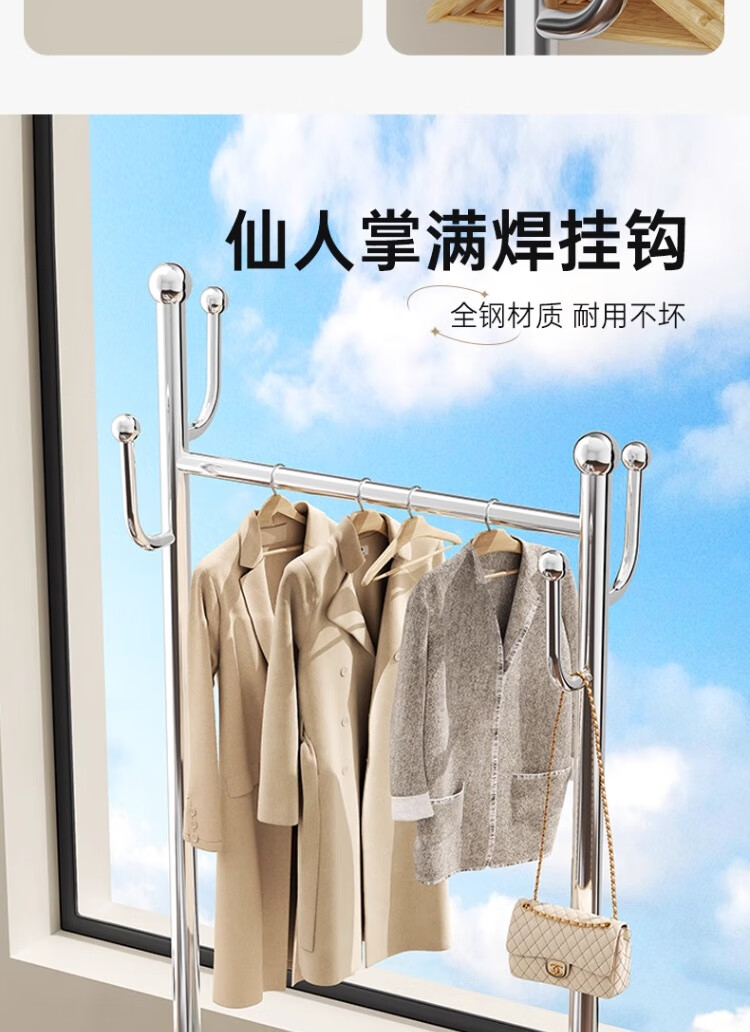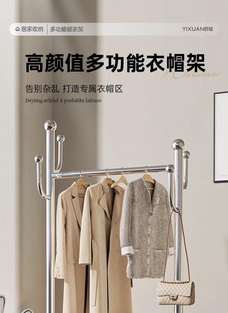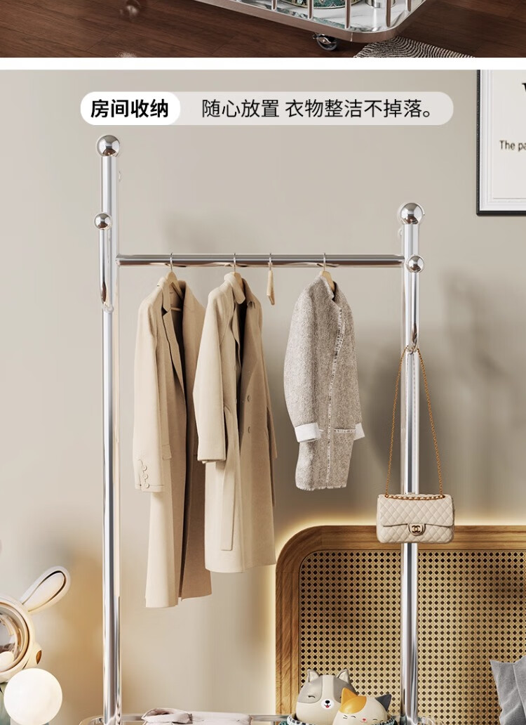 衣炫衣架落地立式衣帽架双杆晾衣架挂衣架家用卧室专用室内挂衣神器 水晶银60cm【加深网框】